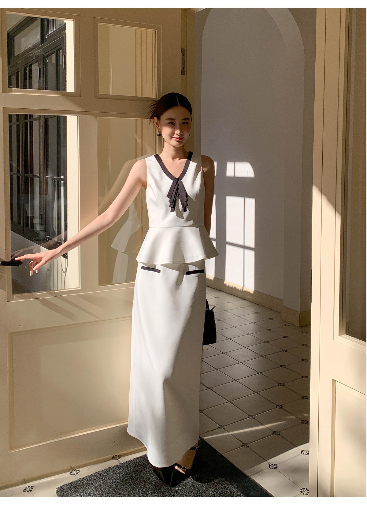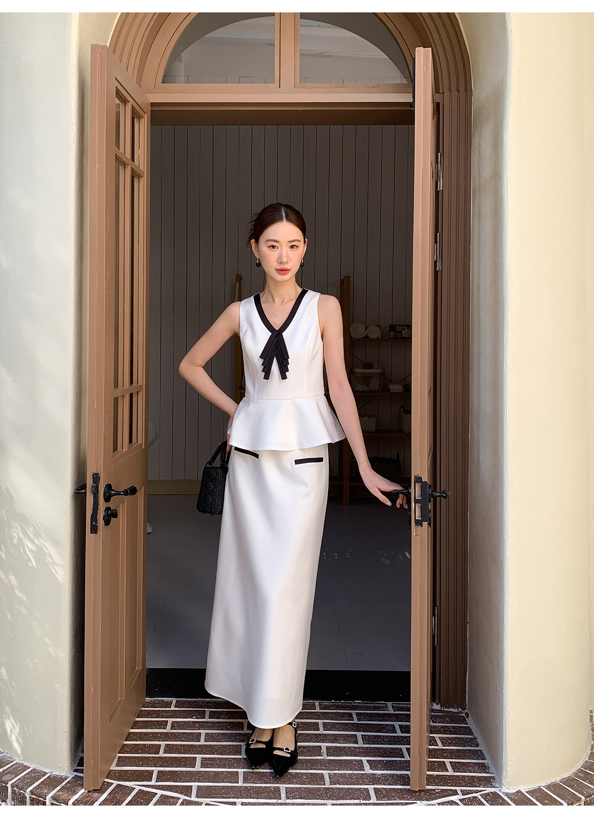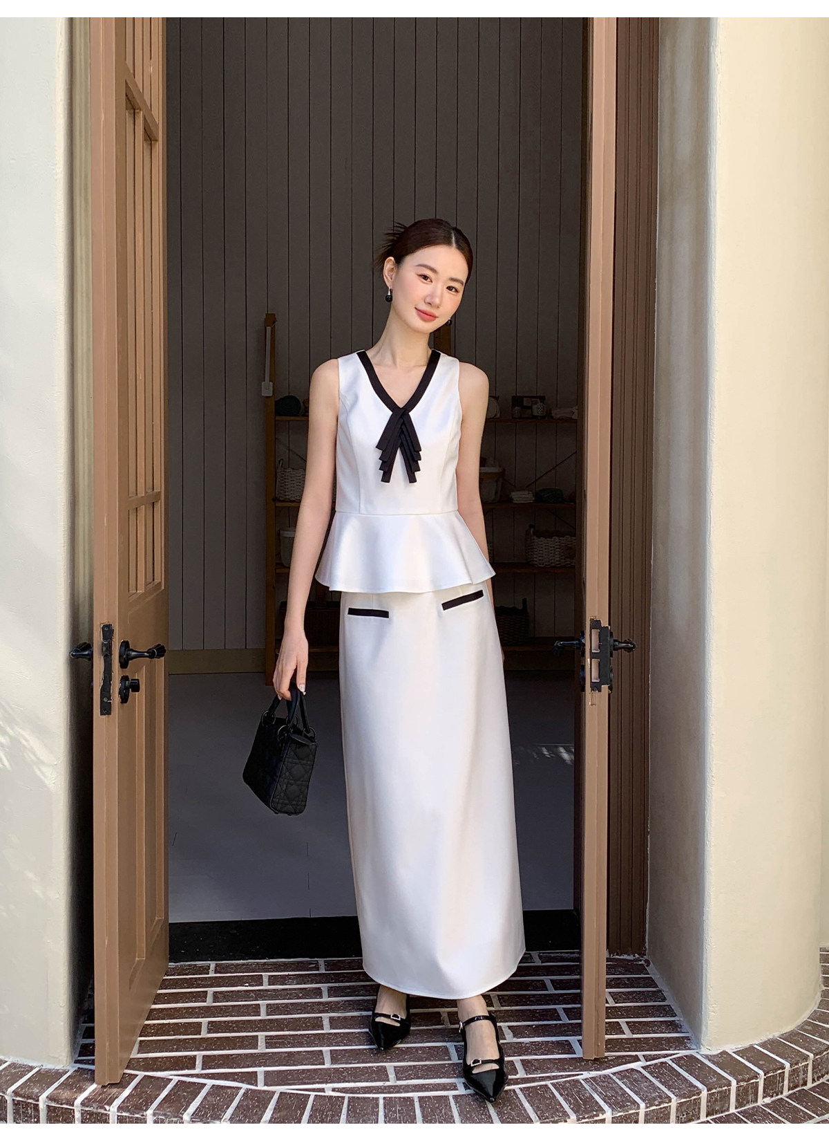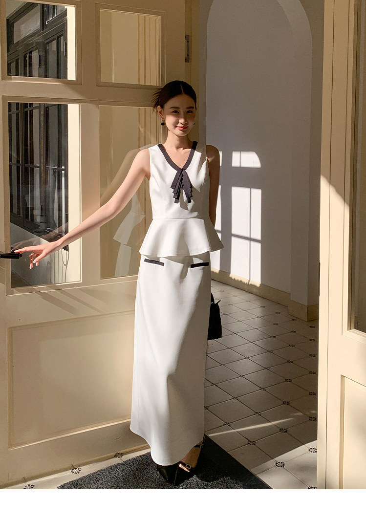 Xxning French-Style Contrasting Color Bow Tie Vest and Skirt Set for Women 2025 New Elegant and Stylish Two-Piece Set