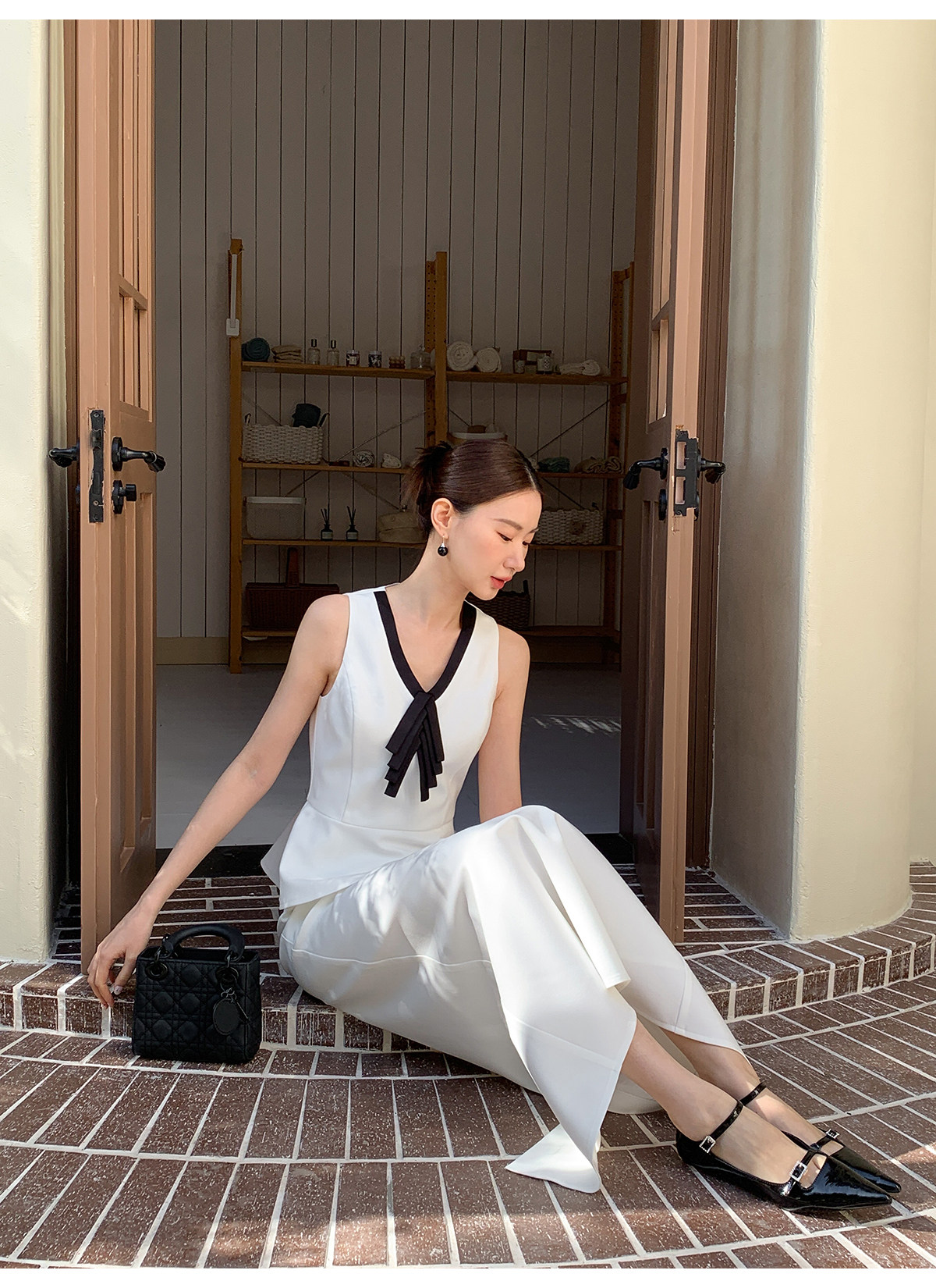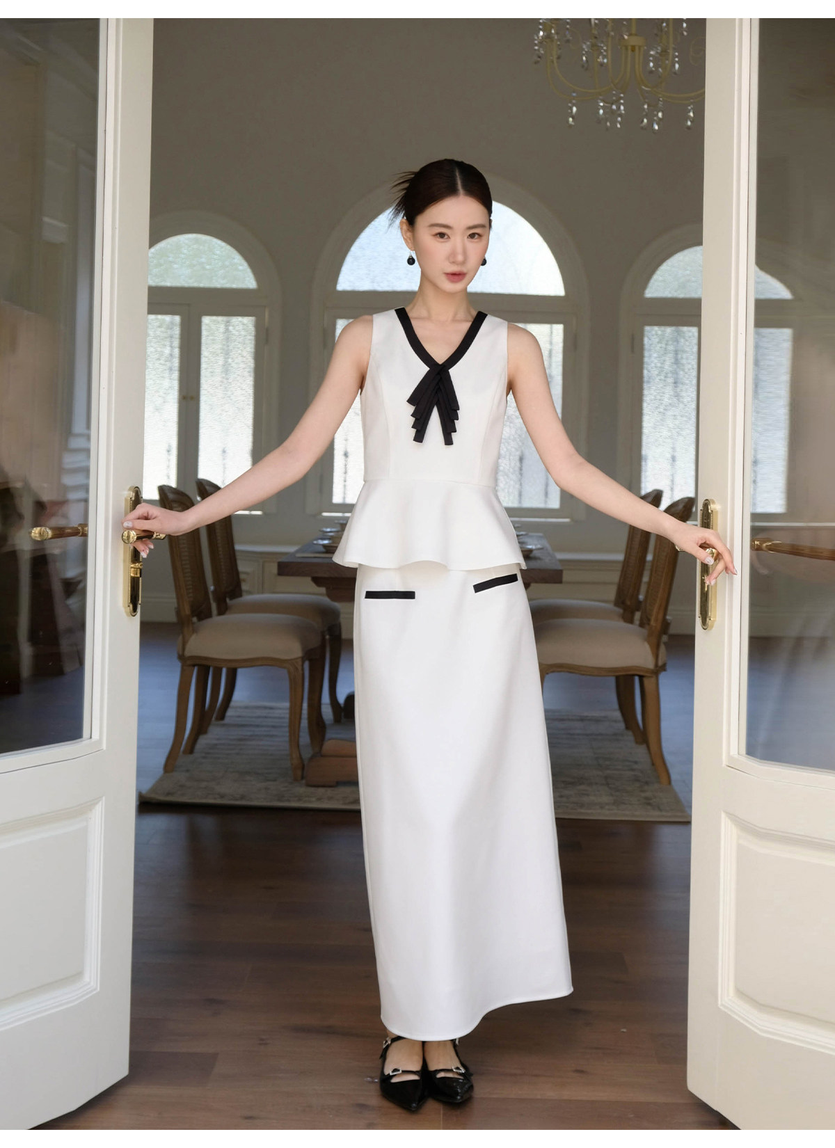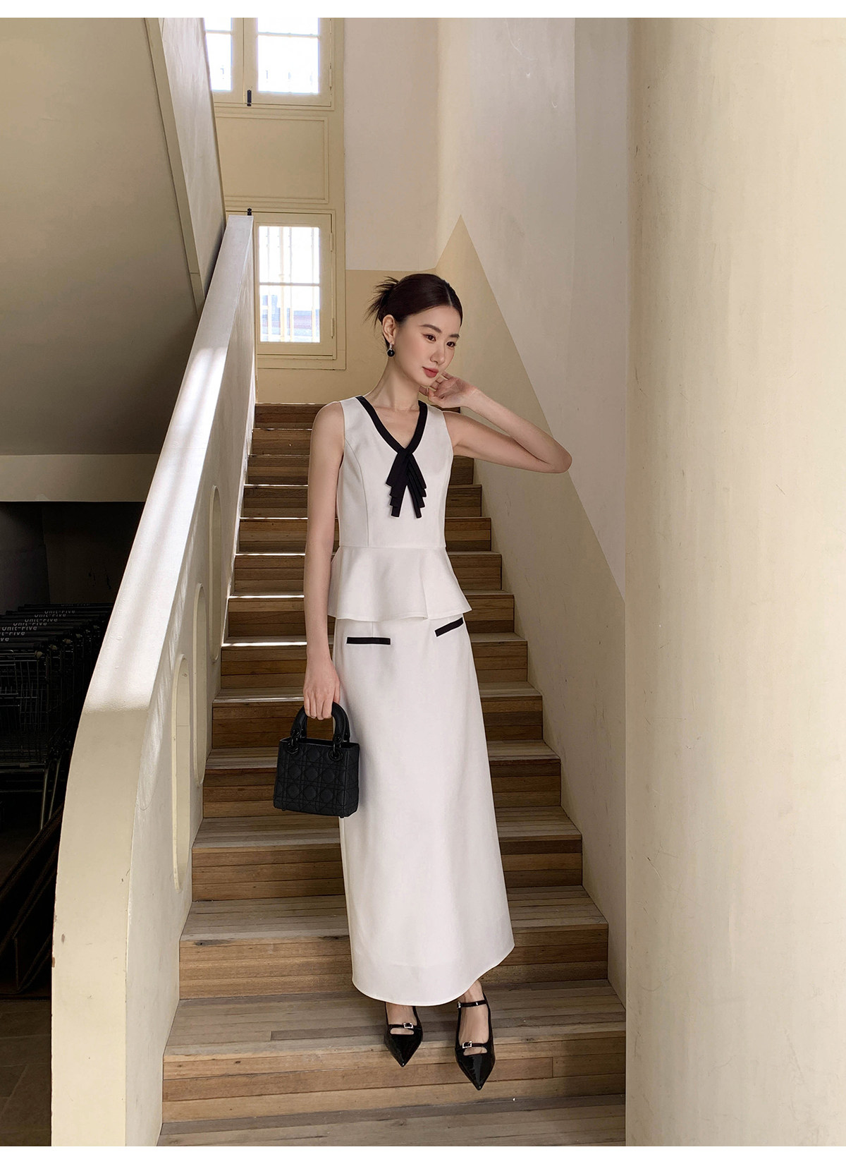 Xxning French-Style Contrasting Color Bow Tie Vest and Skirt Set for Women 2025 New Elegant and Stylish Two-Piece Set