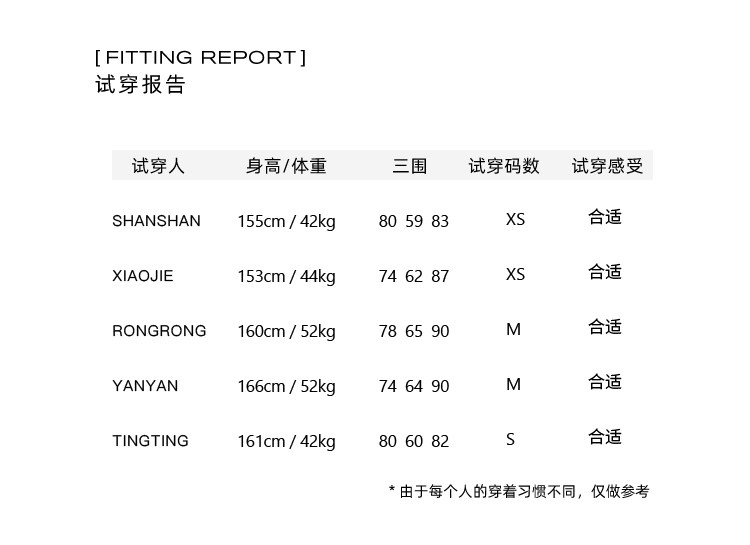 China (cm) 160-165/84-86 165-170 / 88-90 167-172 / 92-96 168-173 / 98-102 170-176 / 106-110