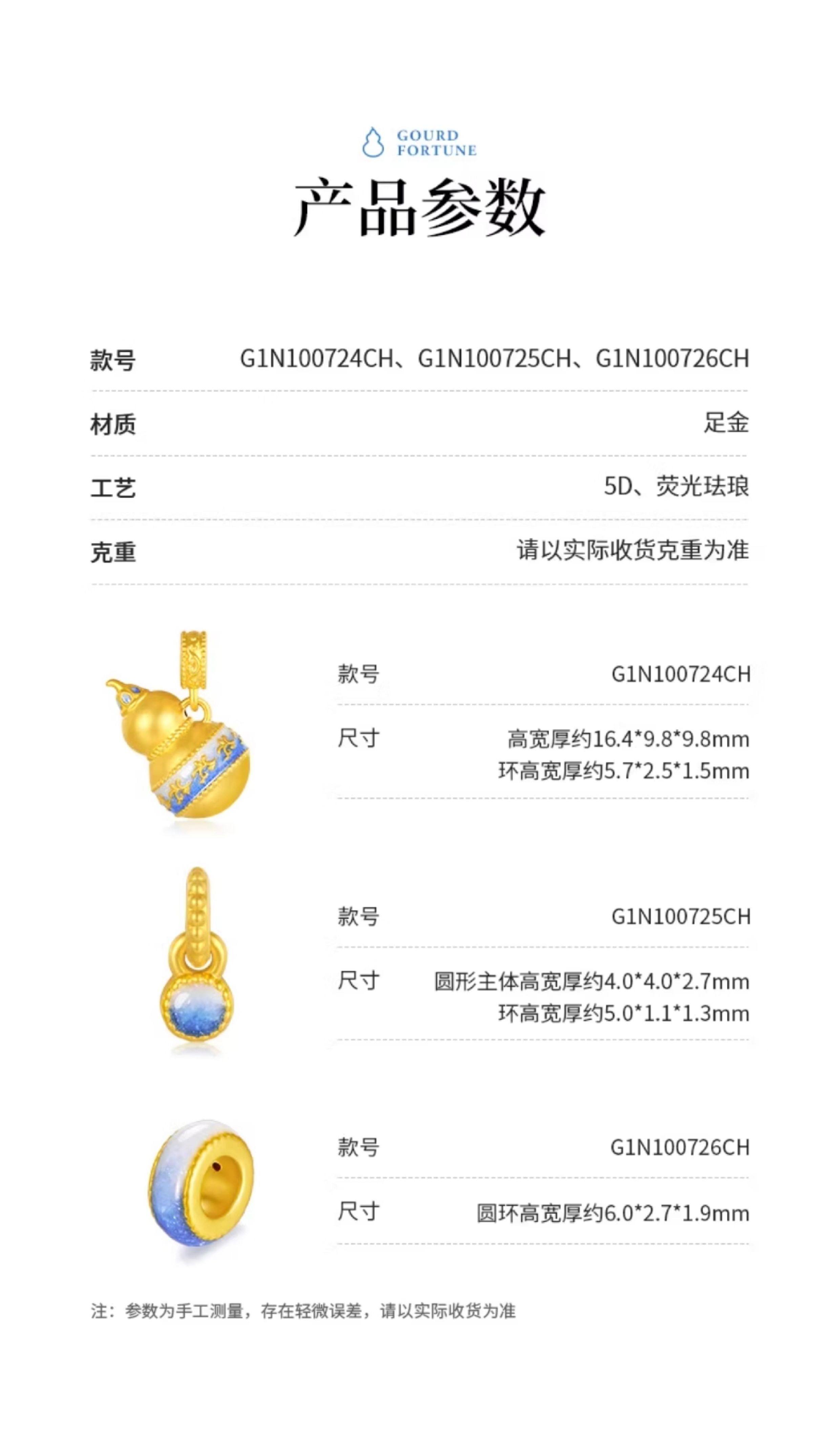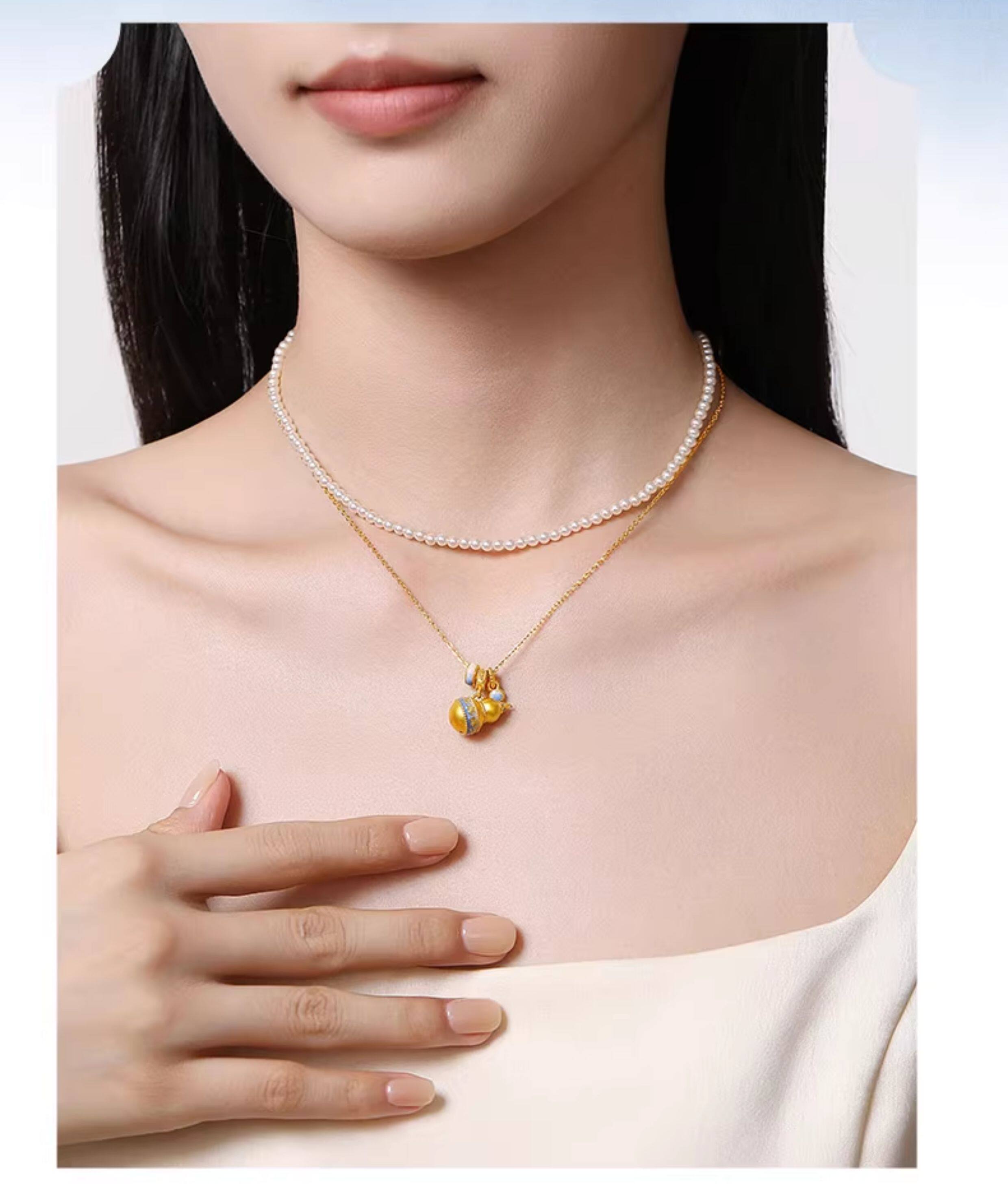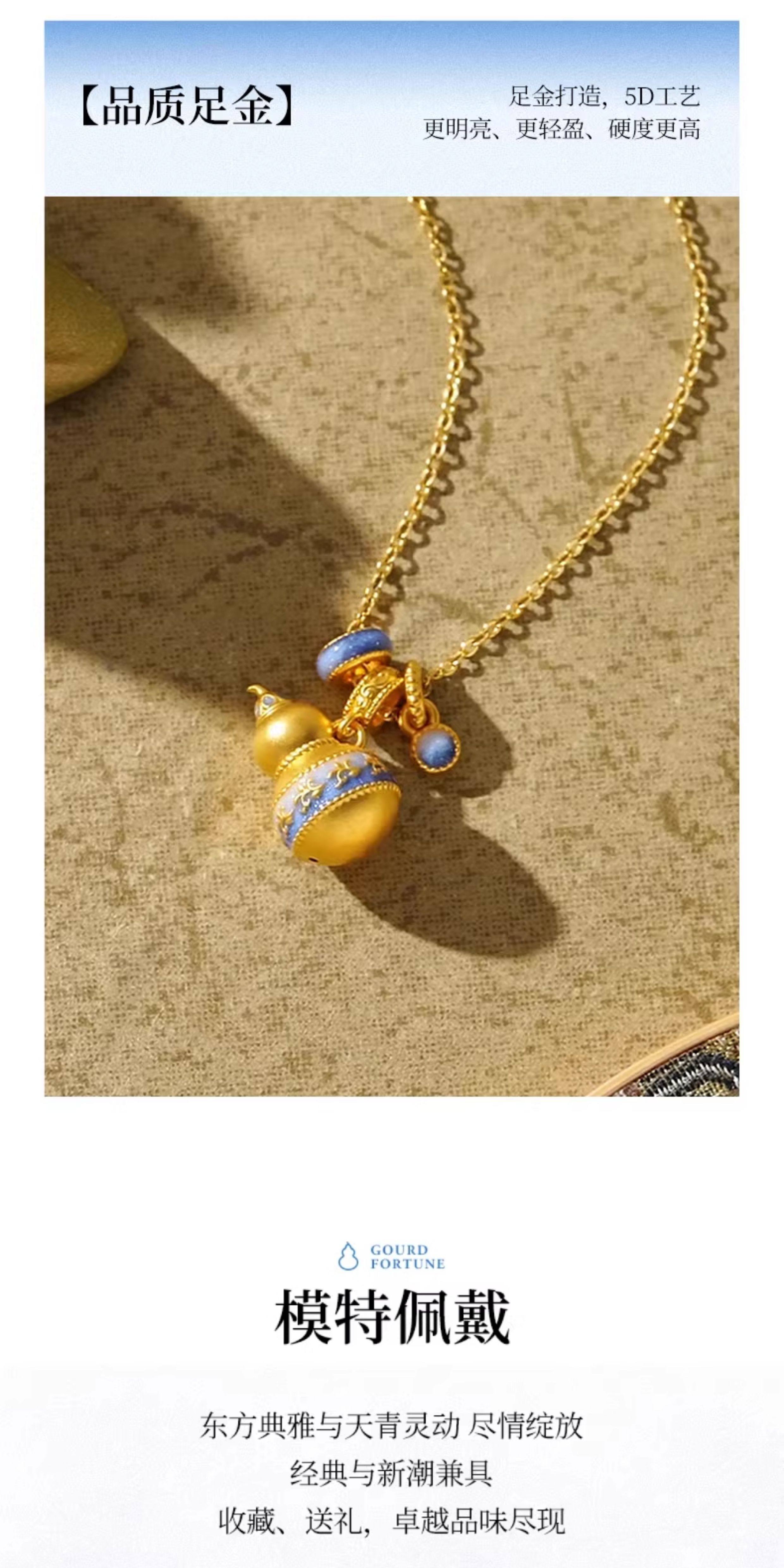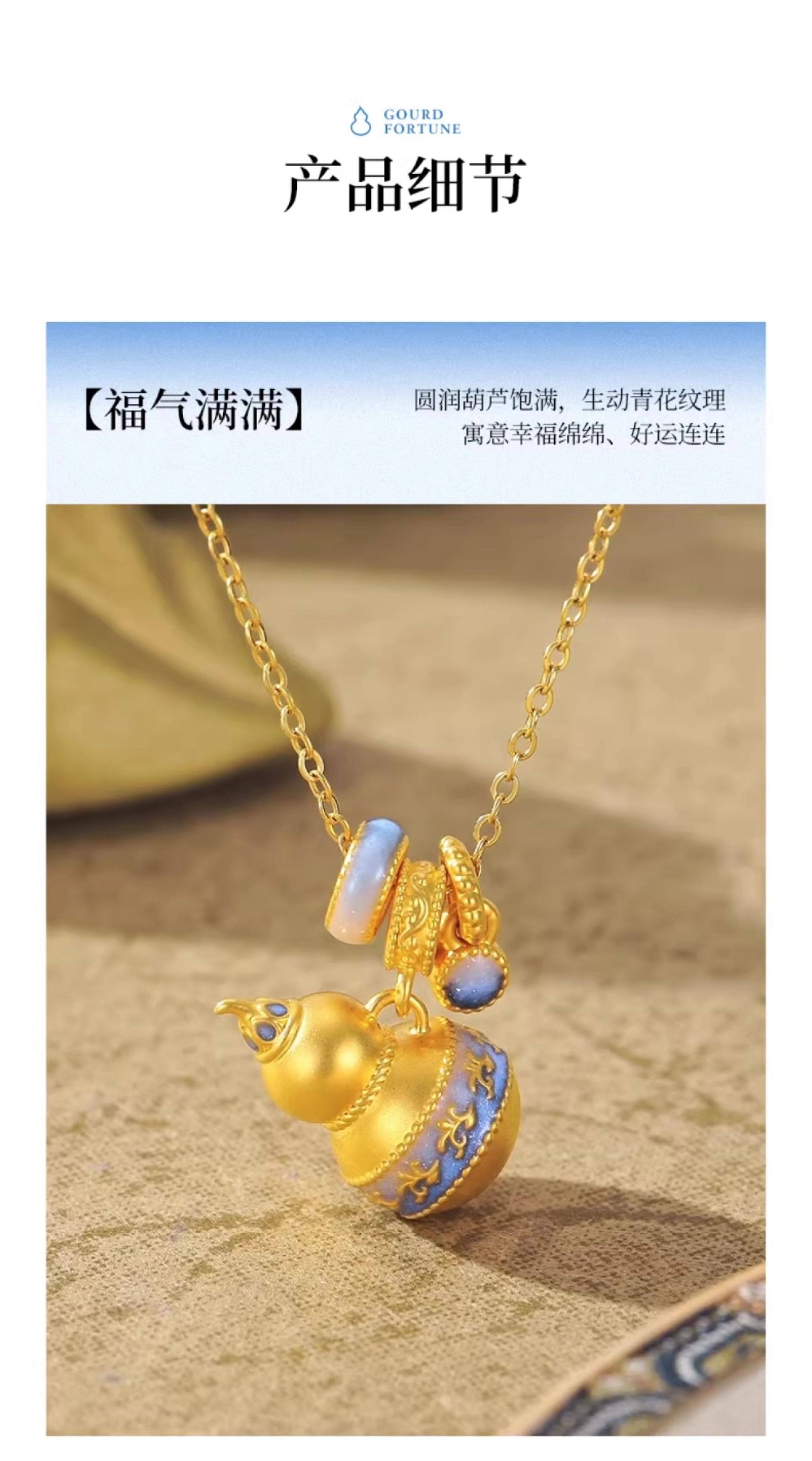 New Year's gift Chow Tai Sang National Treasure Gold Blue and White Porcelain Gourd Pendant Women's Foot Gold Enamel Necklace Pendant