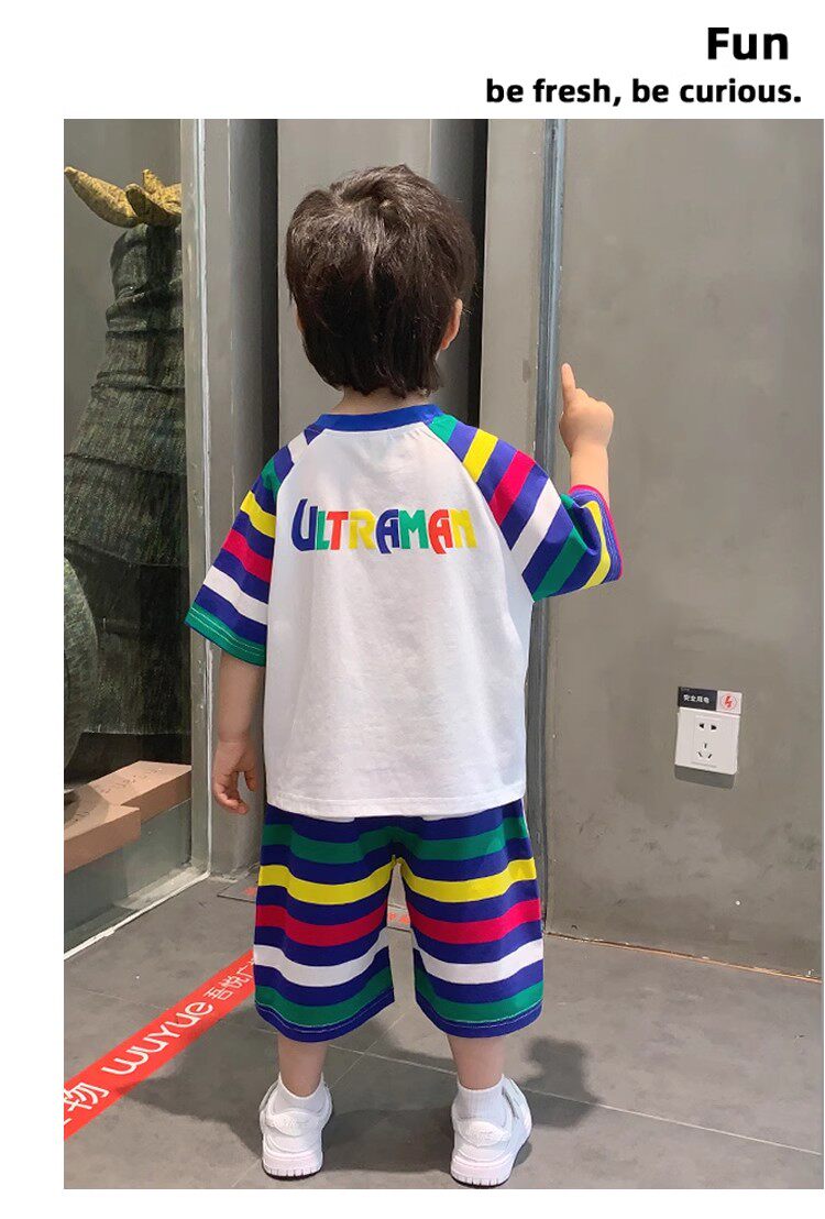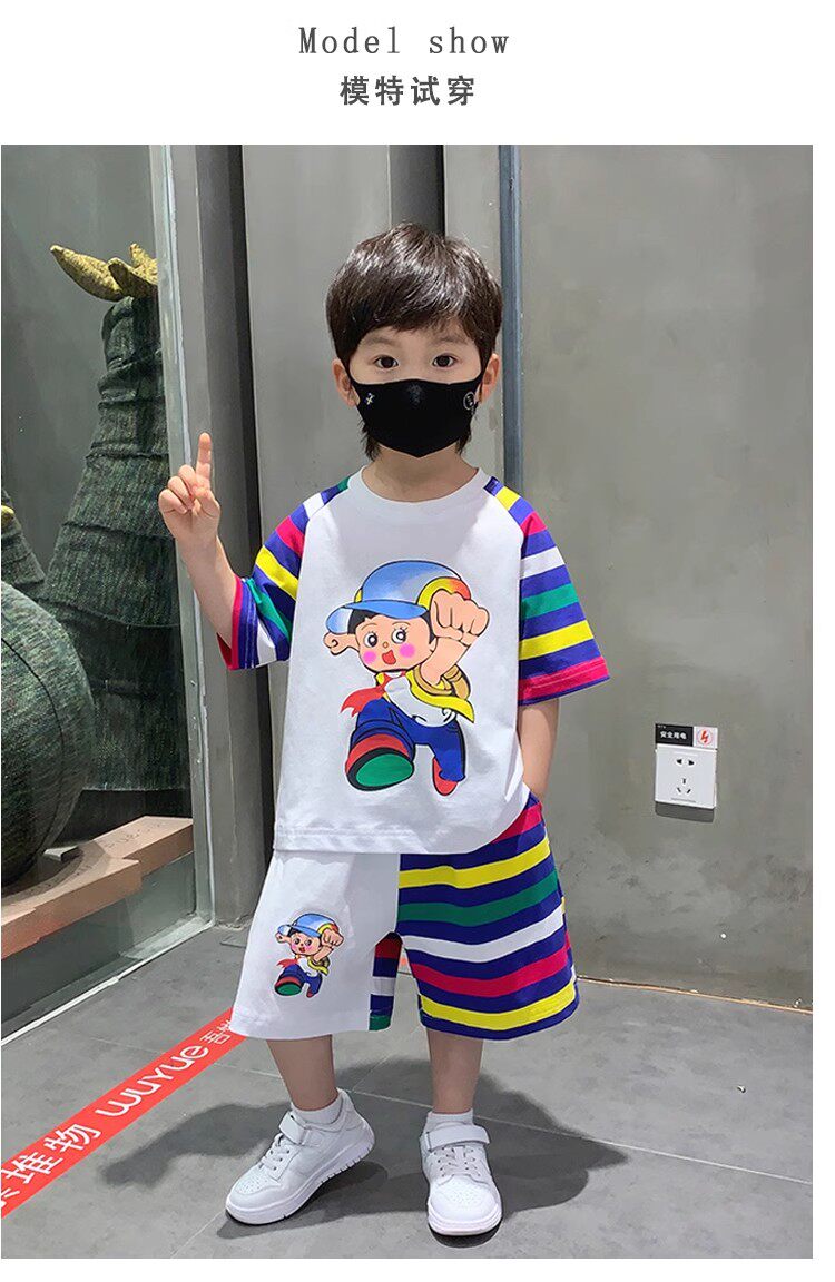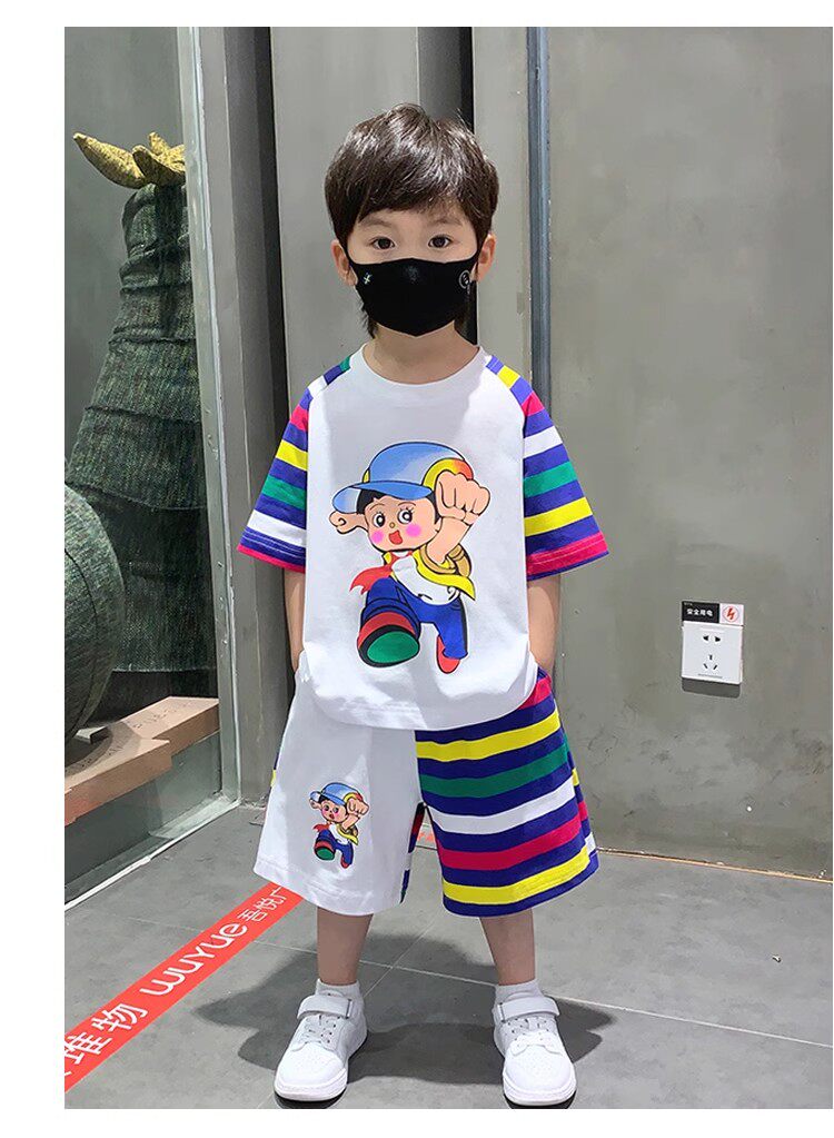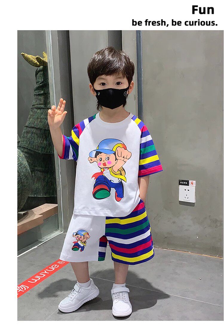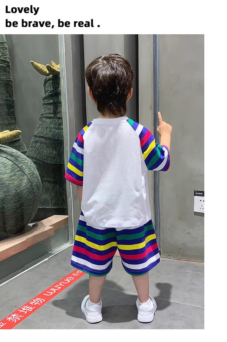 French Berydia Boys' Short-Sleeved Suit, Summer Baby Thin Stylish T-Shirt, Fashionable Clothes for Young Children