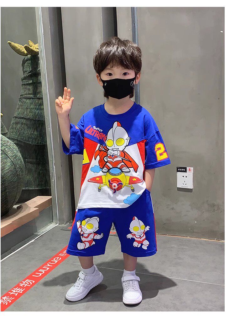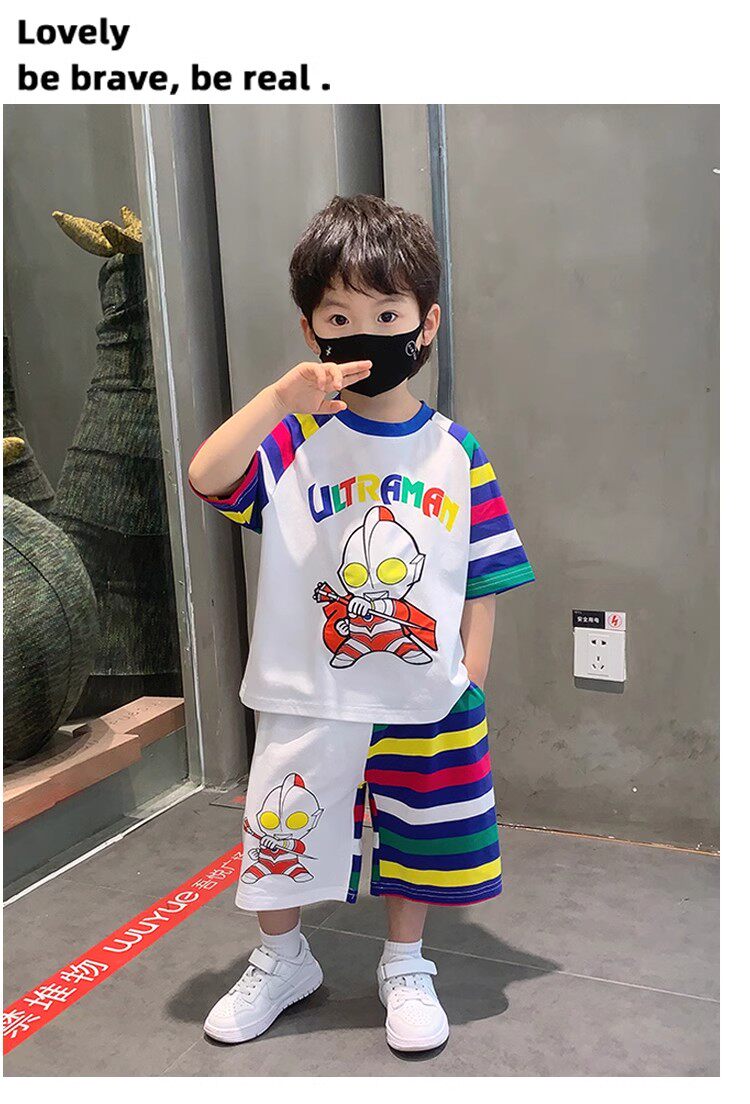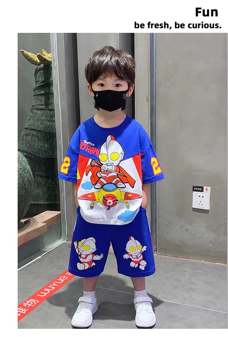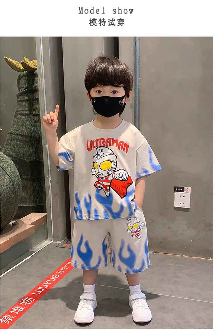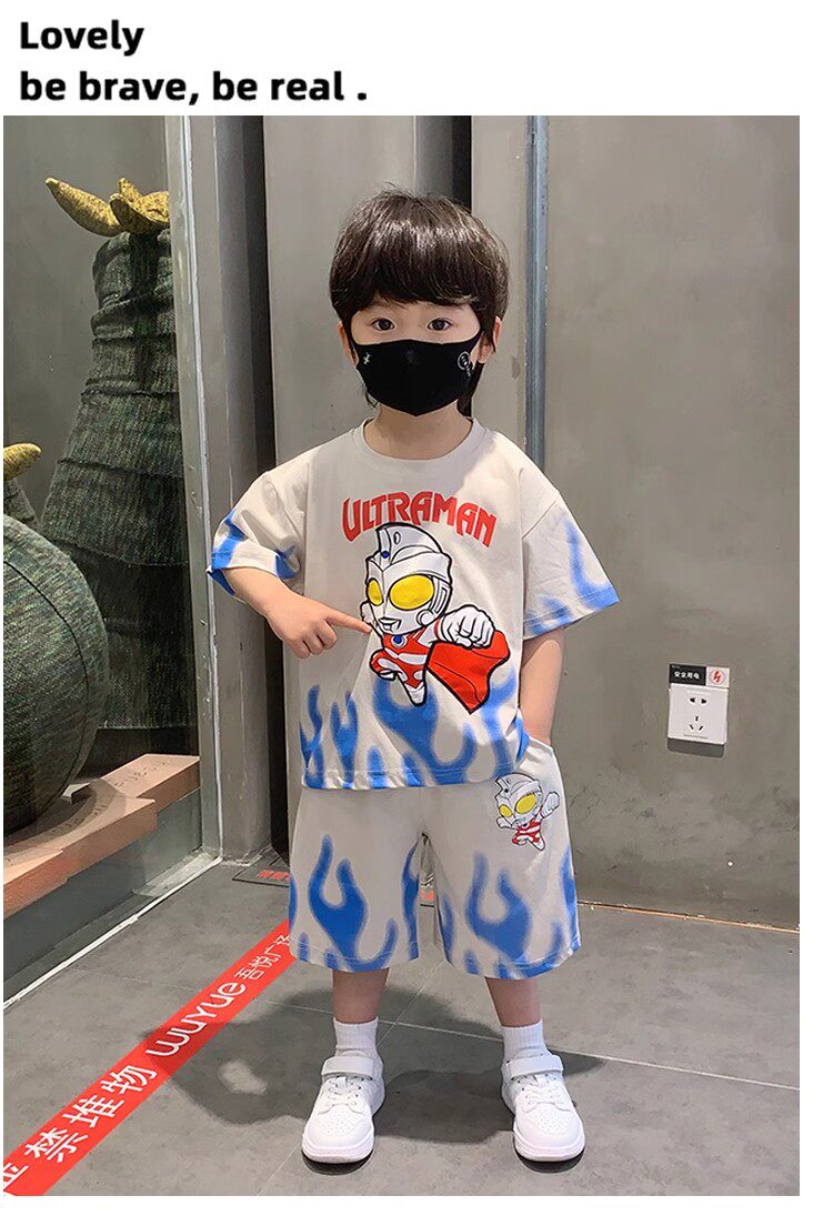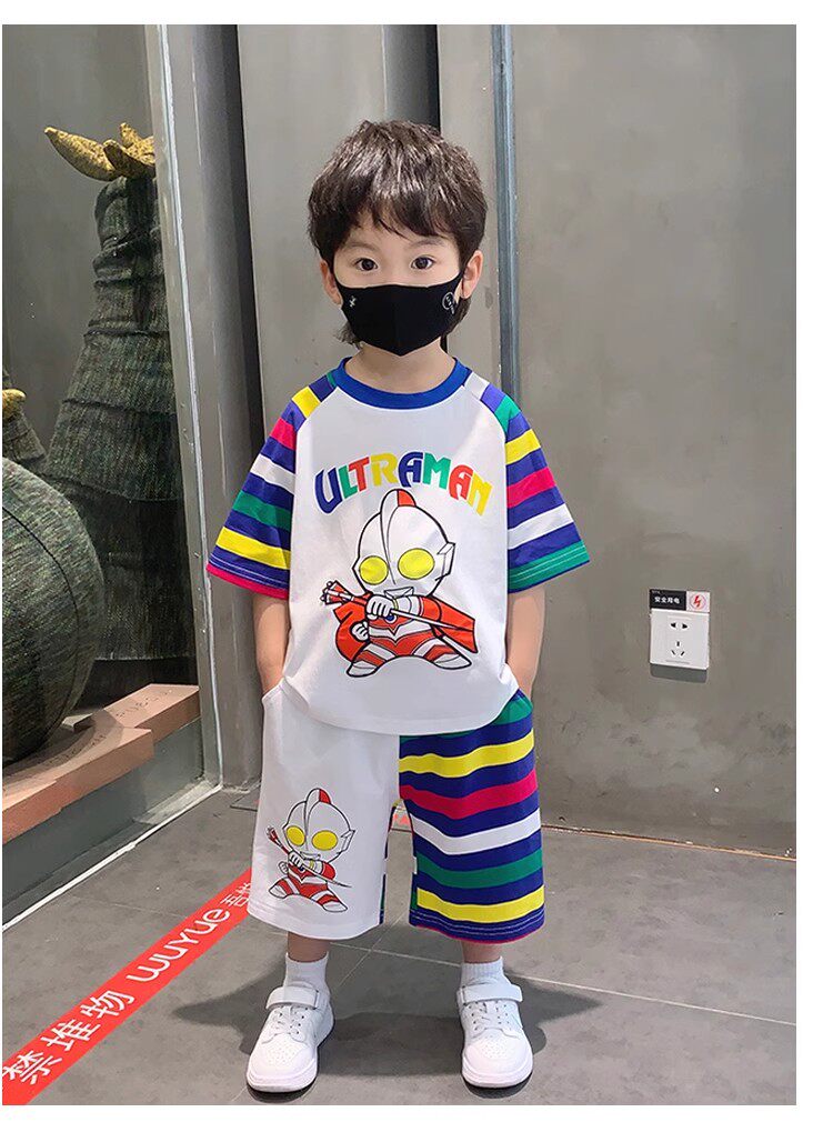 French Berydia Boys' Short-Sleeved Suit, Summer Baby Thin Stylish T-Shirt, Fashionable Clothes for Young Children