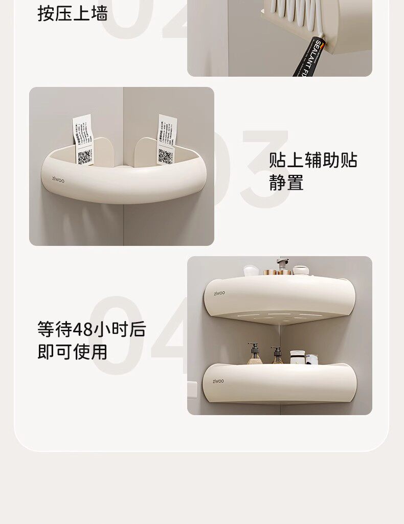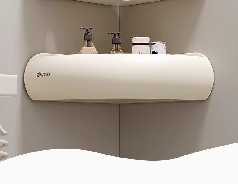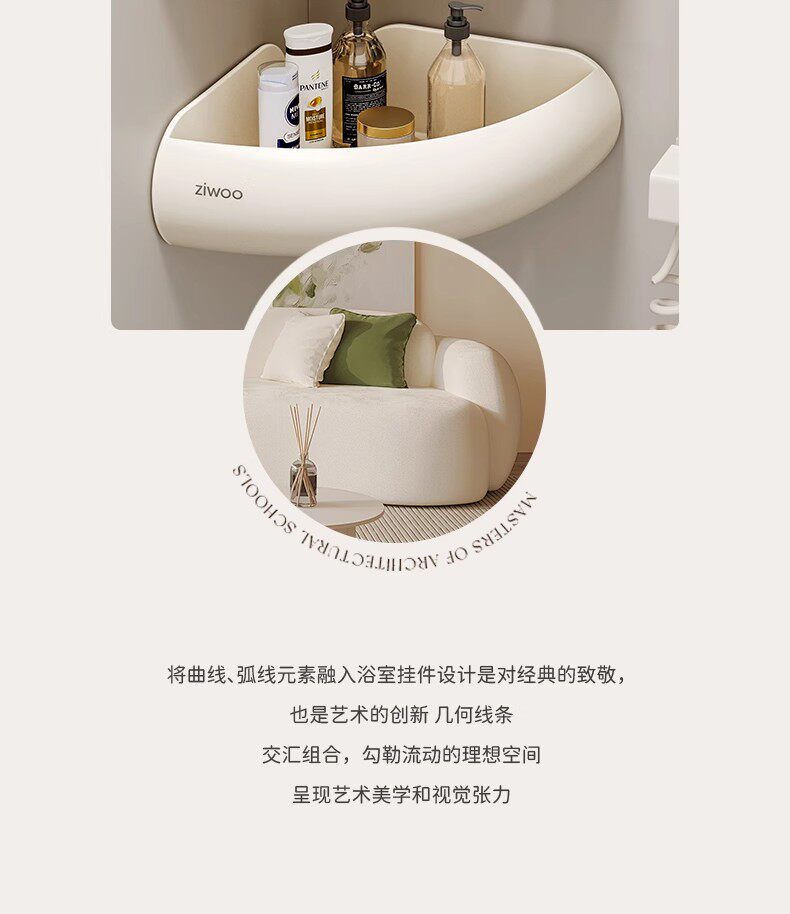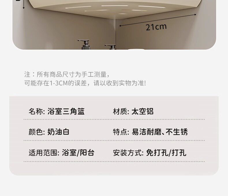 German Precision-Made Cream-Colored Bathroom Shelf, Arc-Shaped Triangular Basket Rack, No-Drill Corner Storage Rack for Bathroom
