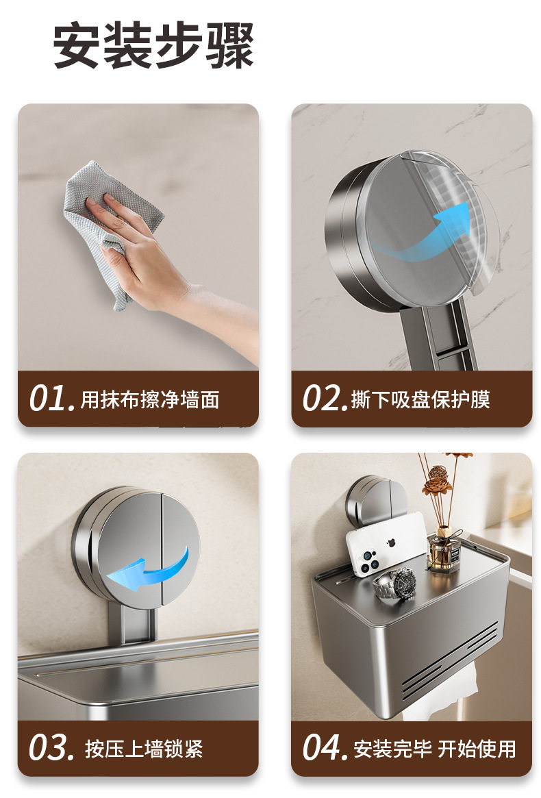 German Seiko Bathroom Suction Cup Tissue Box Wall-Mounted Punch-Free Toilet Paper Box Roll Toilet Paper Storage Rack