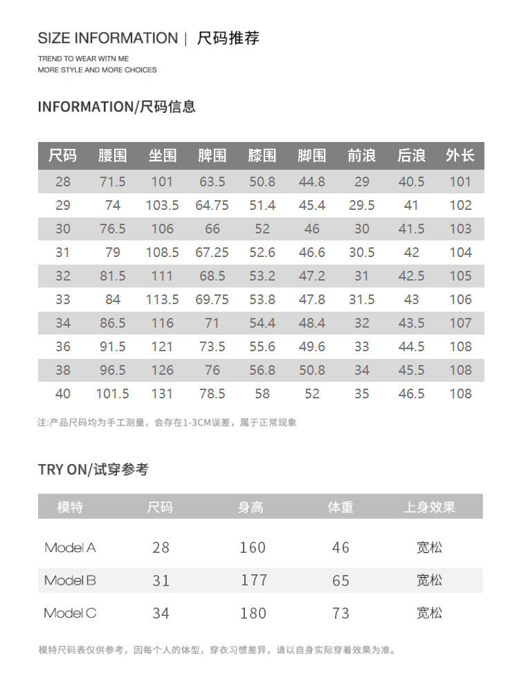 Outseam (cm) 99 cm 101.5 cm 104 cm 106.5 cm 109 cm