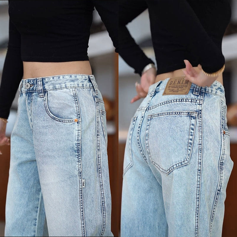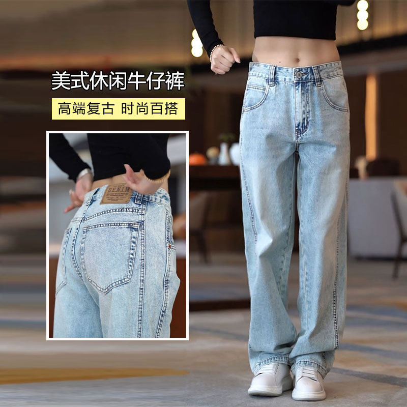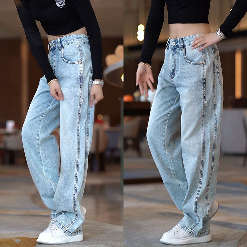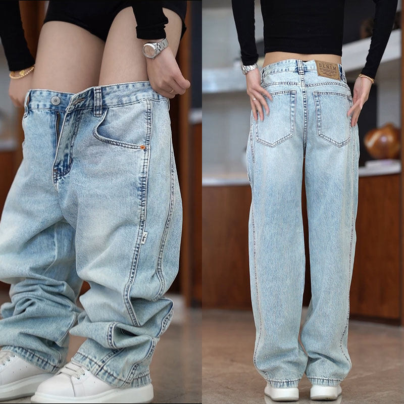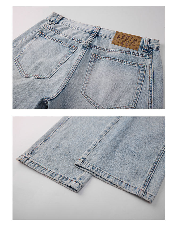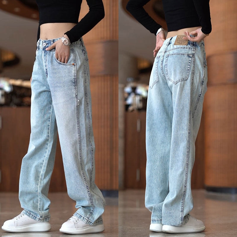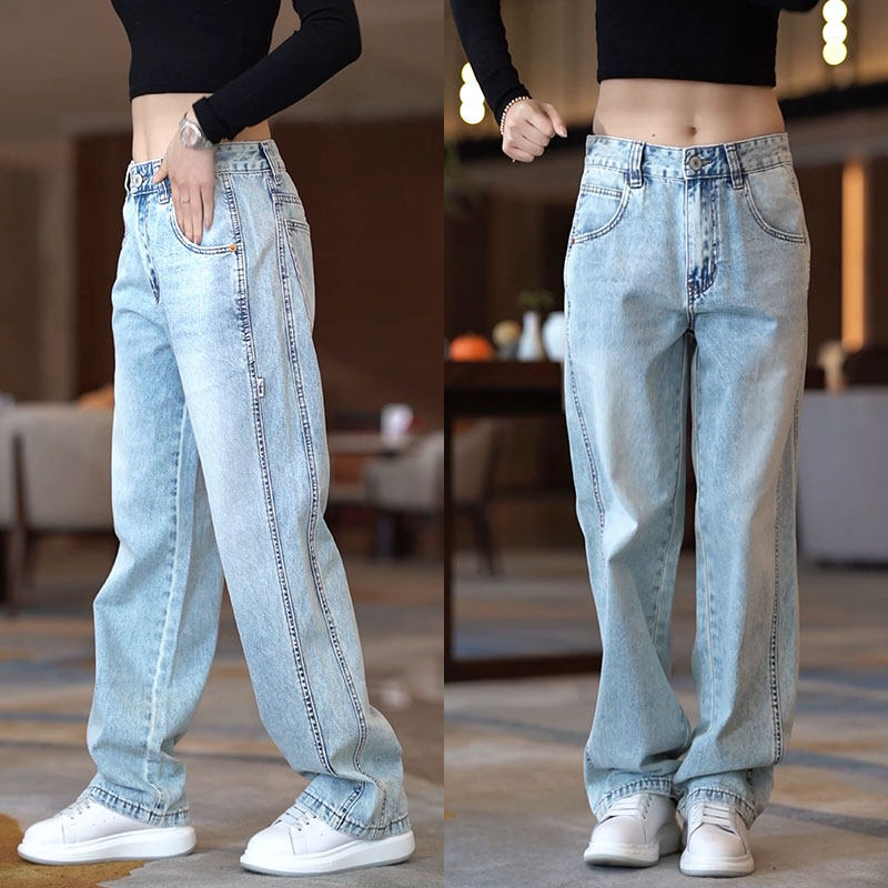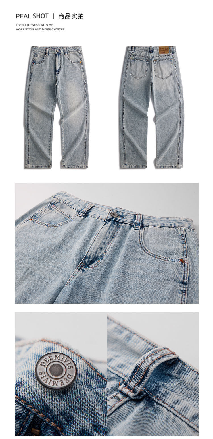 Light color jeans for men spring and summer new style simple splicing versatile drape straight pants American retro high street wide leg pants