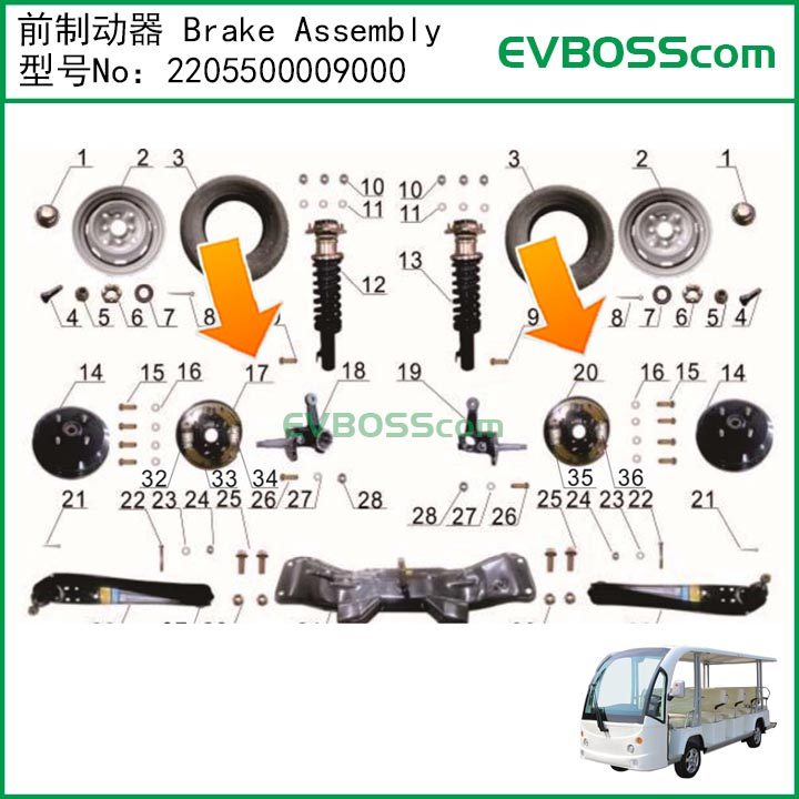 2205500009000 Front Brake/220 Front Drum Brake for Masil Yigao Langqing Sightseeing Car