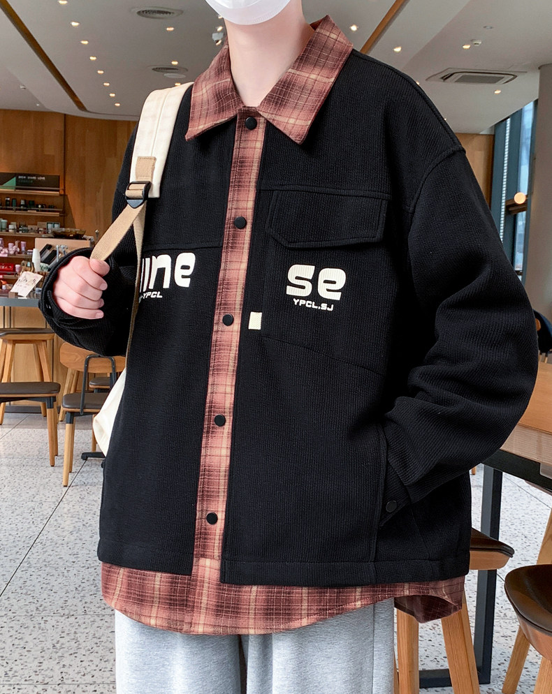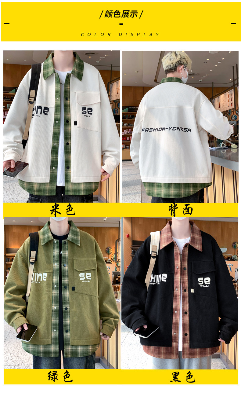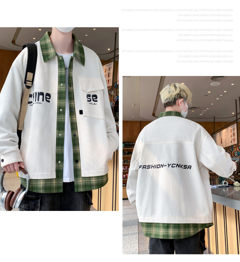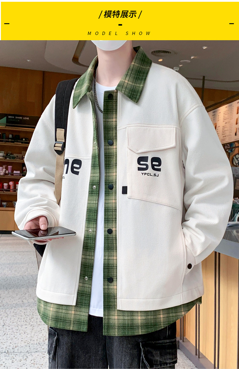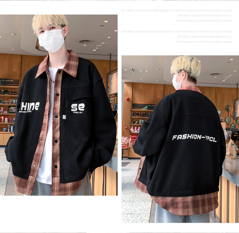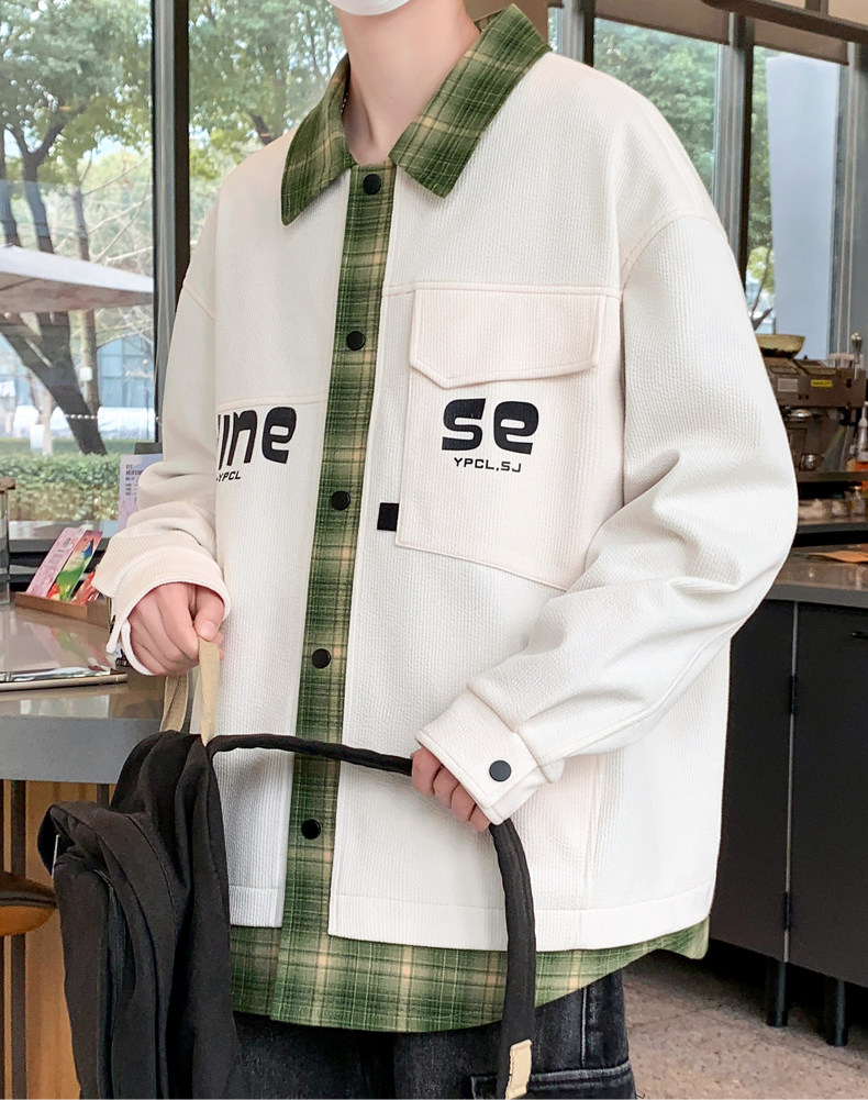 Fake two-piece jacket men's spring and autumn 2025 new plaid shirt-style jacket boys and teenagers workwear tops