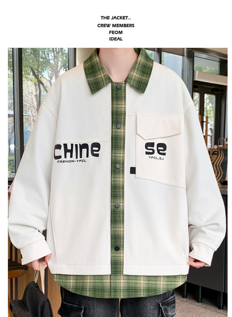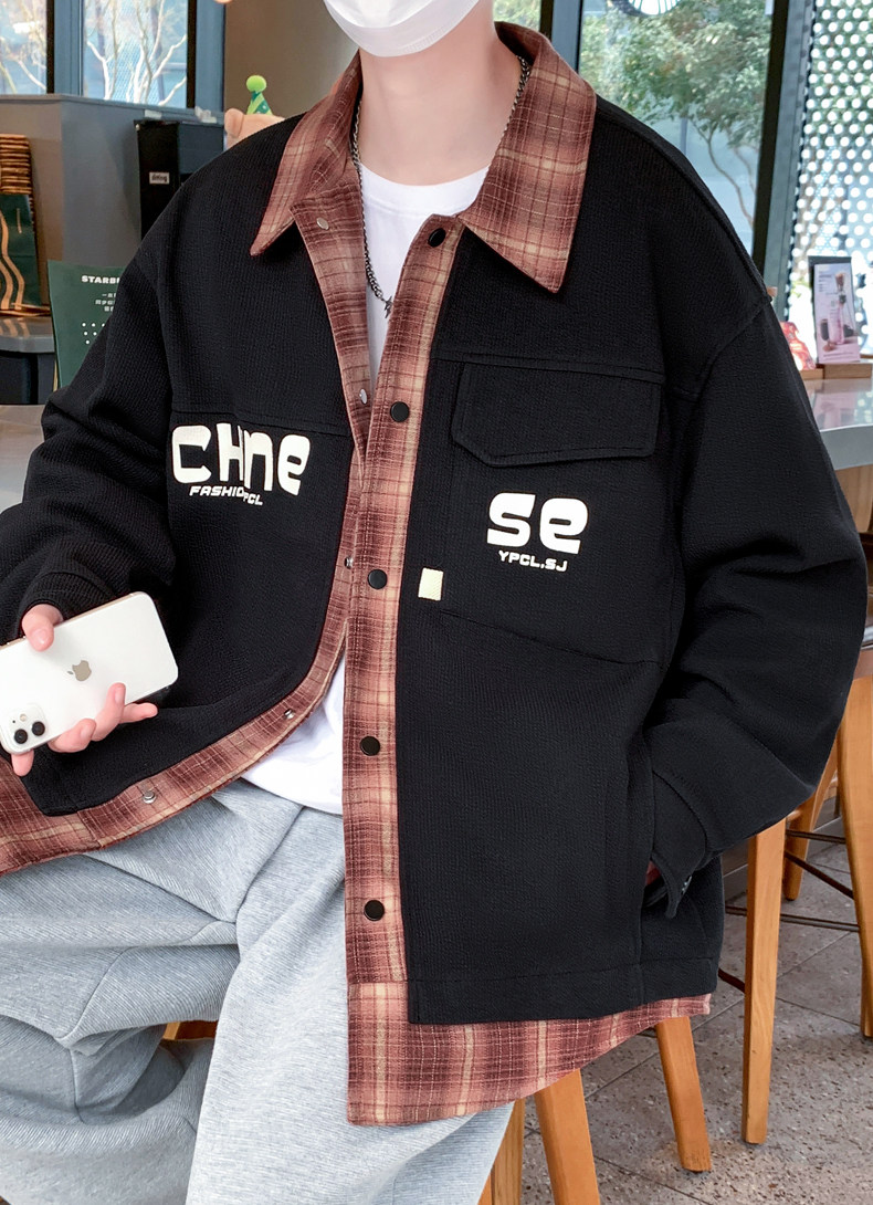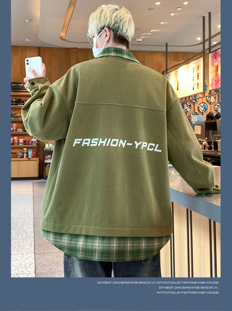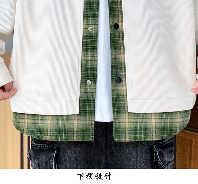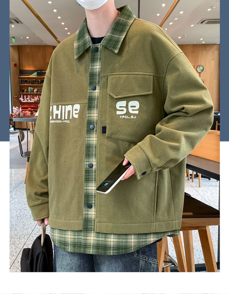 Fake two-piece jacket men's spring and autumn 2025 new plaid shirt-style jacket boys and teenagers workwear tops