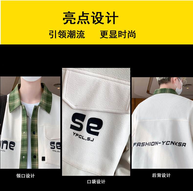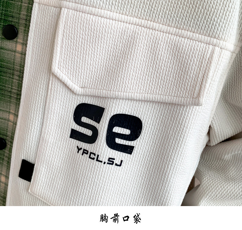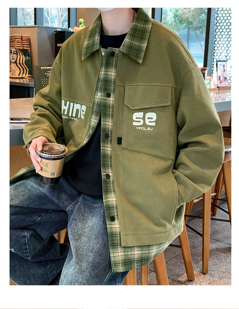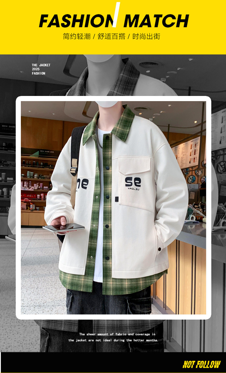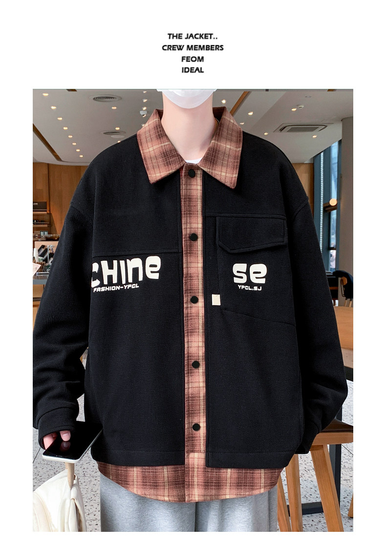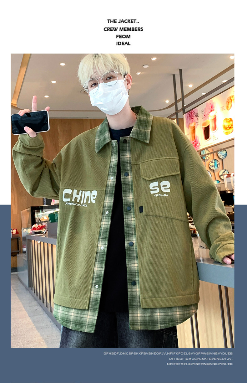 Fake two-piece jacket men's spring and autumn 2025 new plaid shirt-style jacket boys and teenagers workwear tops