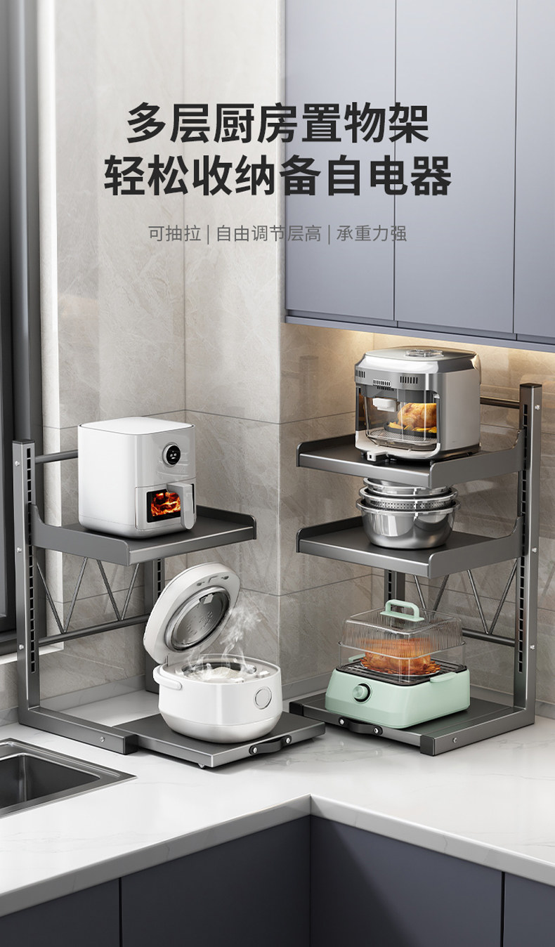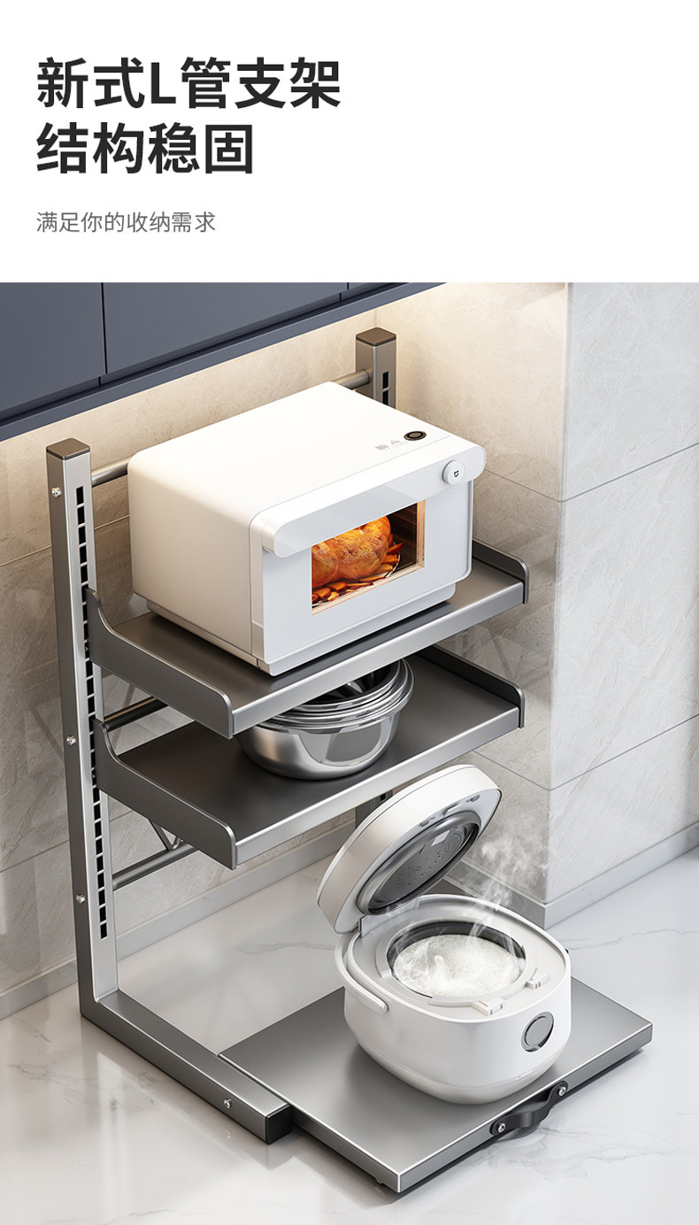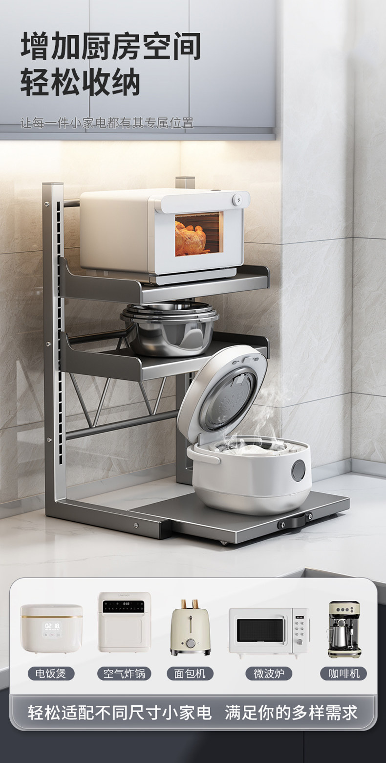 Rice Cooker Storage Rack, Multi-Functional Microwave Oven Rack, Kitchen Oven Pot Rack, Appliance Countertop Pull-Out Storage Rack