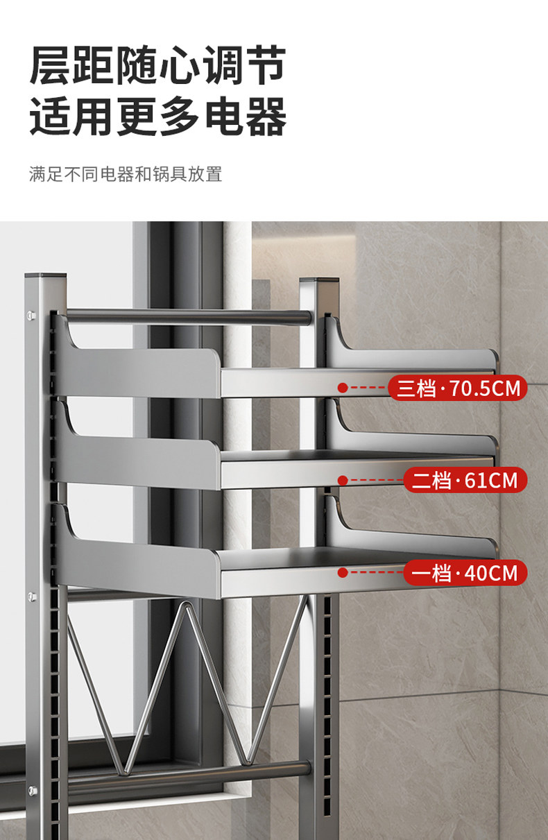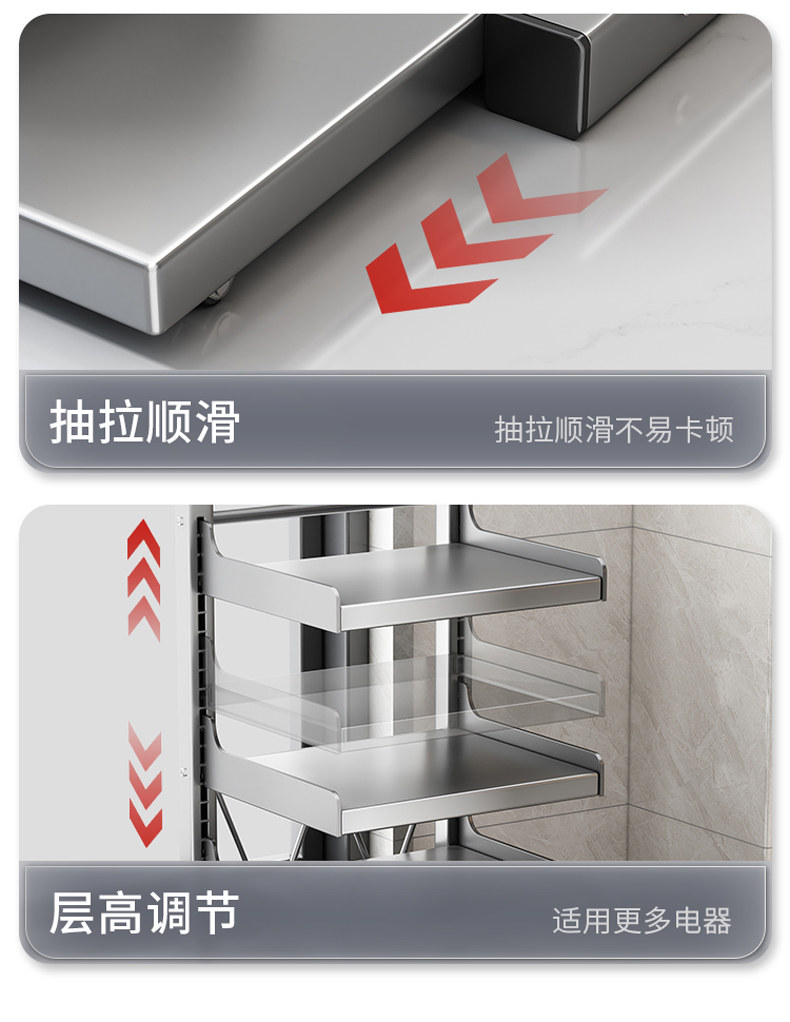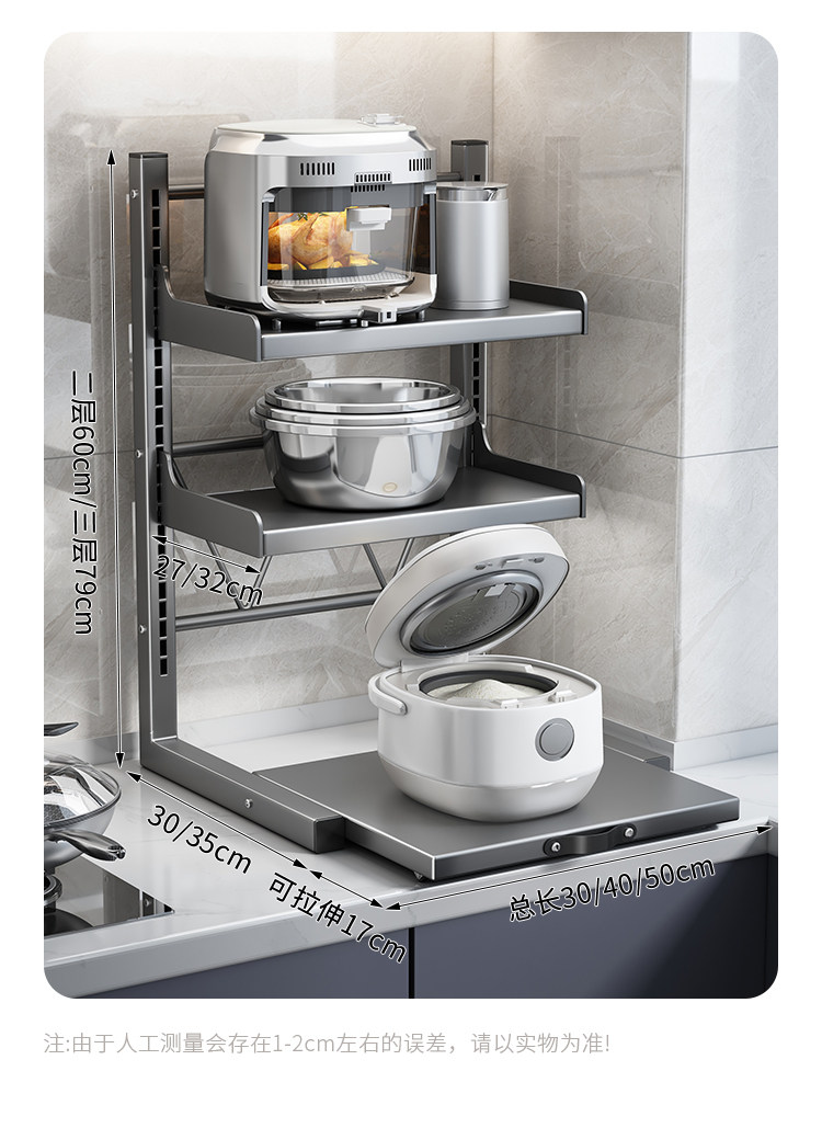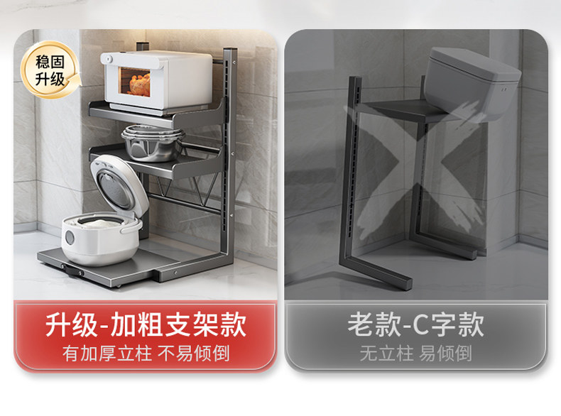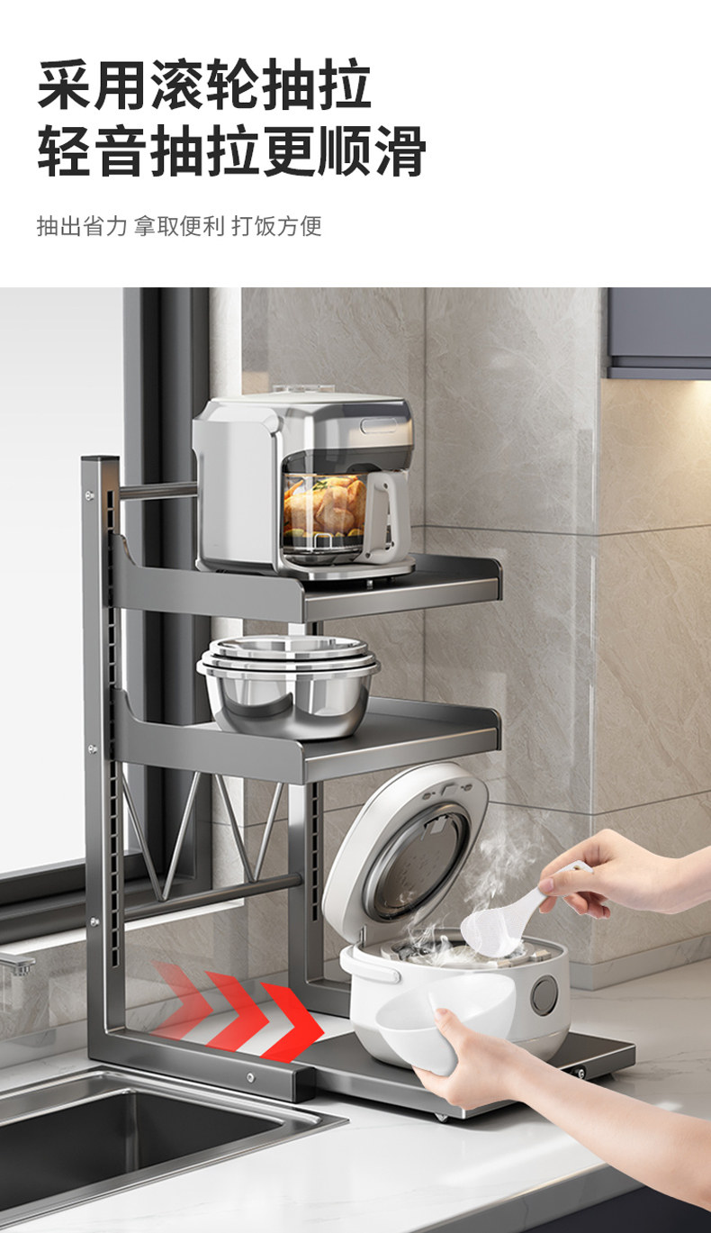 Rice Cooker Storage Rack, Multi-Functional Microwave Oven Rack, Kitchen Oven Pot Rack, Appliance Countertop Pull-Out Storage Rack