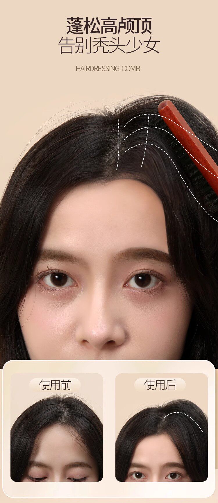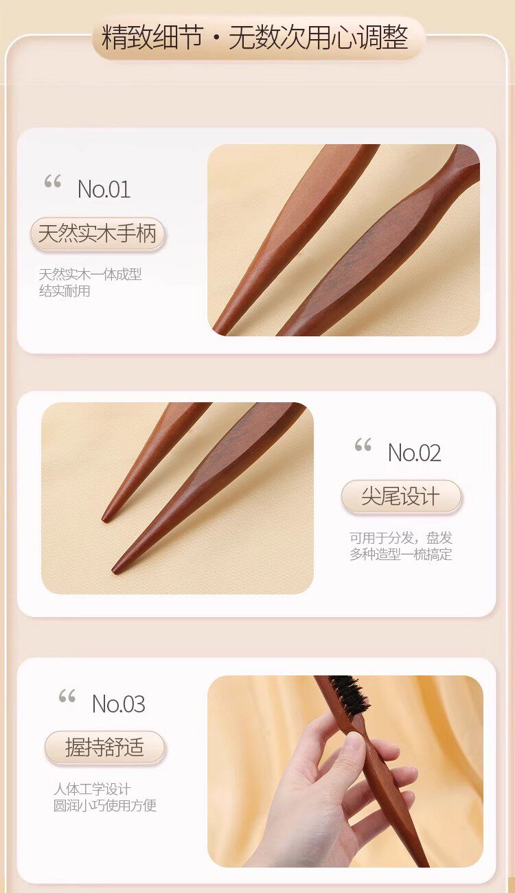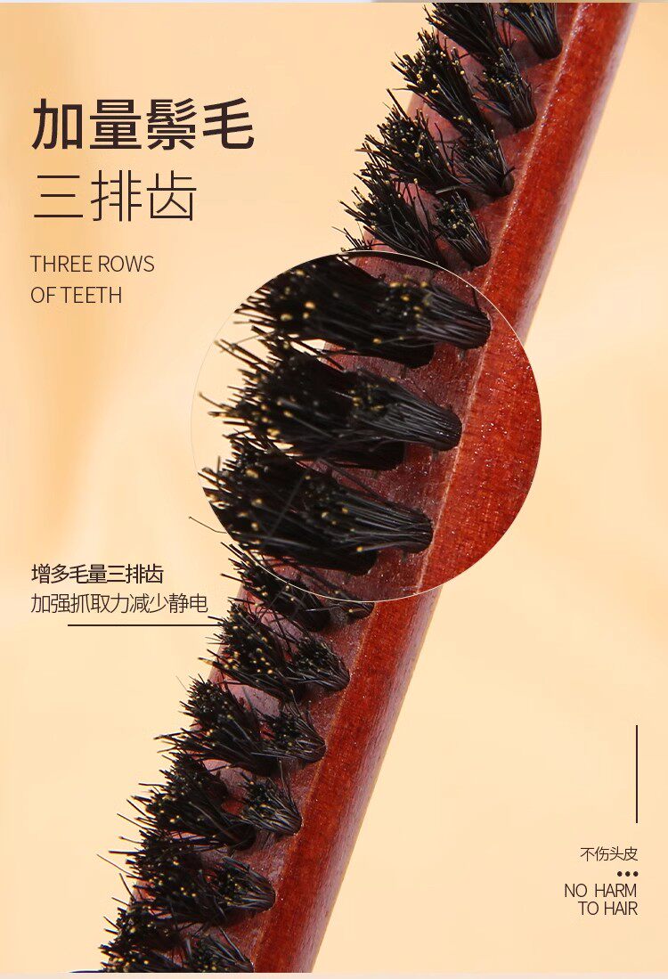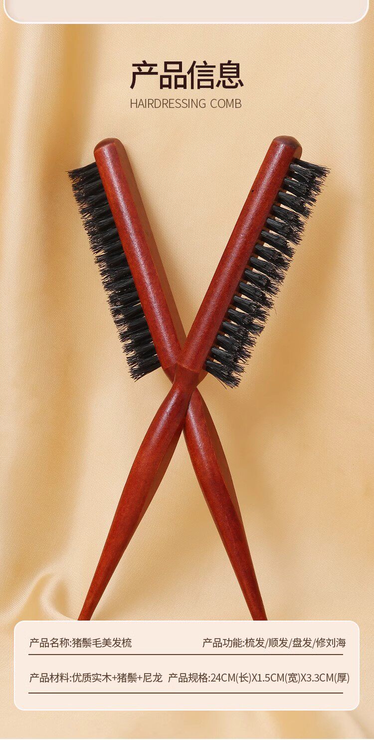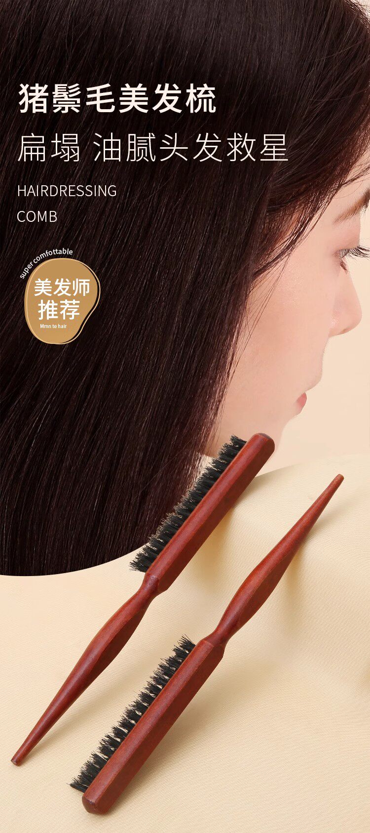 Boar Bristle Narrow-Tooth Comb for Hair Styling, Three-Row Teasing Comb for Voluminous Styling, Long-Handled Makeup Comb with Pointed Tail for Updos and Curly Hair