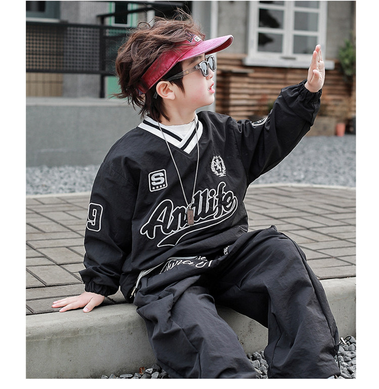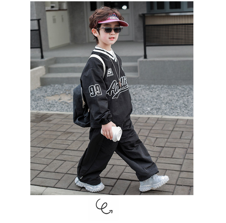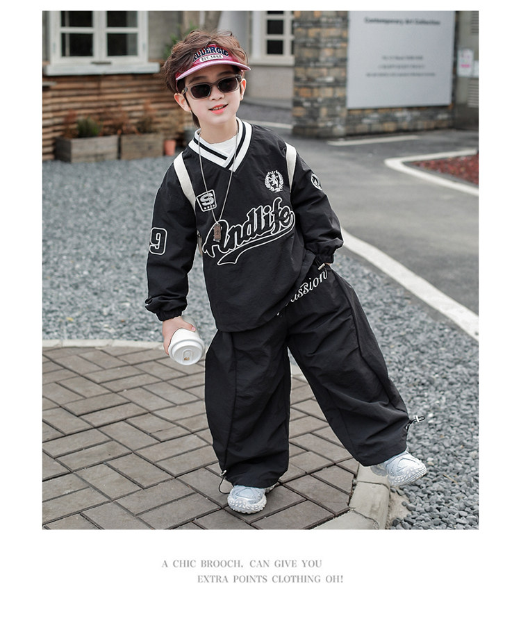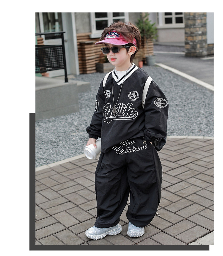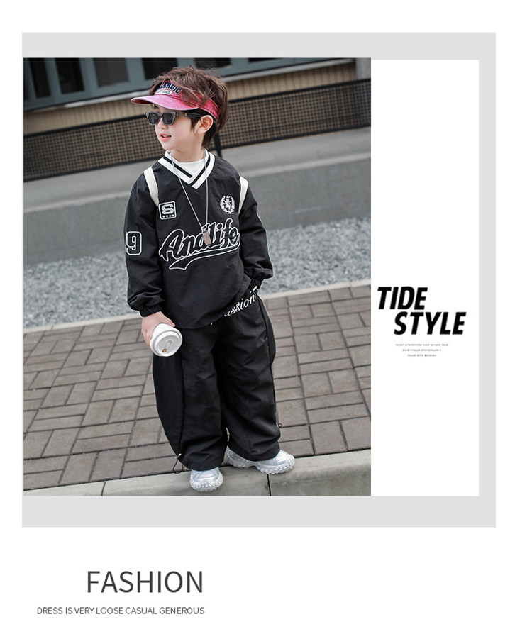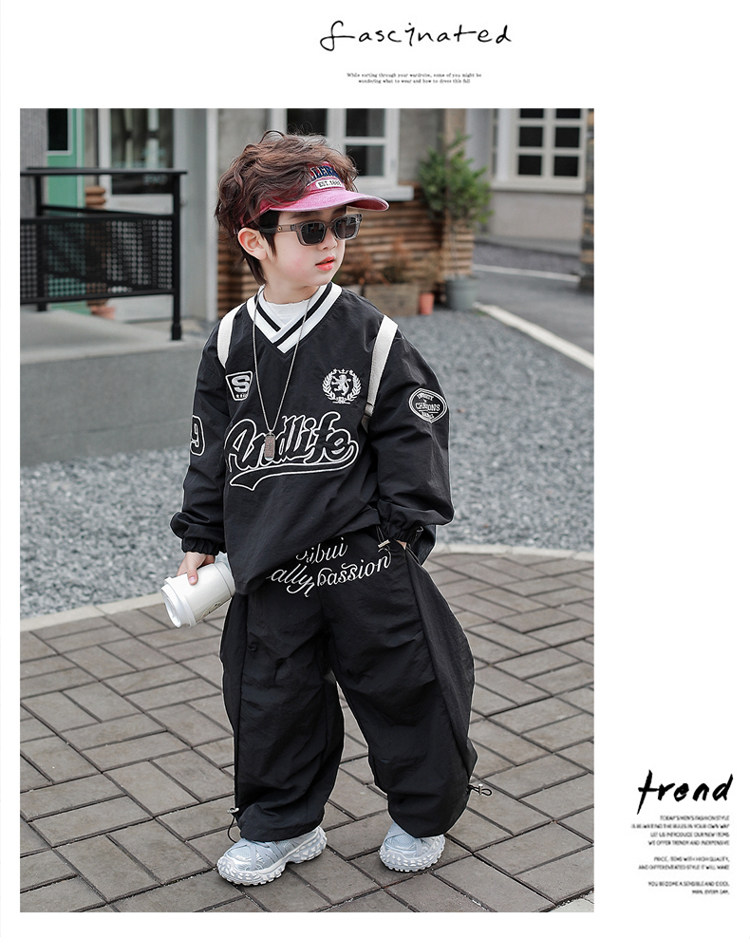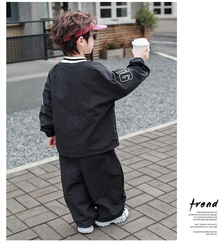 Boys' Suit Children's 2026 New Spring Outfit Baby Girl American Retro Biker Baseball Jacket Sweatshirt Two-Piece Set Trendy