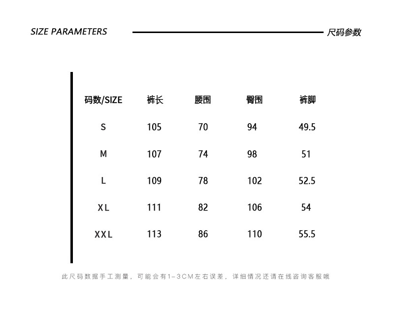 Outseam (cm) 99 cm 101.5 cm 104 cm 106.5 cm 109 cm