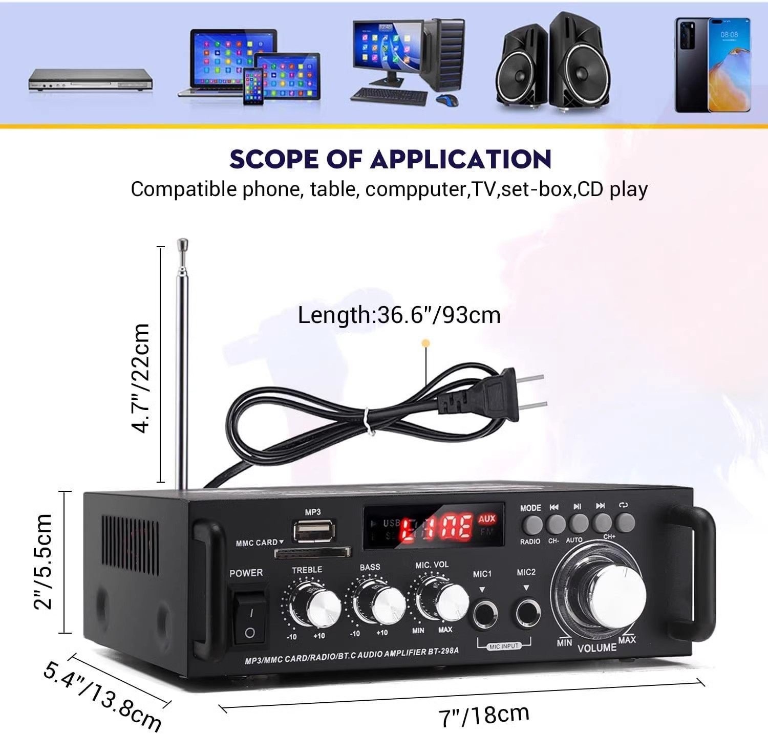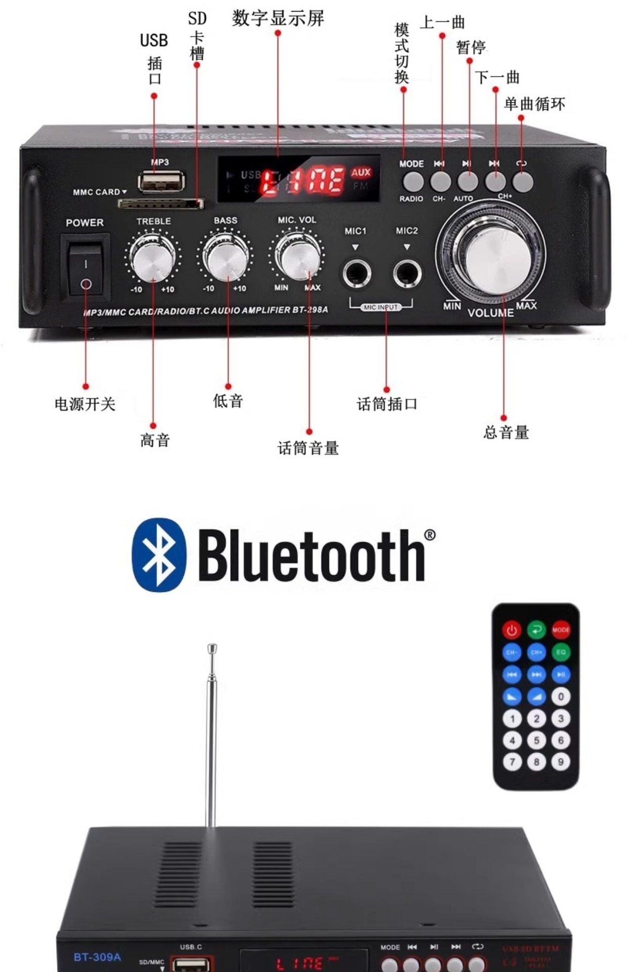 Sort by color 110v Bluetooth version + BT298A (domestic voltage prohibited),110v US standard AV-326BT (domestic voltage prohibited),110v US standard AV-369BT-Bluetooth power amplifier (domestic voltage prohibited),110v US standard AV-016 with display (domestic voltage disabled),220v European standard please contact customer service