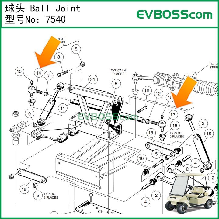 7540 Ball Joint/Clubcar Golf Ds Cart Steering Linkage Ball Joint 7539