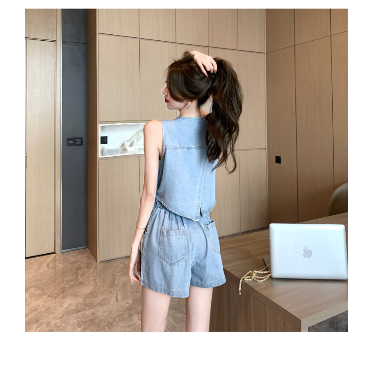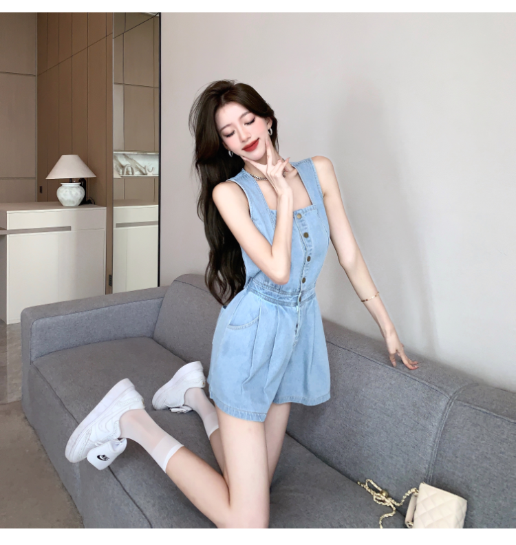 Sexy Hot Girl Denim Overalls with Back Slit, Hollow-Out Single-Breasted High-Waisted Wide-Leg Jumpsuit for Spring and Summer