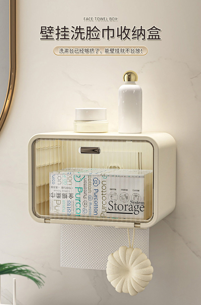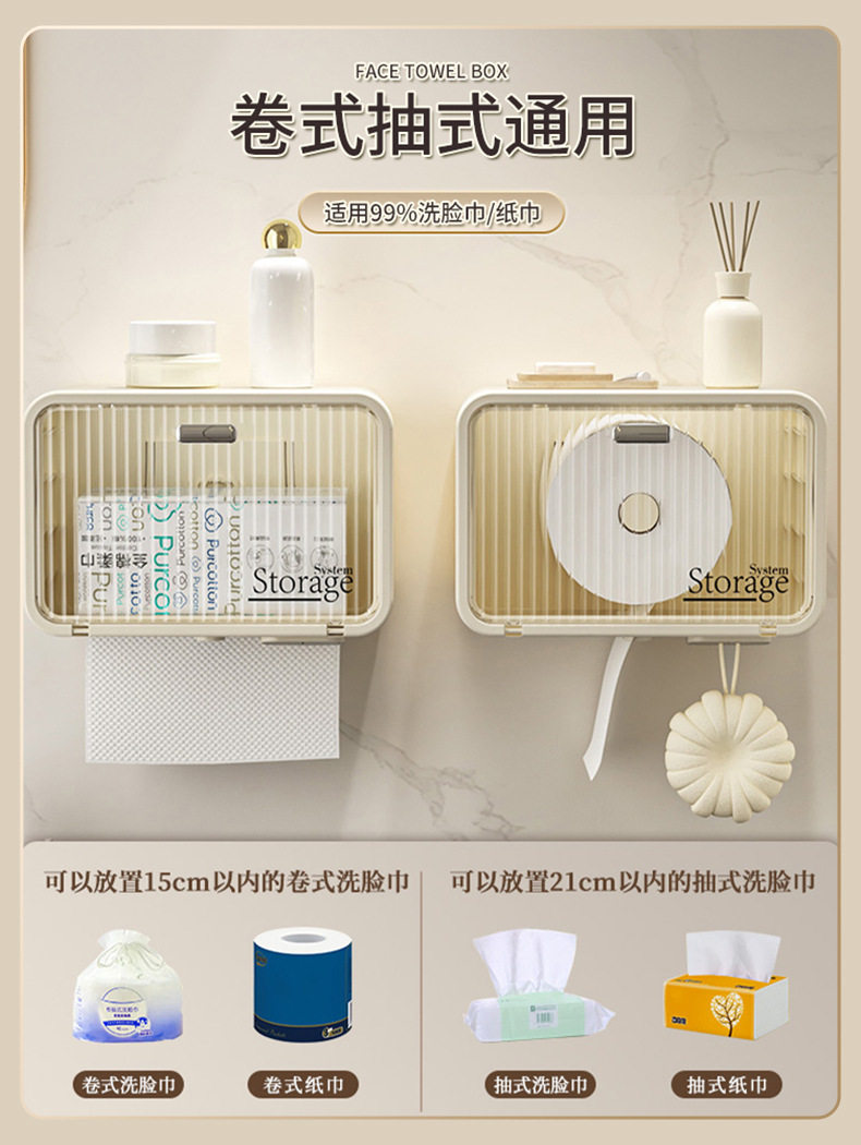 Japanese Bathroom Tissue Box Waterproof Toilet Paper Holder Wall-Mounted Punch-Free Tissue Box Toilet Paper Storage Rack