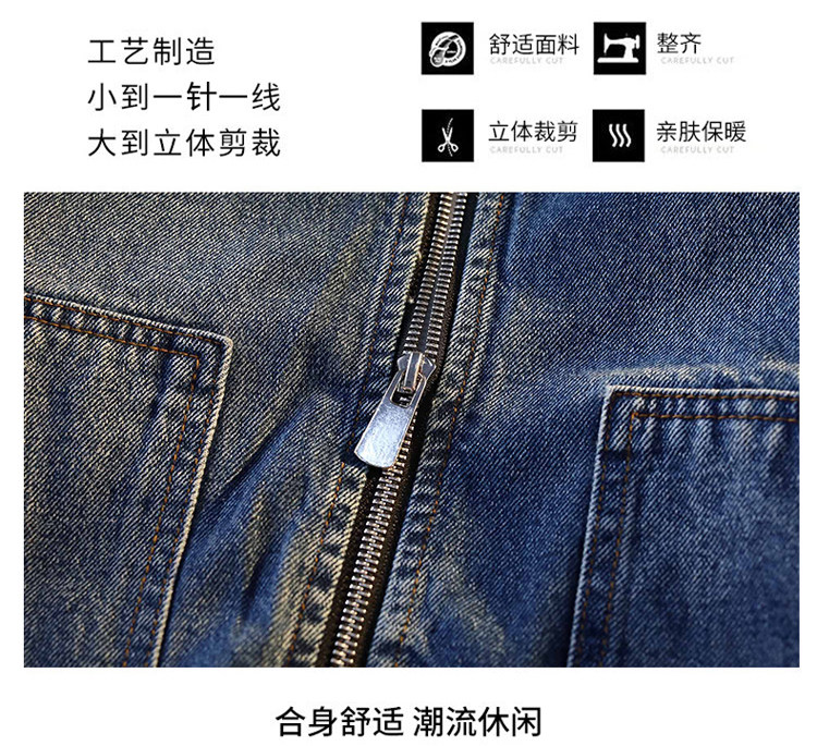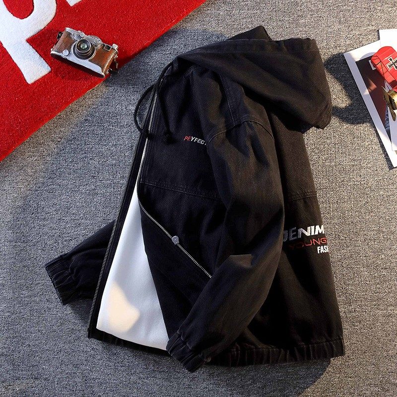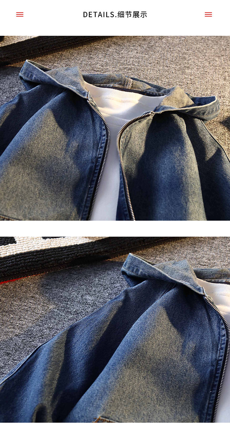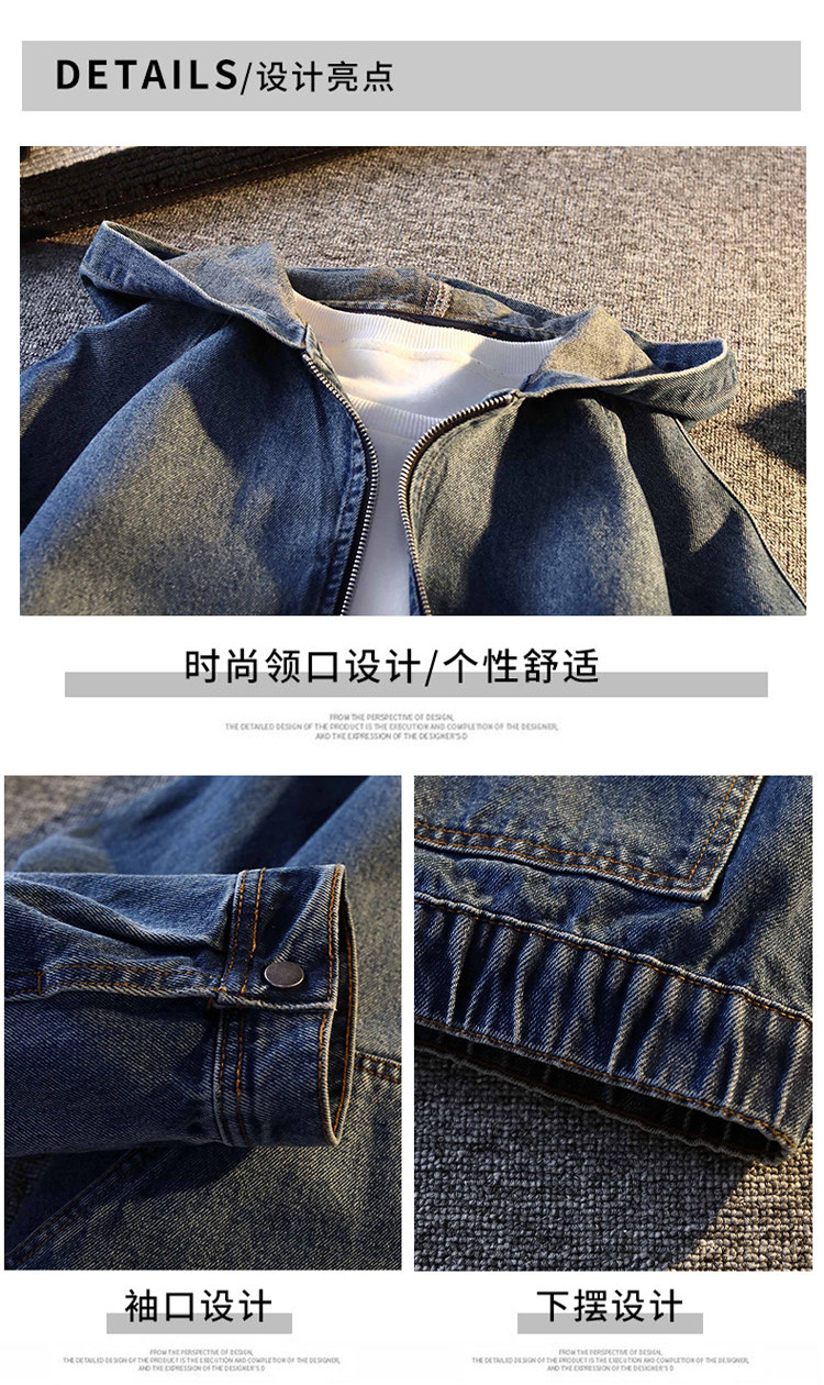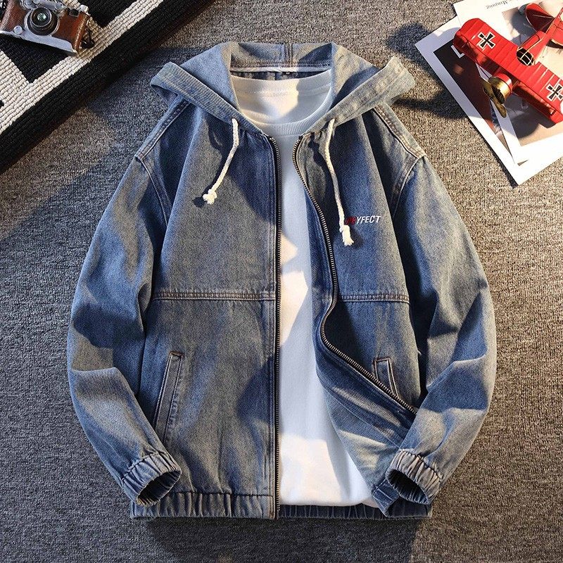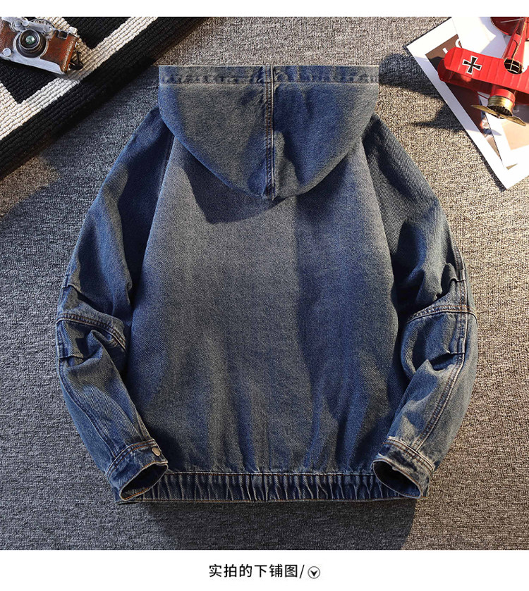 Spring and Autumn Fashion Hooded Retro Zipper Denim Jacket for Men, Teenagers and Students, Loose, Handsome and Casual Jacket