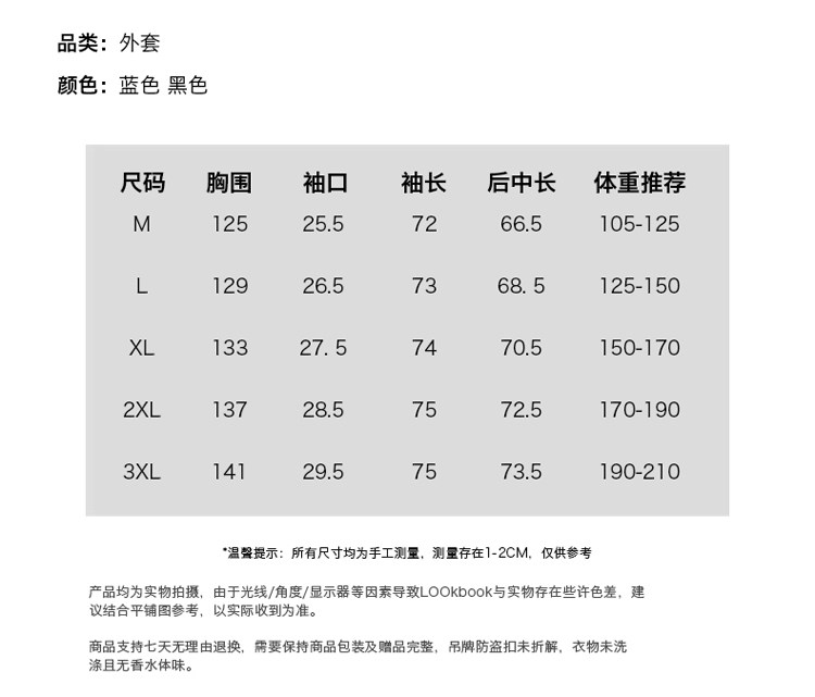 China (cm) 165 / 88-90 170 / 96-98 175 / 108-110 180 / 118-122 185 / 126-130
