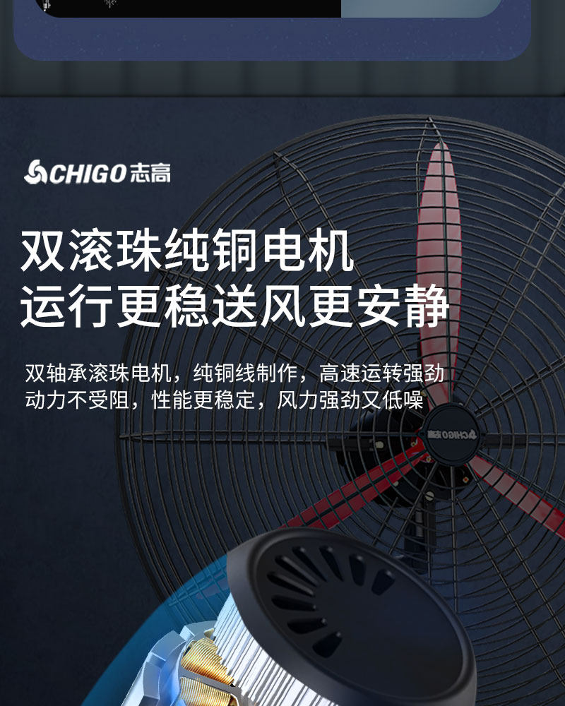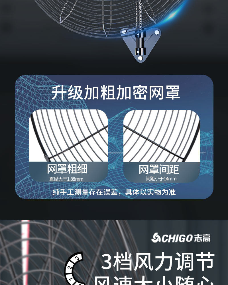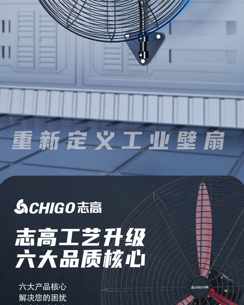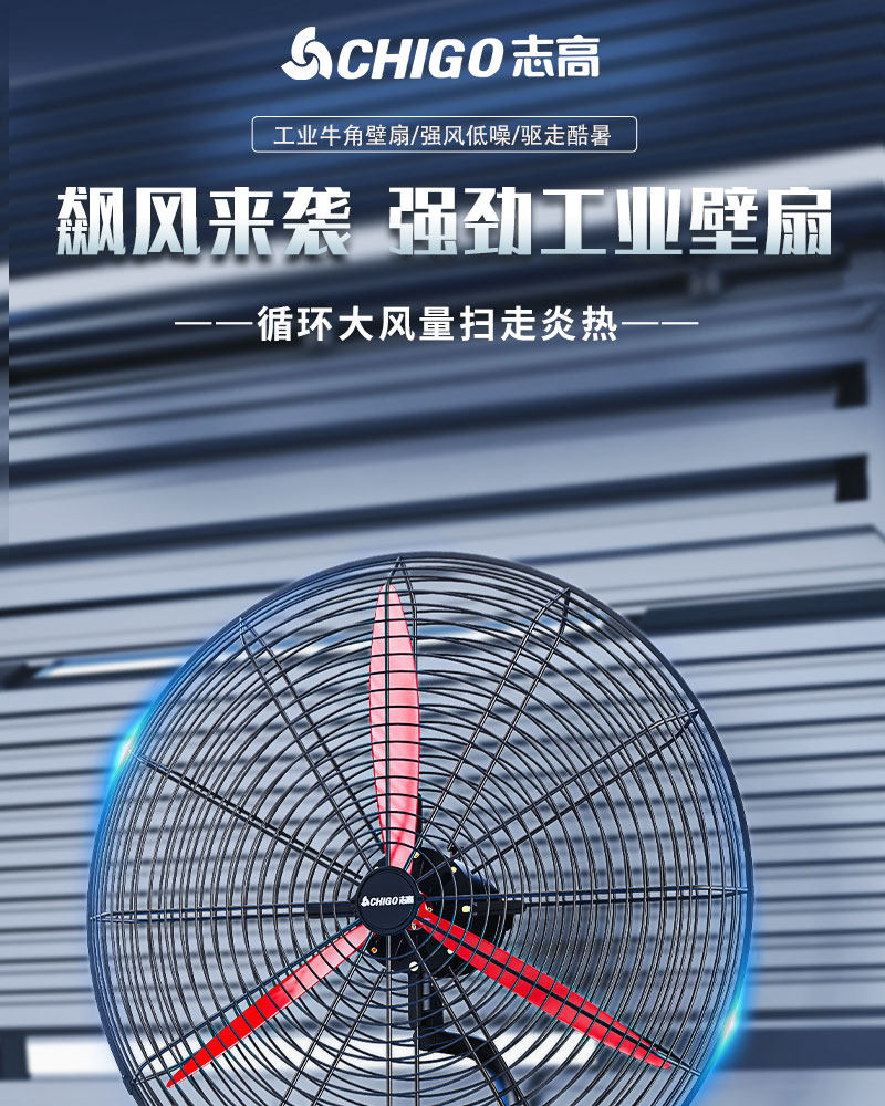 Chigo Industrial Fan Wall-Mounted Electric Fan with Strong Wind Power, High Power, Suitable for Farms and Livestock Sheds