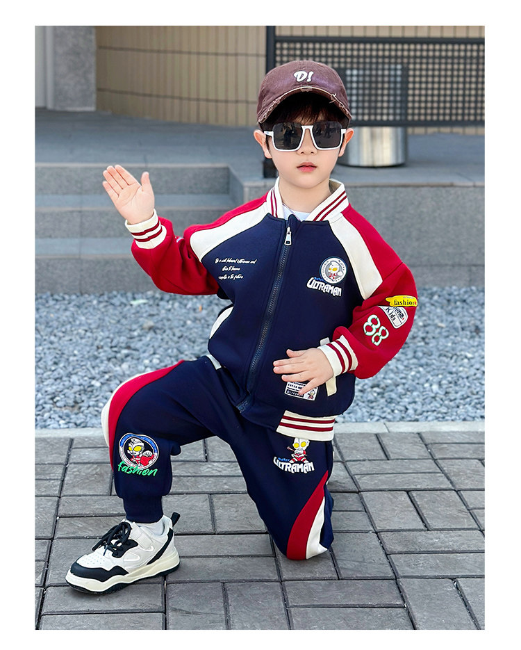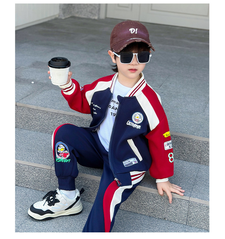 Boys' Ultraman Clothes, Spring and Autumn Style, Stylish Baseball Uniform, 2026 New Model, Cool and Fashionable Children's Two-Piece Set