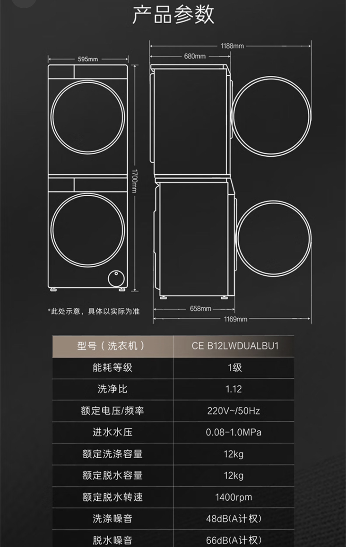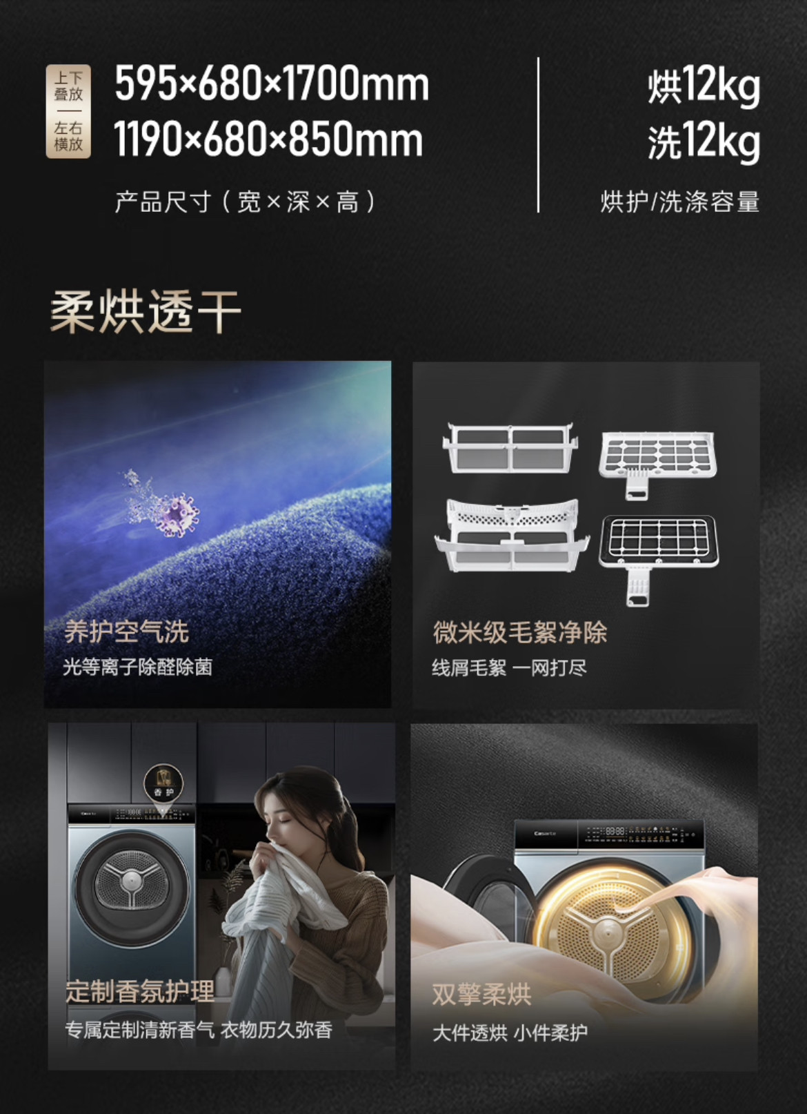 Casarte 12kg Xingyue lb Washing and Drying Set Ce B12Lwdualbu1+Cg S12Falbu1 Heat Pump Dryer