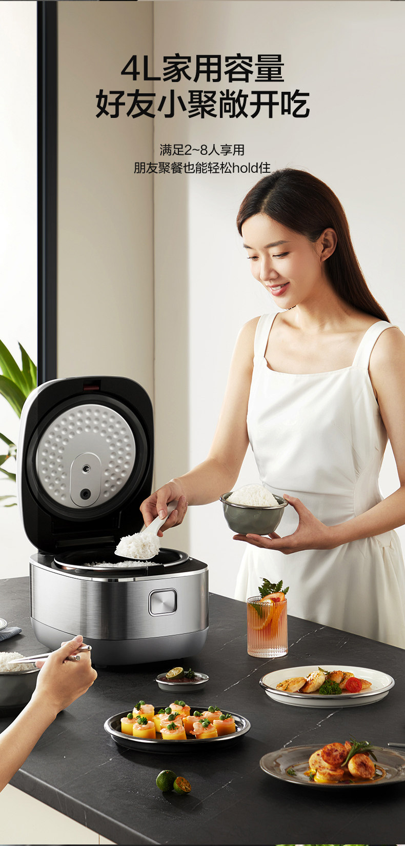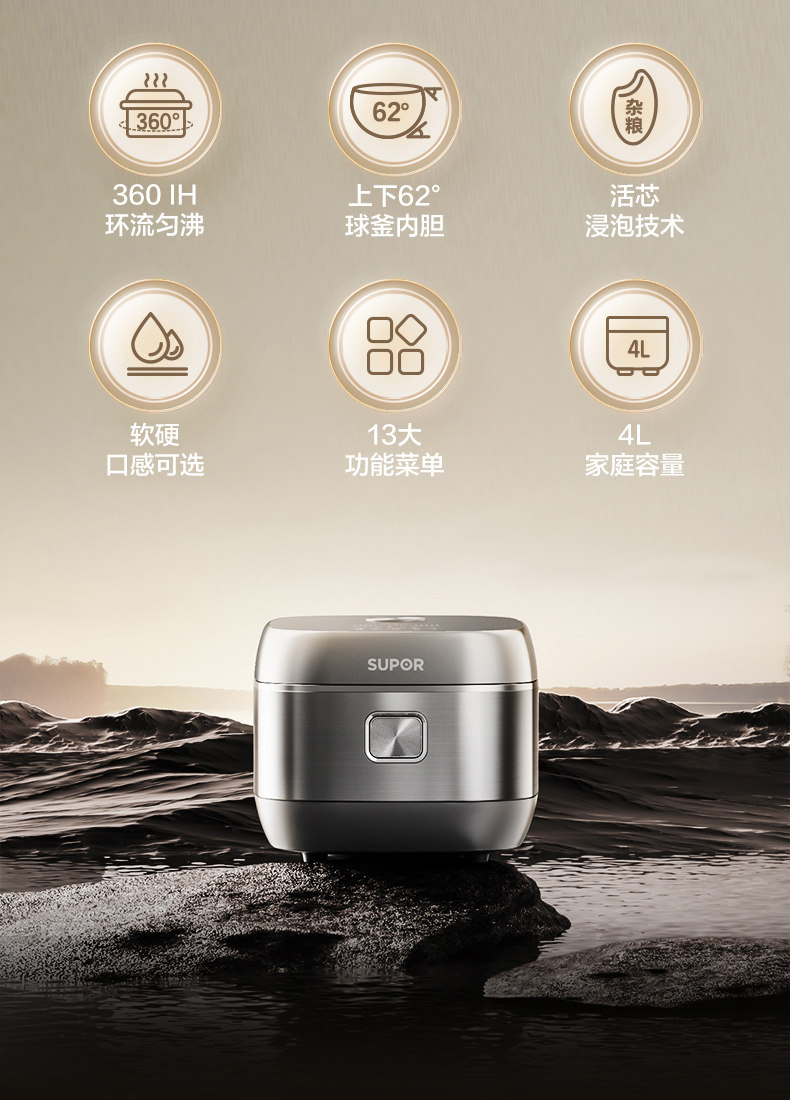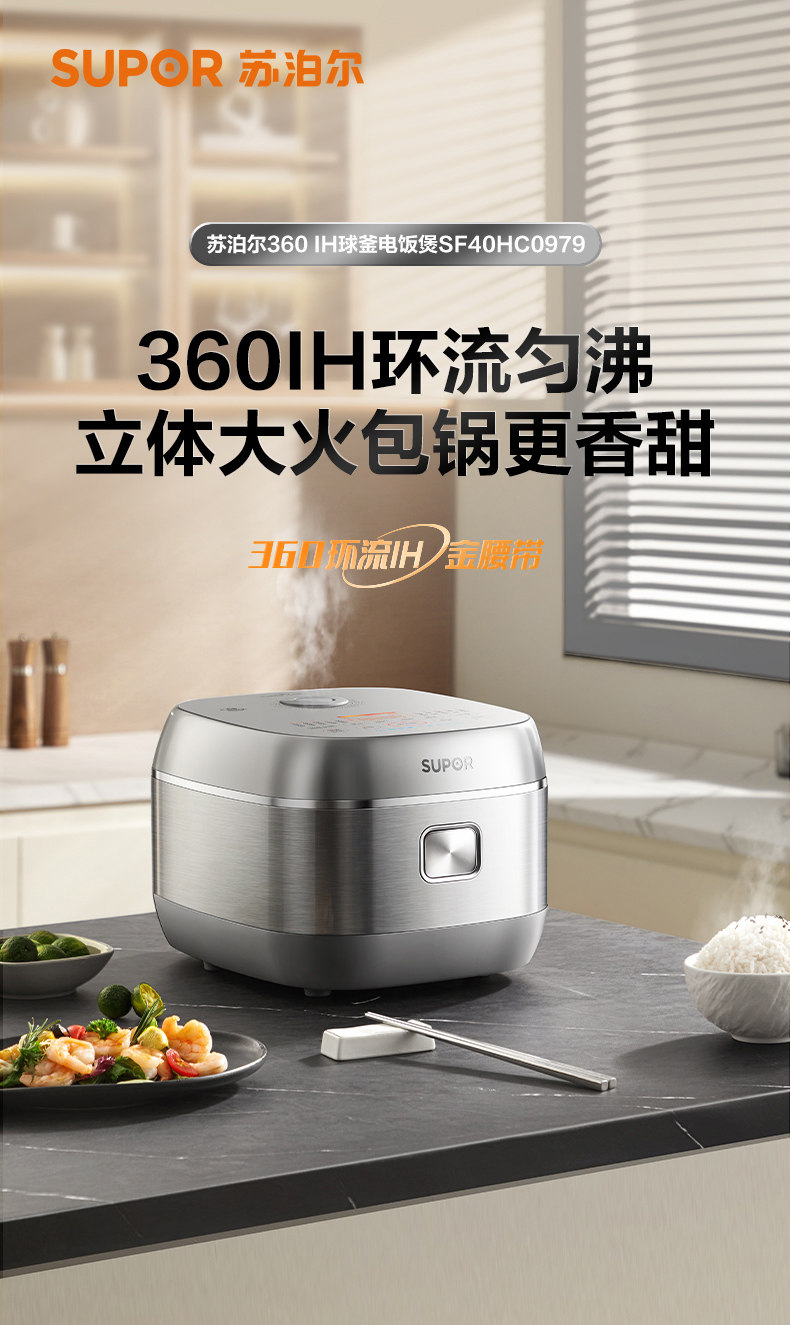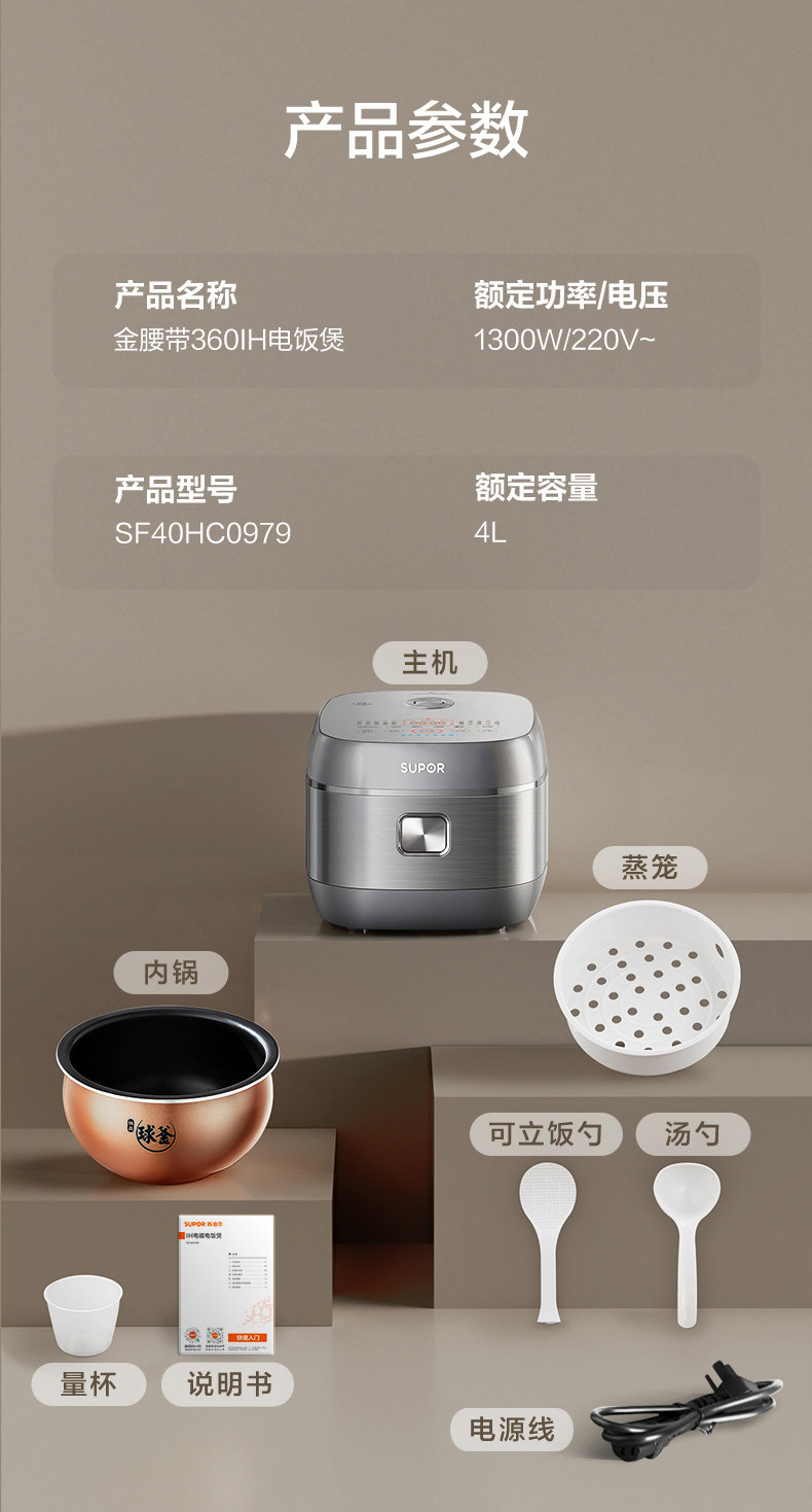 Supor Sf40Hc0979 Electric Rice Cooker 4L Household Ih Electromagnetic Heating Copper Crystal Ball Kettle Multi-Function