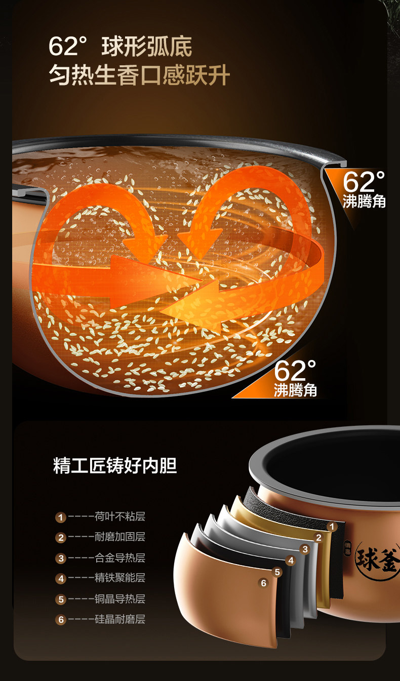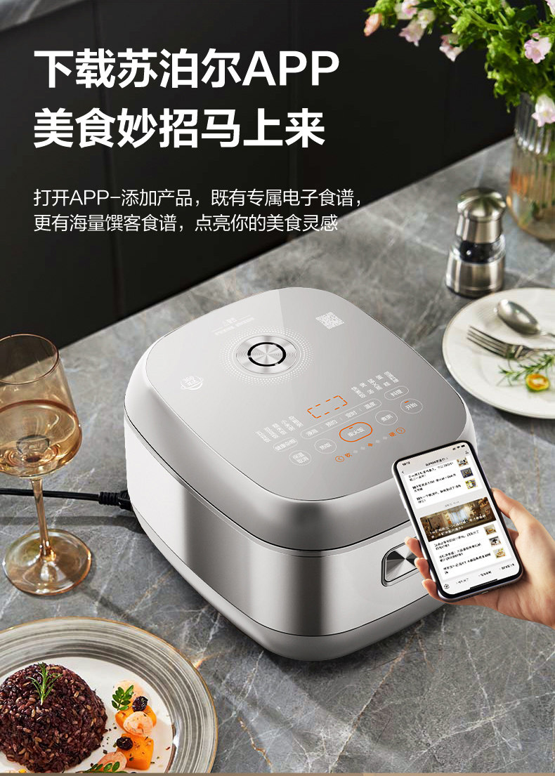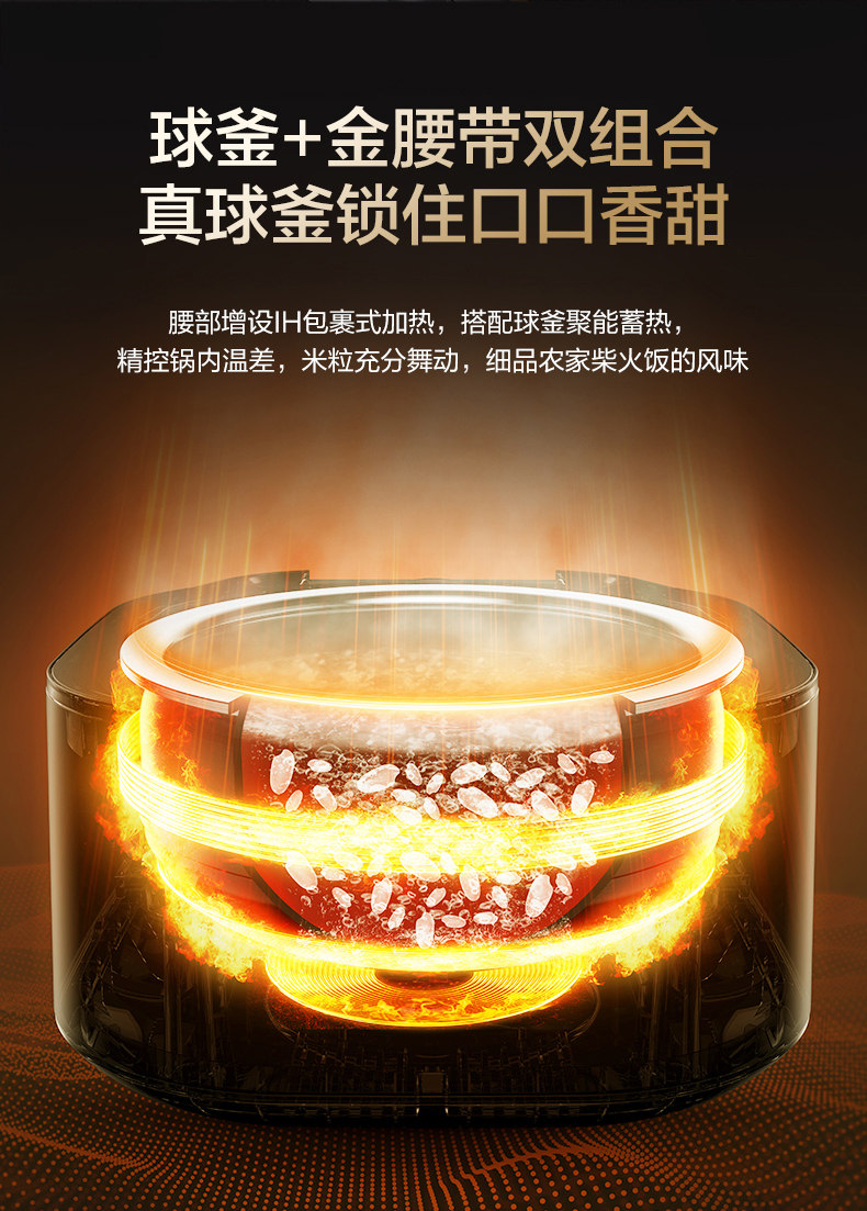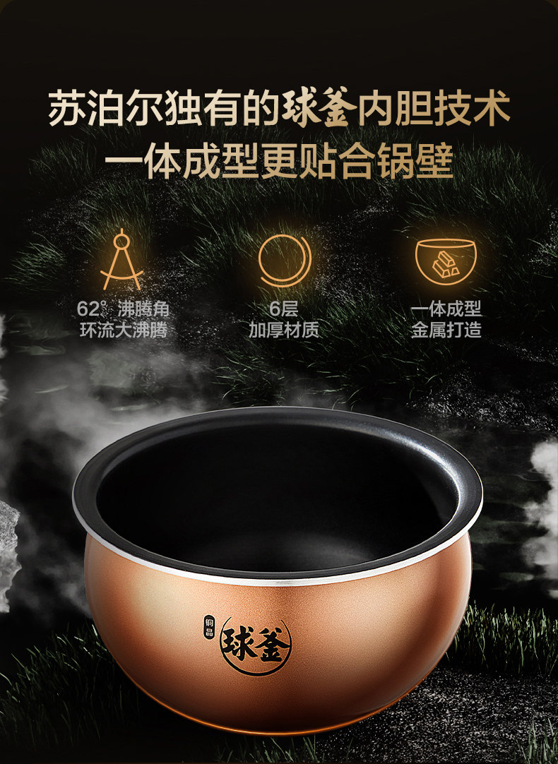 Supor Sf40Hc0979 Electric Rice Cooker 4L Household Ih Electromagnetic Heating Copper Crystal Ball Kettle Multi-Function
