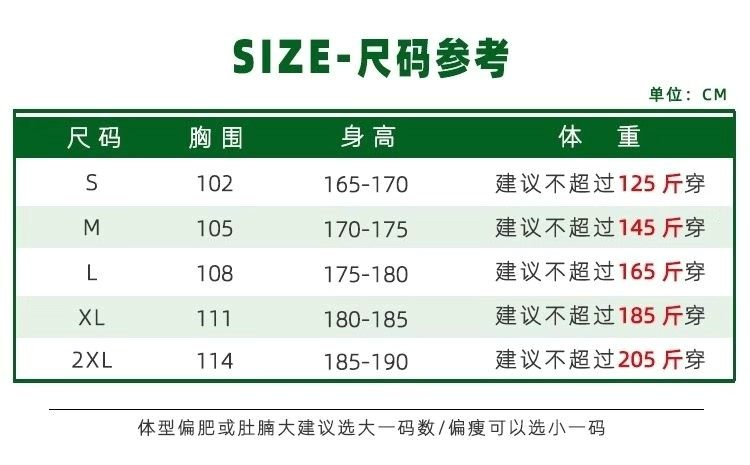 China (cm) 165 / 88-90 170 / 96-98 175 / 108-110 180 / 118-122 185 / 126-130