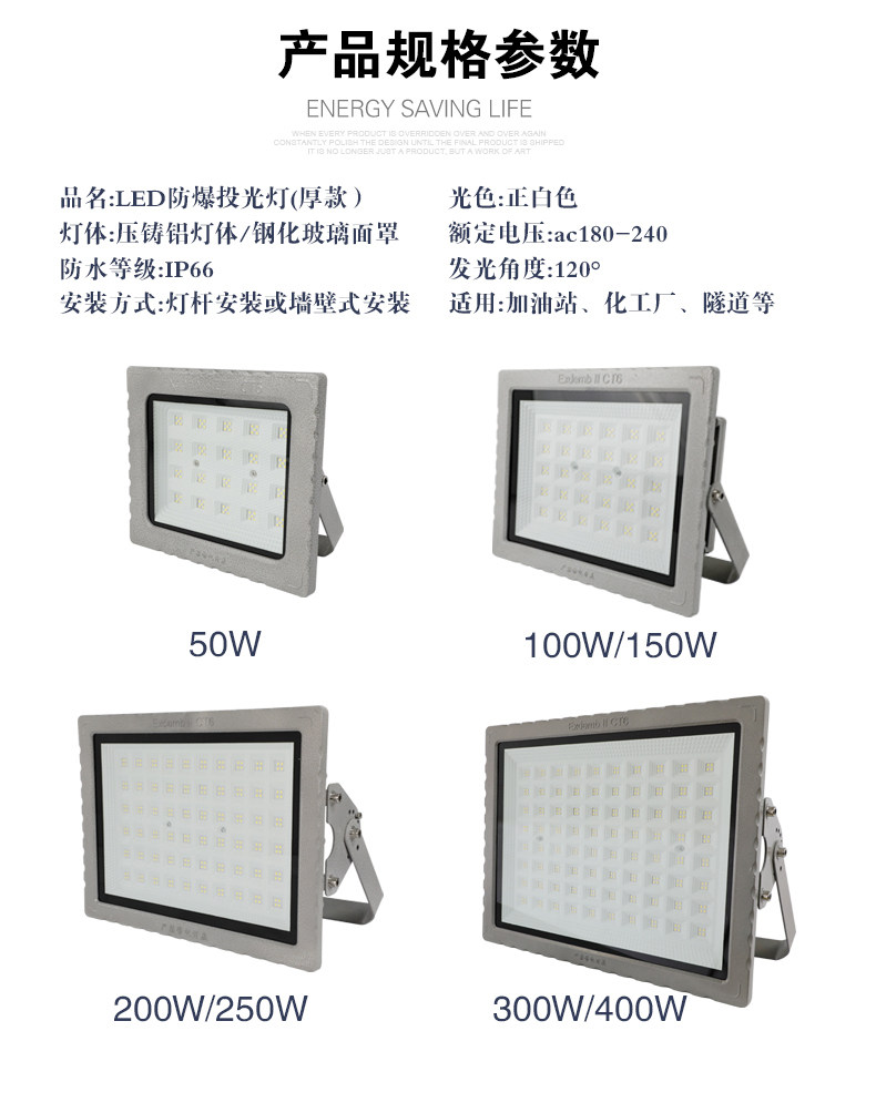 Led Explosion-Proof Light Warehouse Workshop Factory Oil Station Anti-Corrosion Waterproof Dustproof Floodlight Outdoor Spotlight