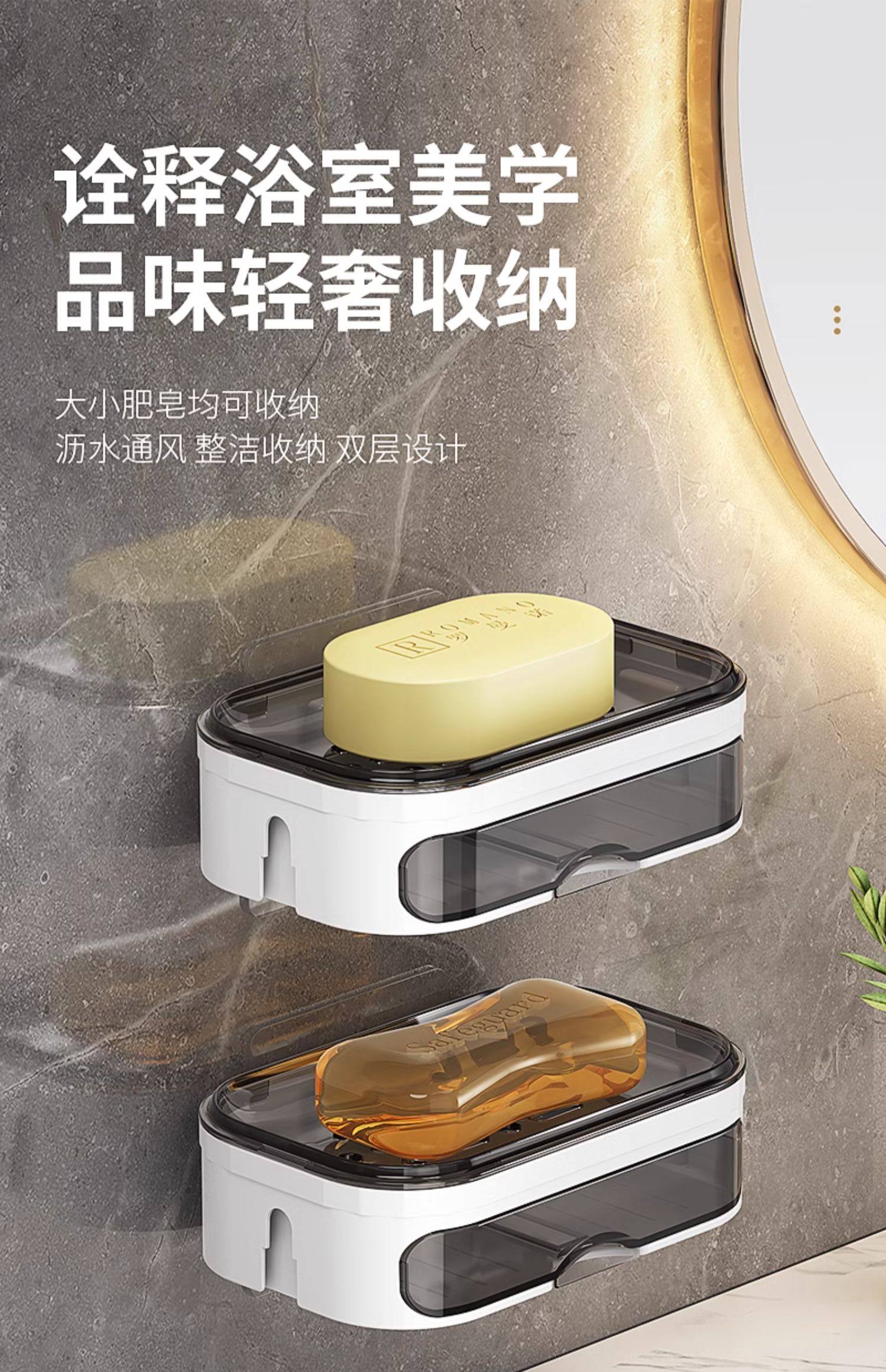 Japanese New Model Soap Holder for Home Use, Wall-Mounted, No-Drill, High-End Bathroom Double-Layer Draining Shelf