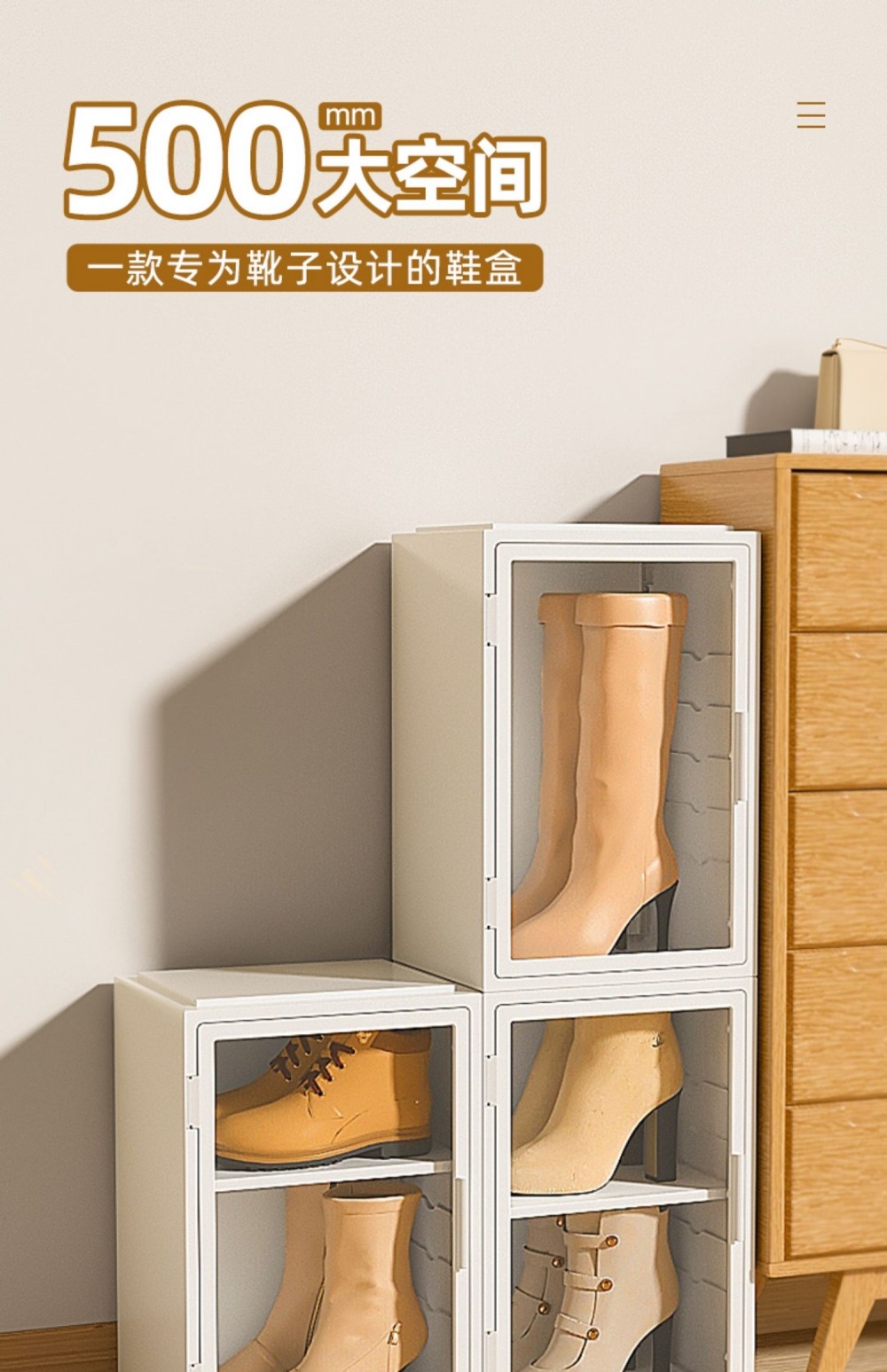 Japanese Shoe Cabinet Storage Box for Long Boots and Over-The-Knee Boots, Transparent Shoe Rack Storage Box