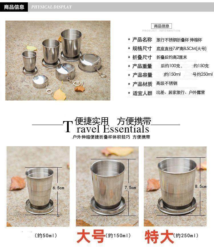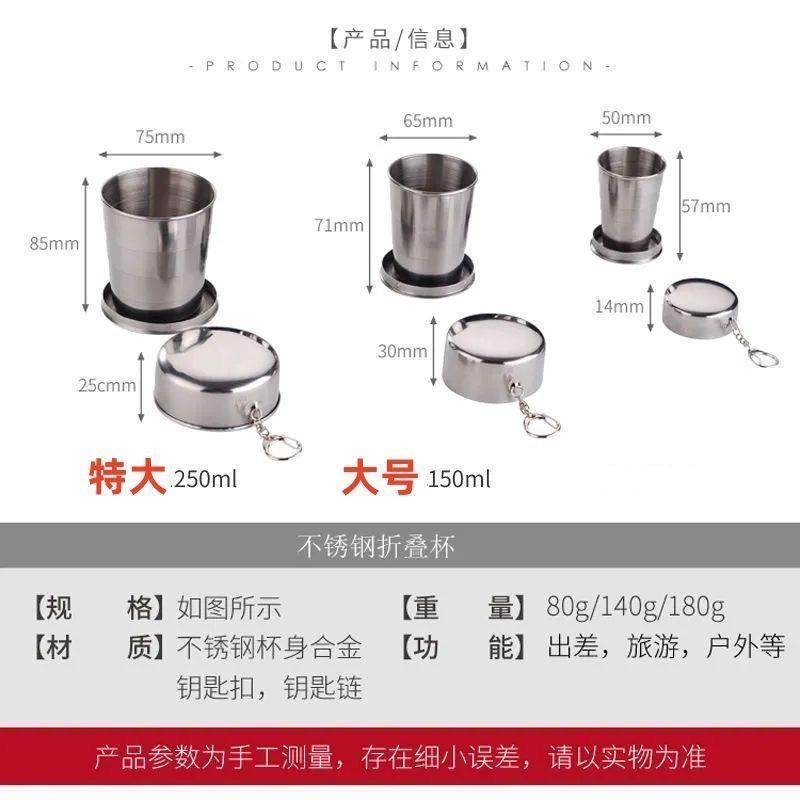 Color Classification 304 Foldable [Stainless Steel] Large [1 Pack] 250ml,304 Foldable [Stainless Steel] Medium [1 Pack] 150ml,304 Foldable [Stainless Steel] Small Size [1 Pack] 75ml,One Disposable Paper Cup (Issued Once)