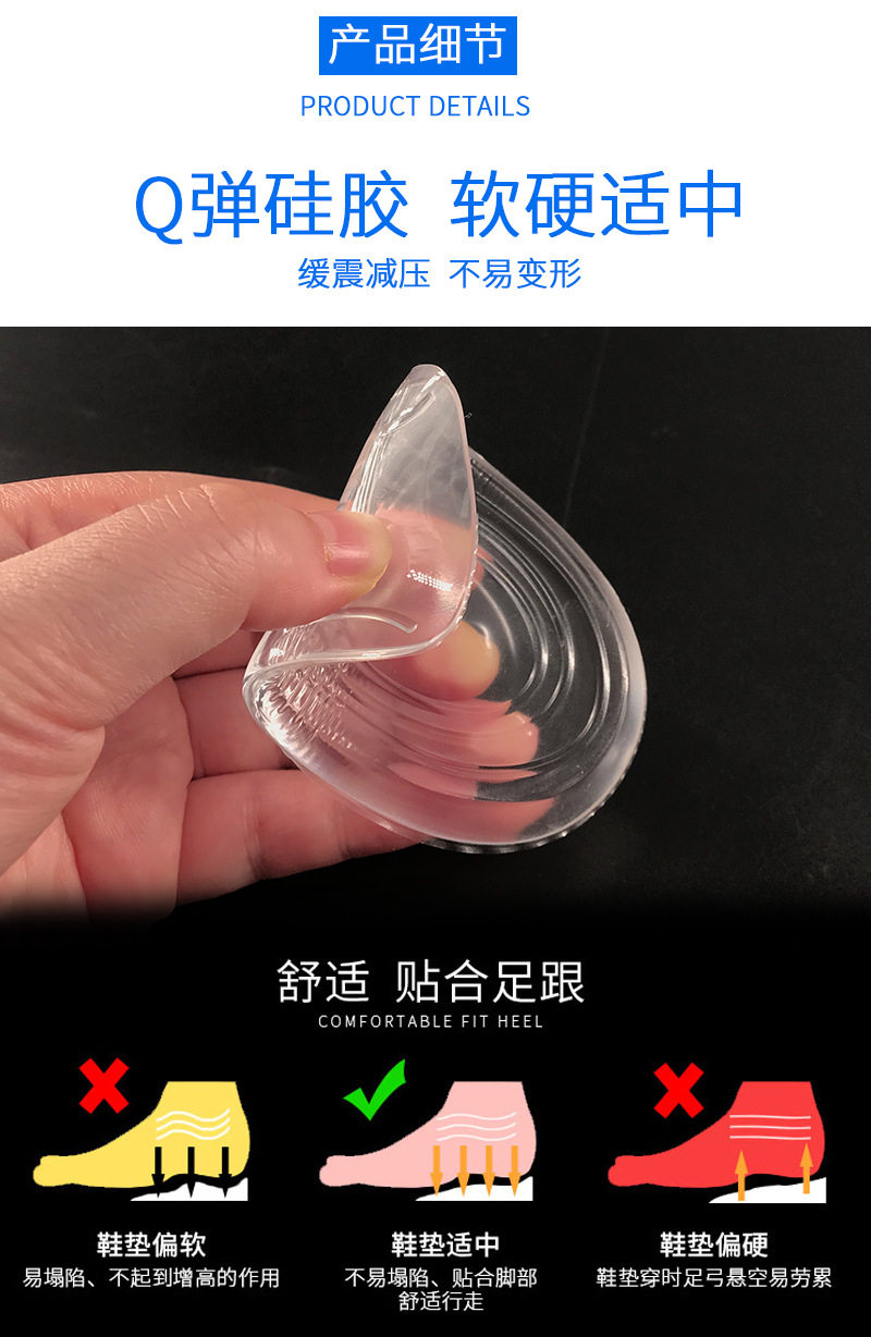 Silicone Inner Height-Increasing Insole for Women, Half-Pad, Transparent and Invisible, for Men's Sports Shoes, Casual Canvas Shoes, Student Shock-Absorbing Heel Pad
