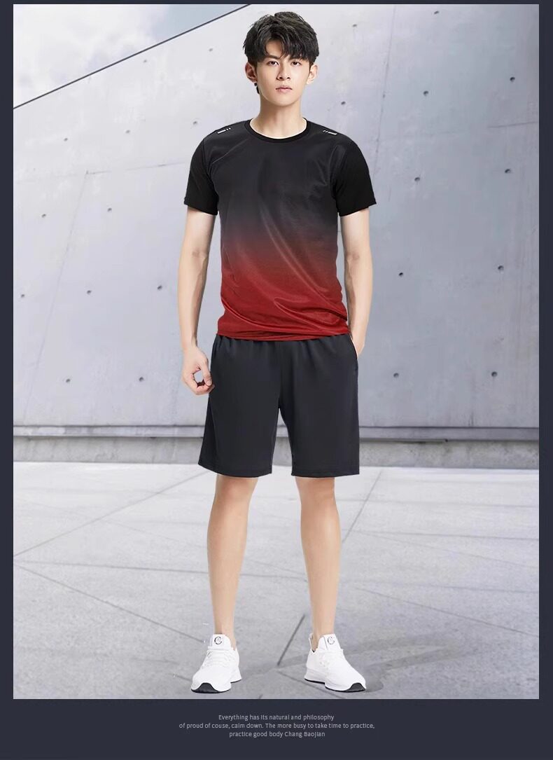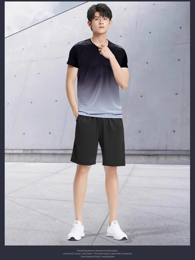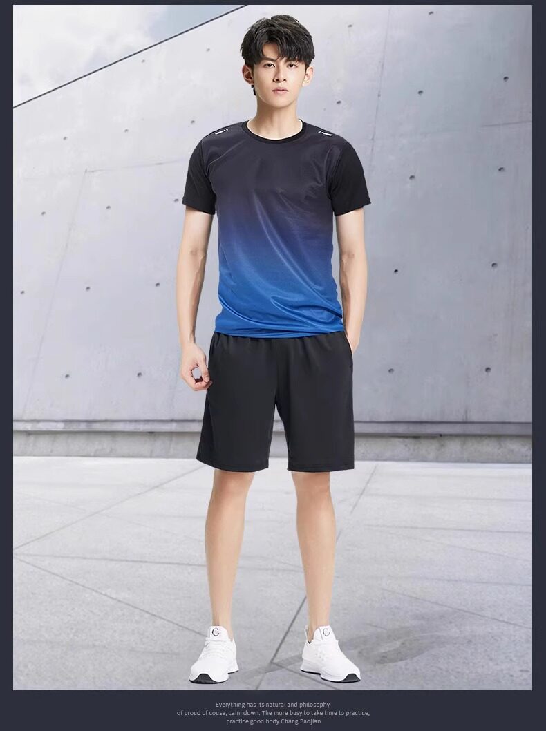Sports Suit Men's Ice Silk Quick-Drying Short-Sleeved Summer Fitness Clothes Running Shorts Badminton Training Clothes