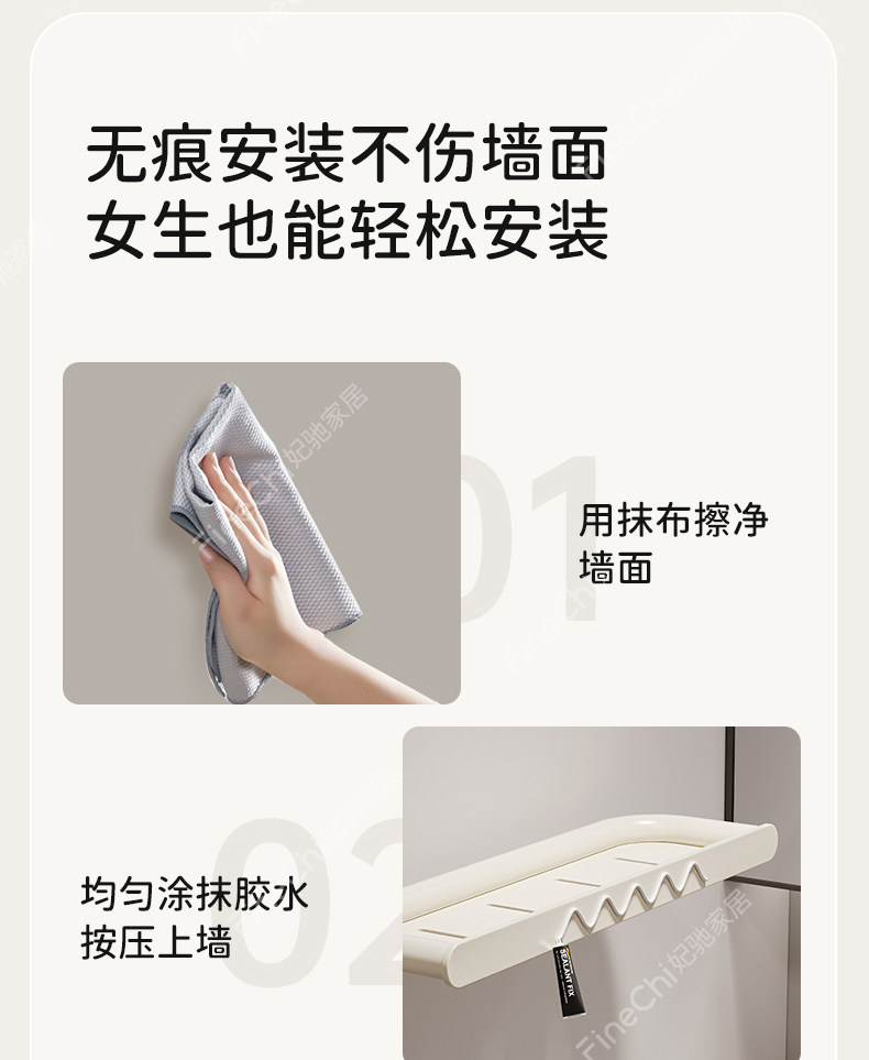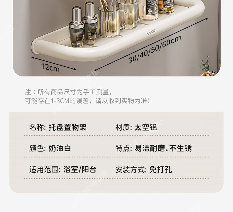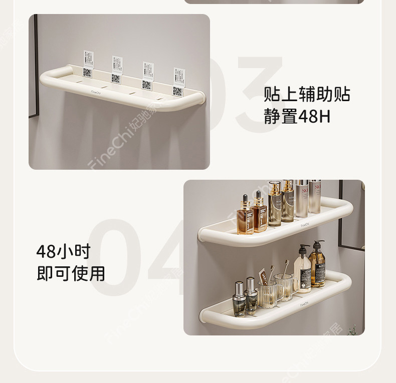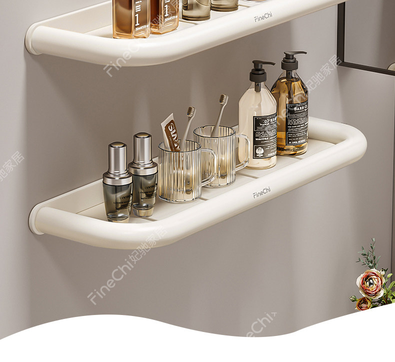 Finechi Cream Style Bathroom Storage Rack No-Drill Wall-Mounted Toilet Organizer Washstand Shelf