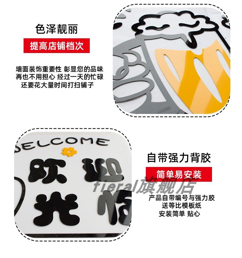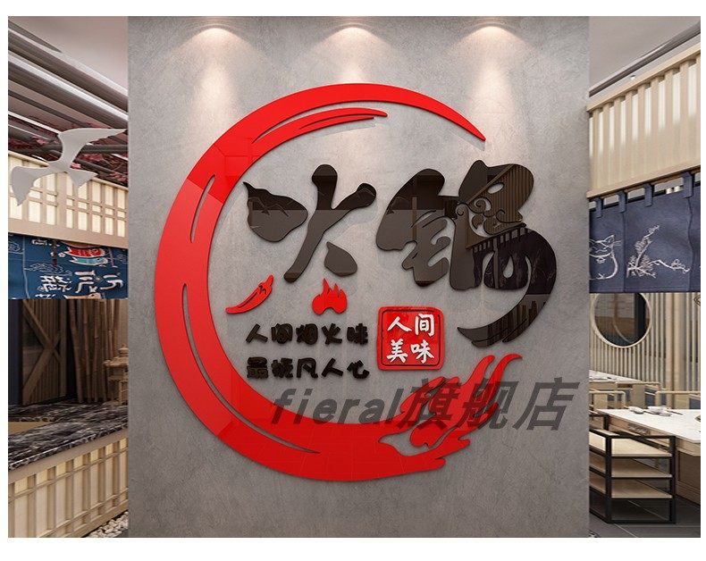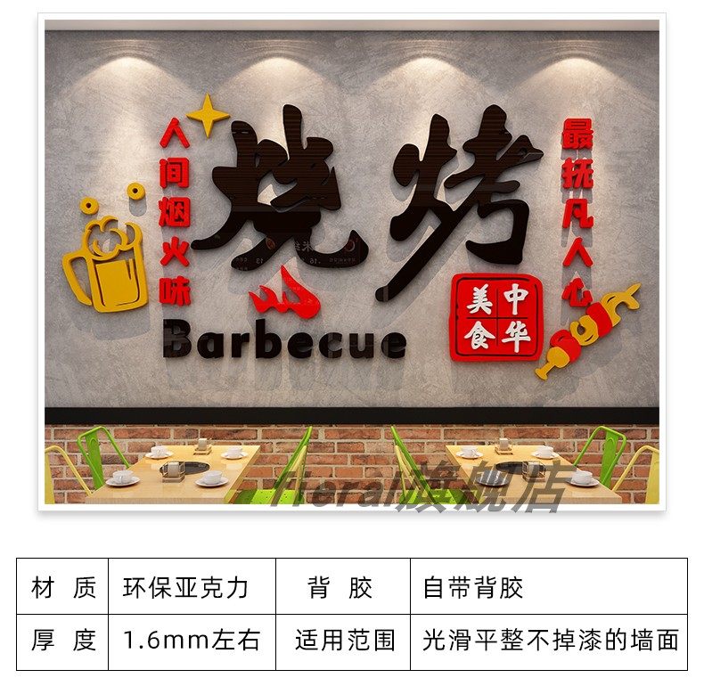Trendy Barbecue Restaurant Atmosphere Setup, Eye-Catching Wall Decorations at the Entrance, Creative Hot Pot Restaurant Wall Stickers
