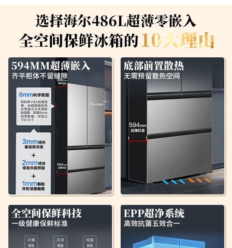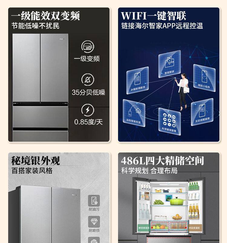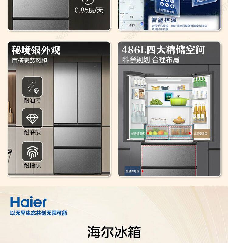 Haier Refrigerator with Full Space Preservation, Zero-Insertion French-Style Multi-Door, First-Class Dual Inverter Bcd-486Wghfd1Bg9U1