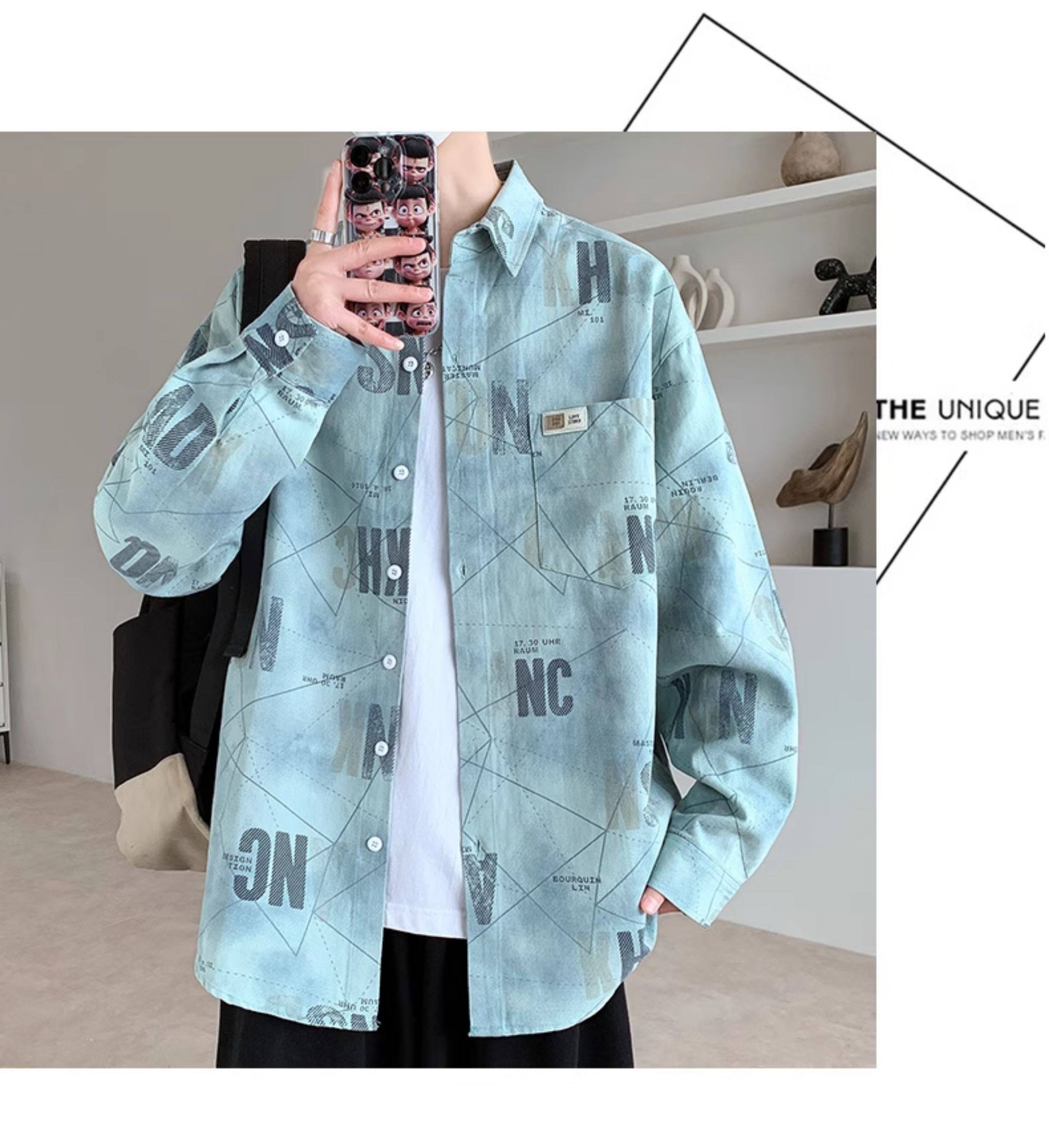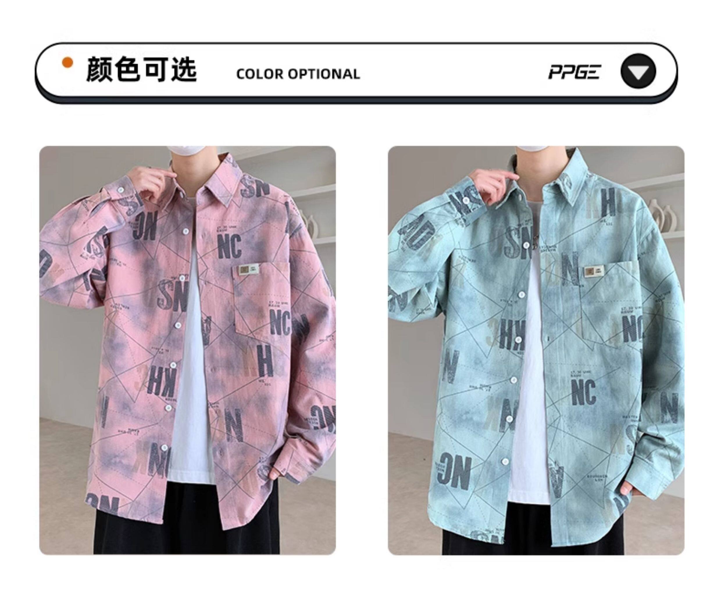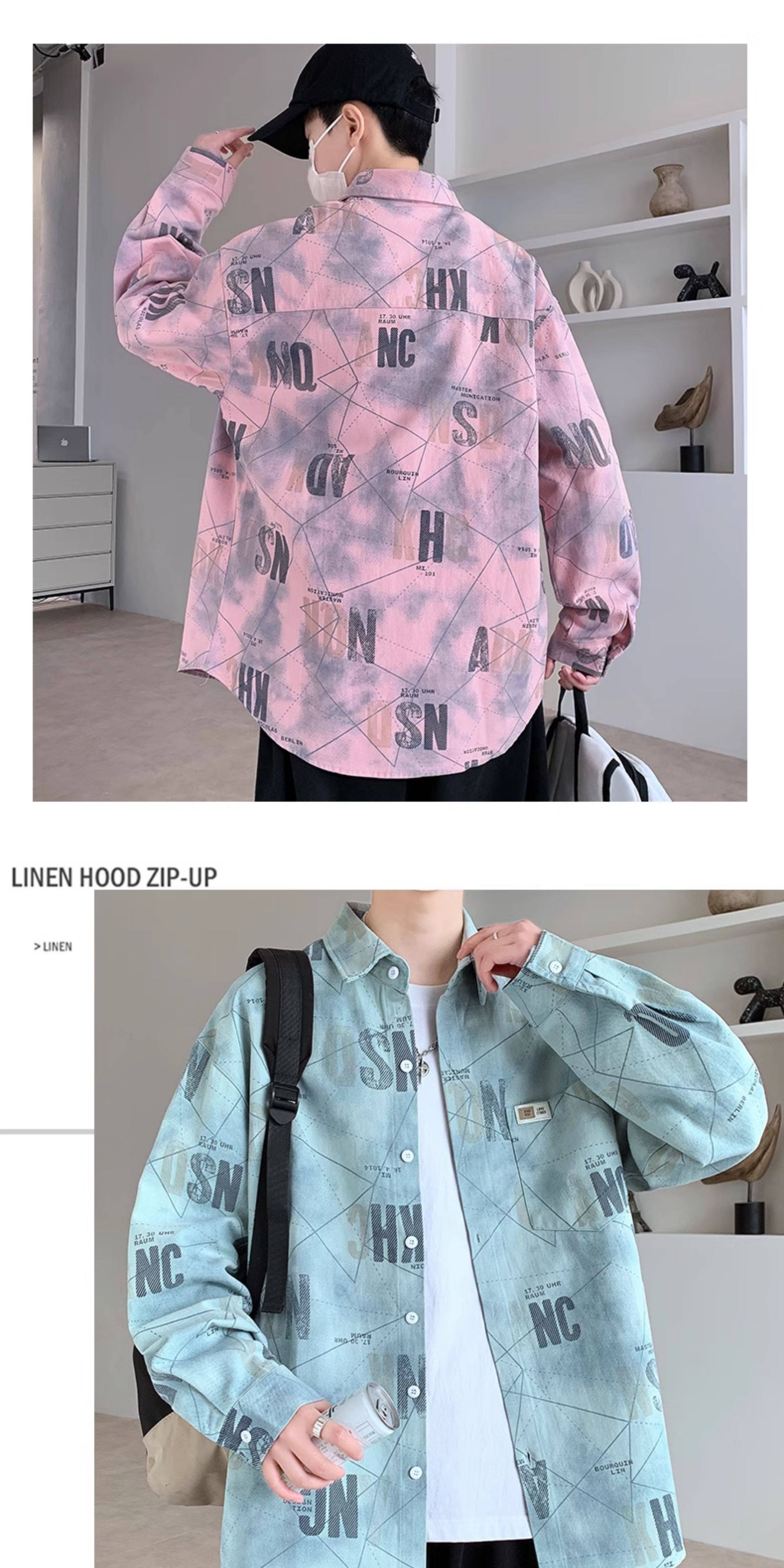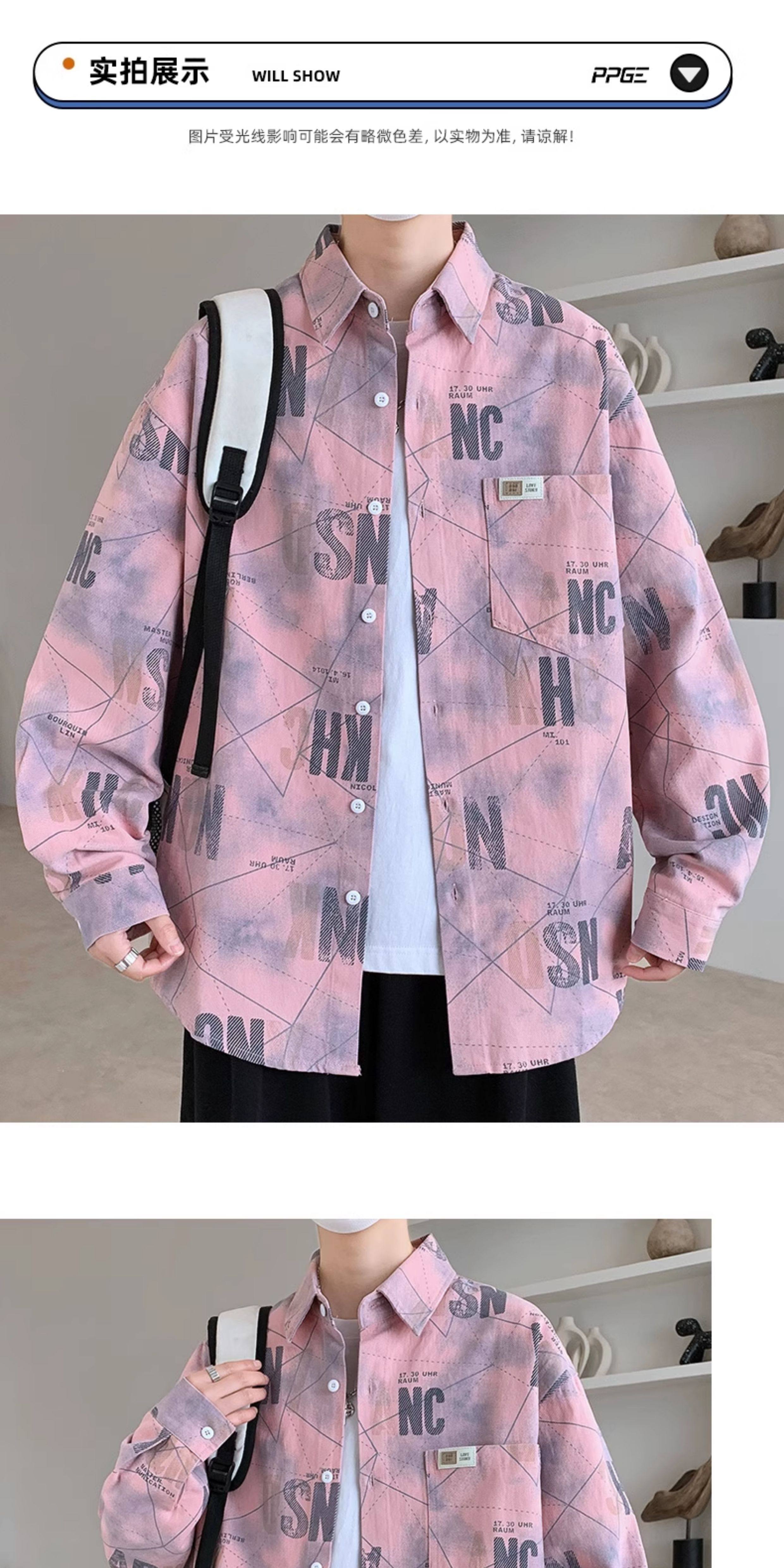 Pure Cotton Pink Long-Sleeved Shirt for Men, Spring and Autumn Loose Trendy Brand, Cool High School Student Work Shirt Jacket for Men
