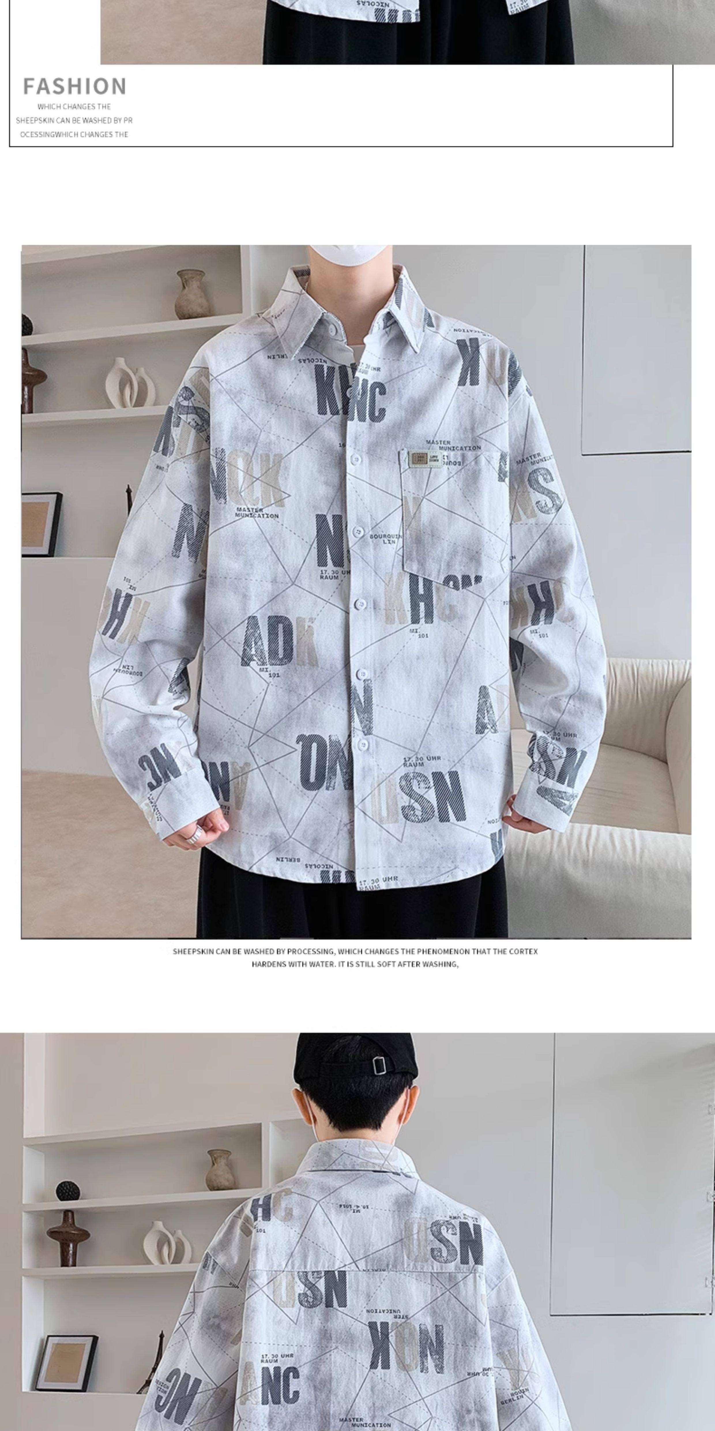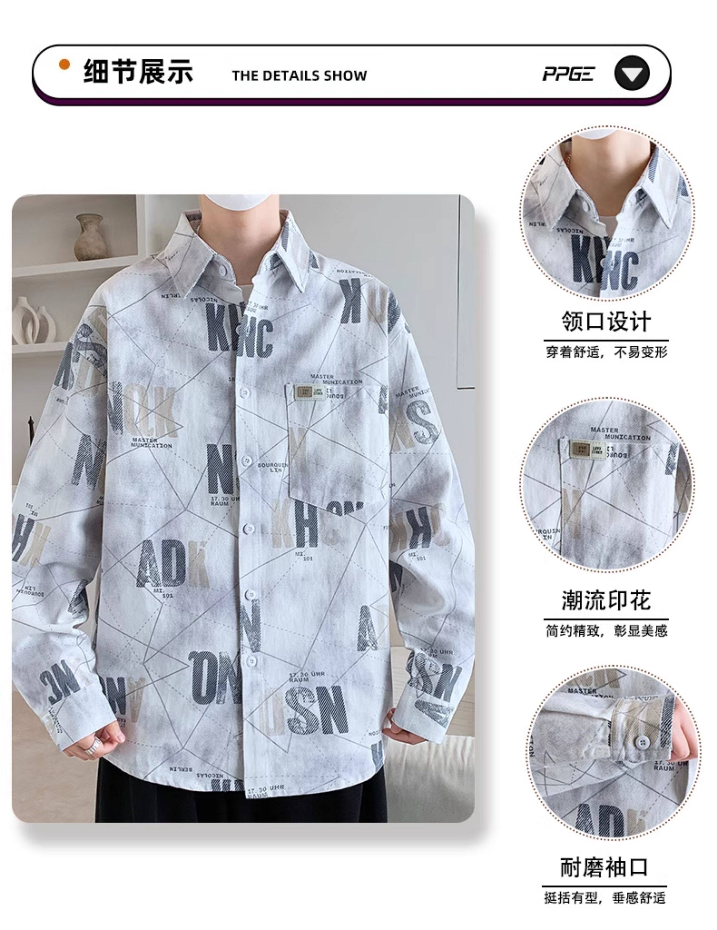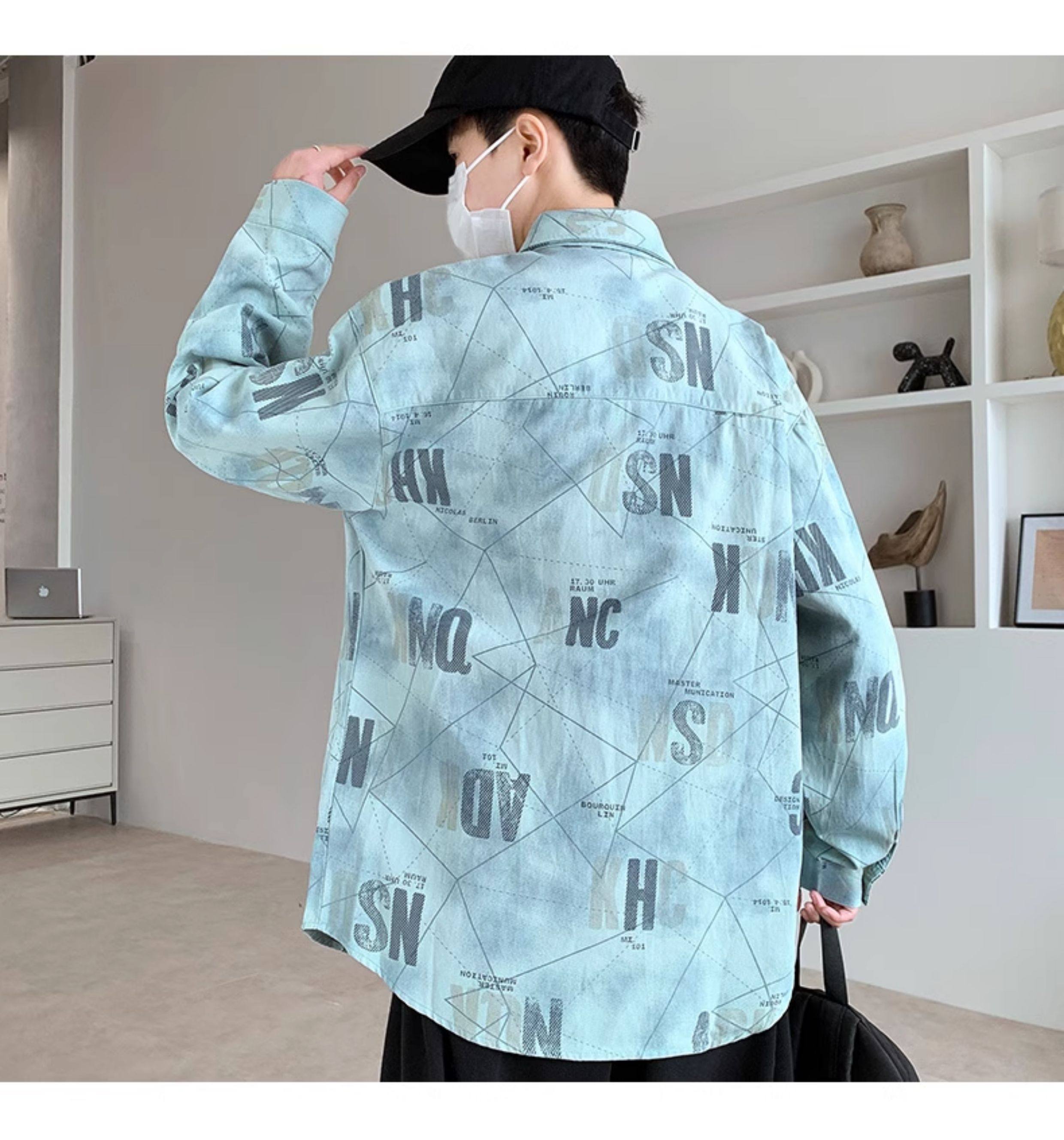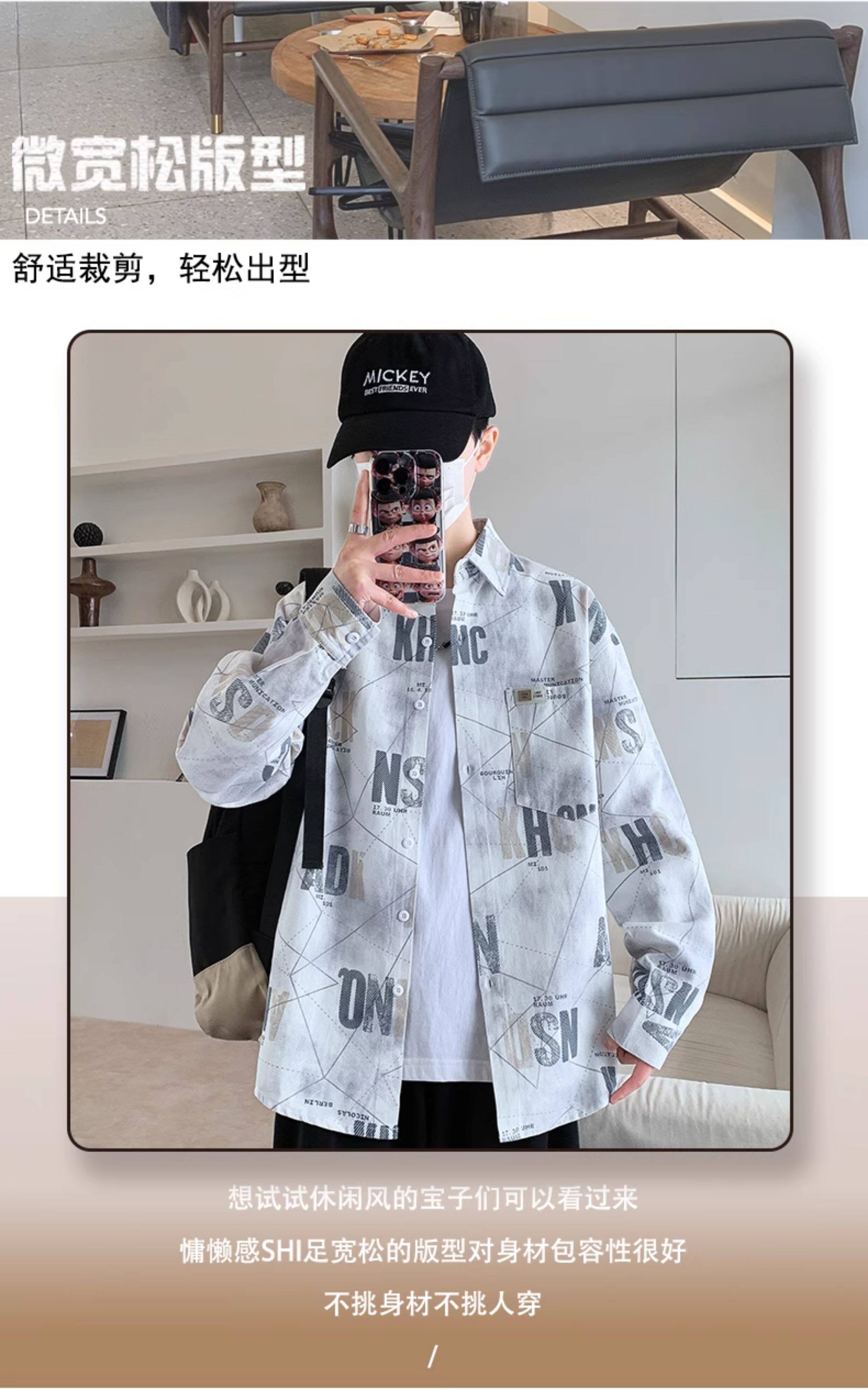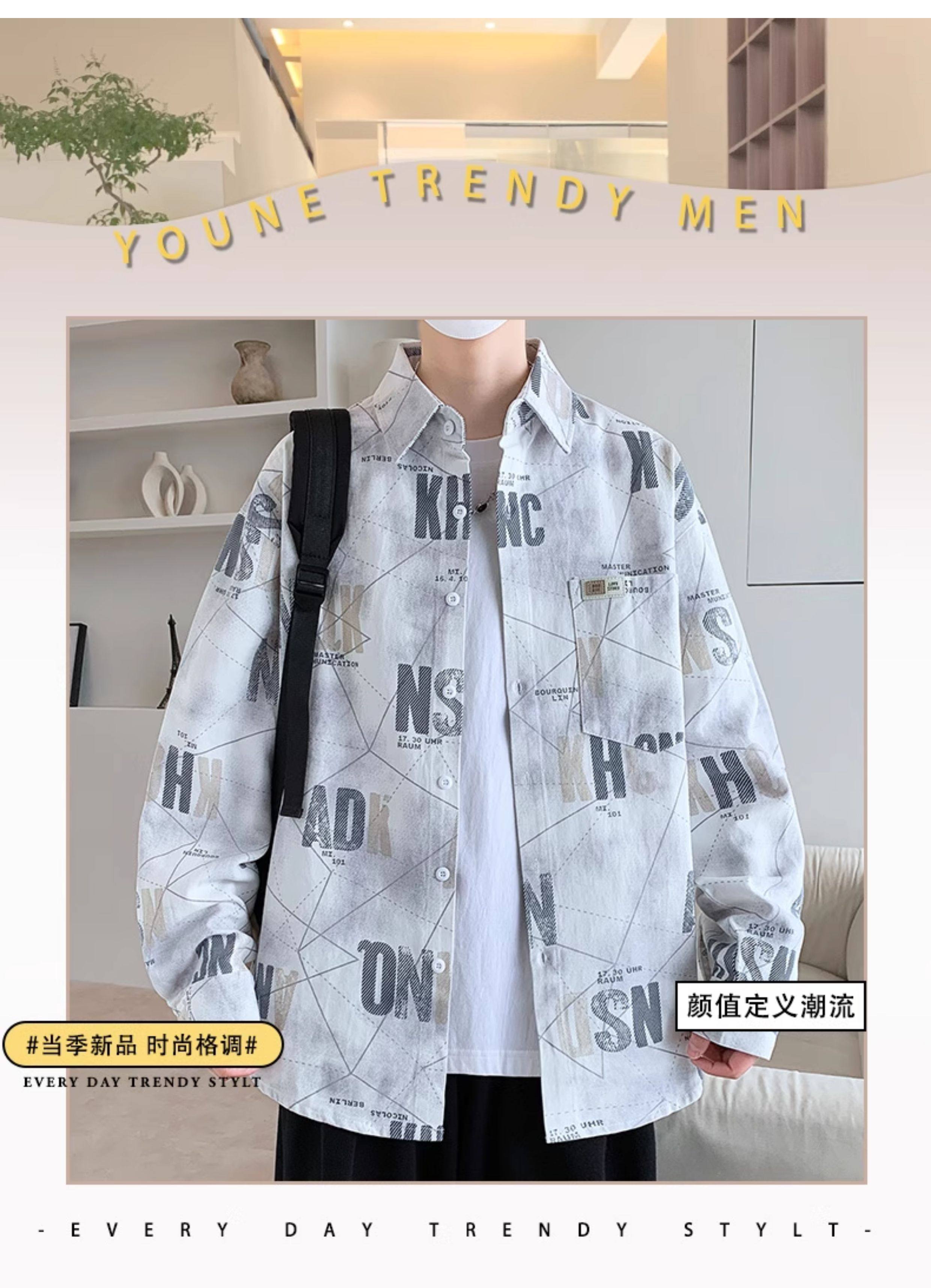 Pure Cotton Pink Long-Sleeved Shirt for Men, Spring and Autumn Loose Trendy Brand, Cool High School Student Work Shirt Jacket for Men