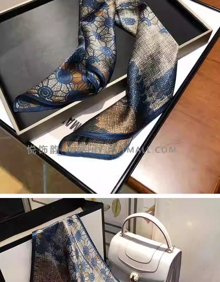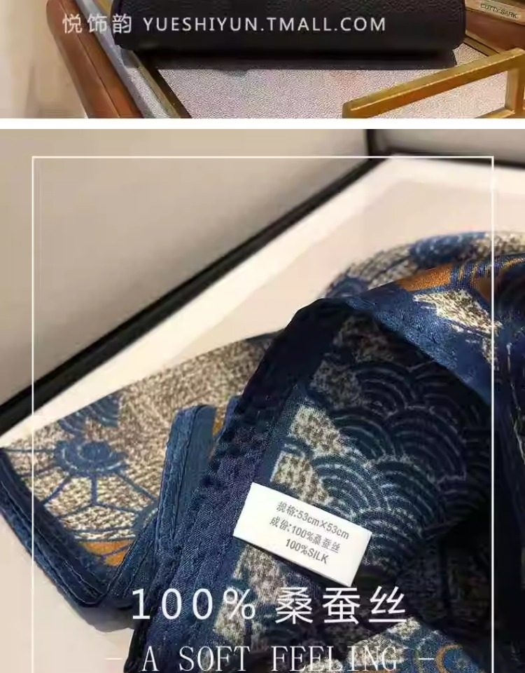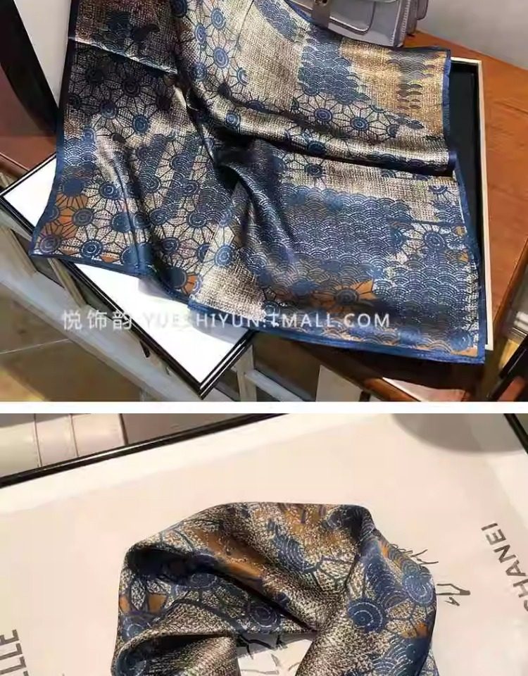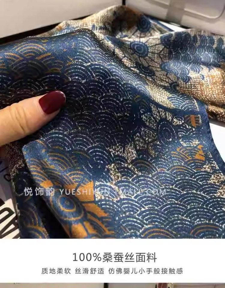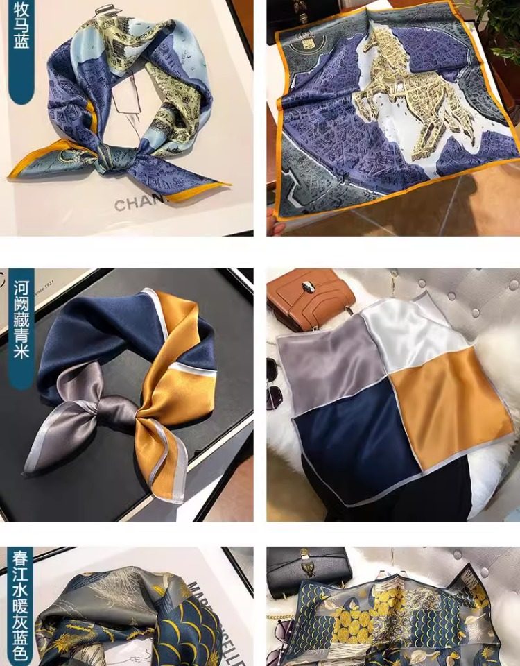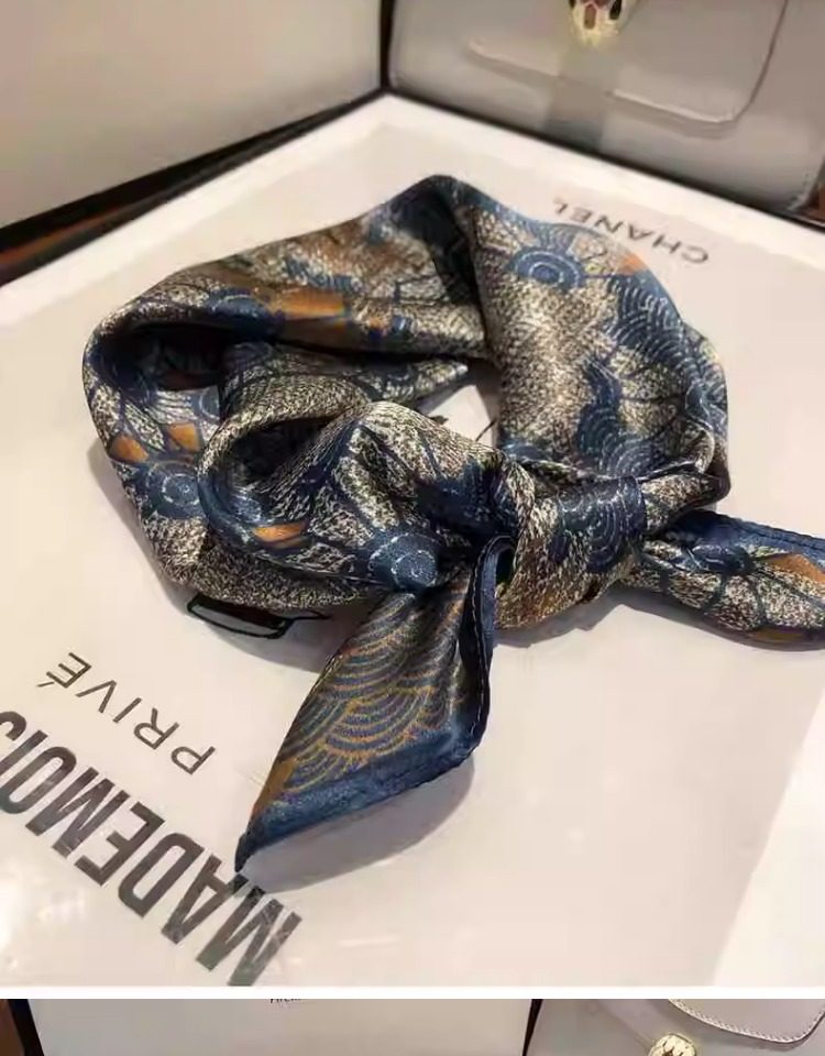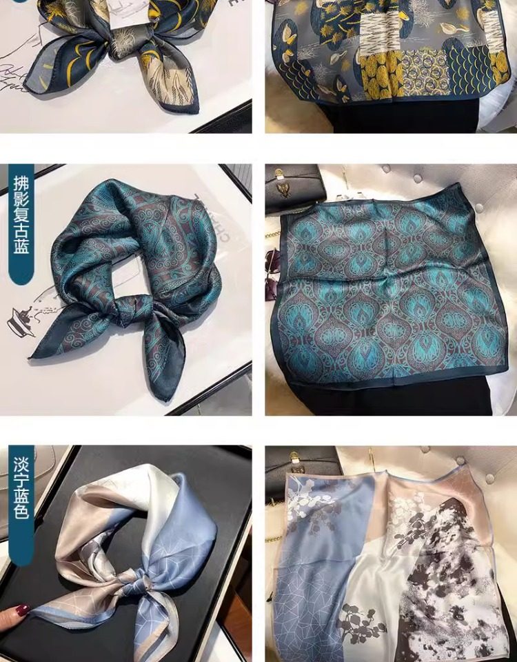 Versatile blue silk scarf 100% mulberry silk small square scarf spring and autumn Korean high-end gift small scarf to protect the cervical spine