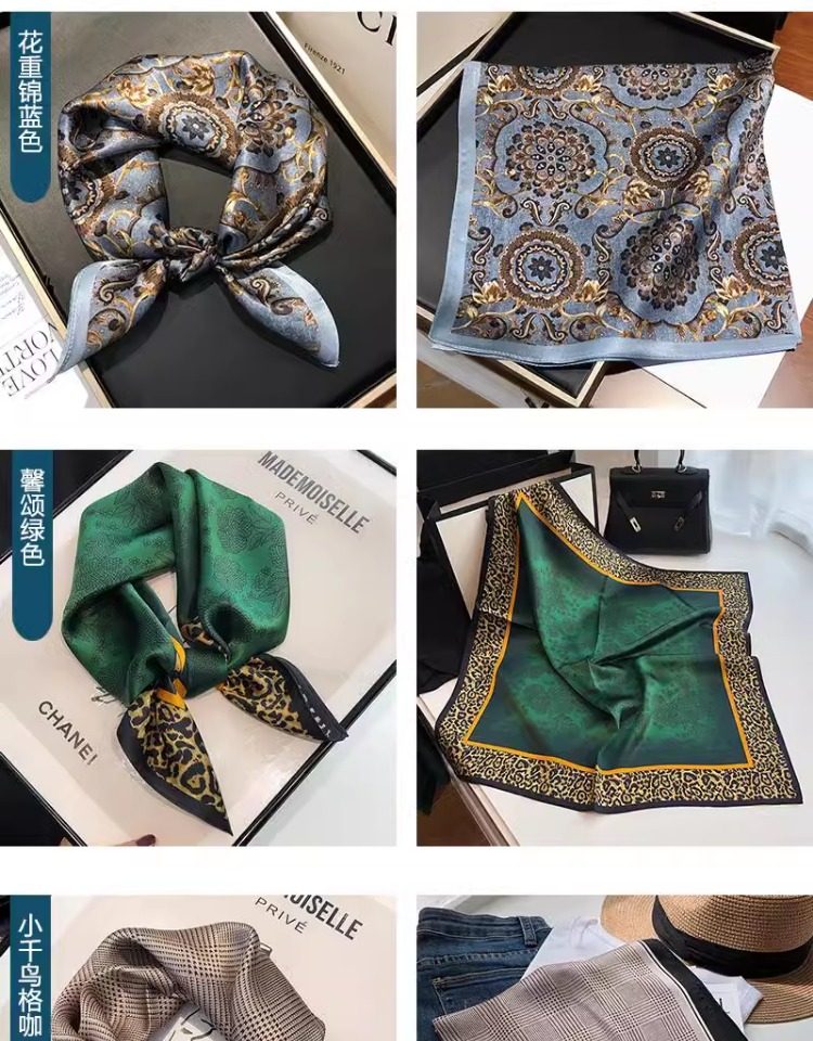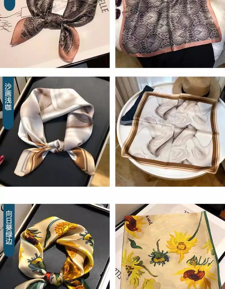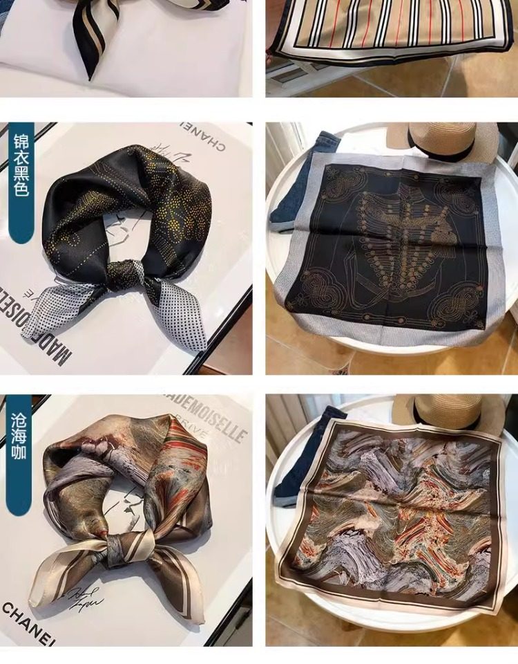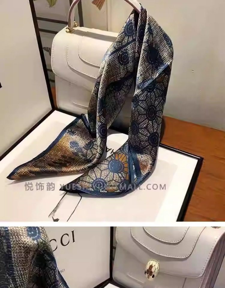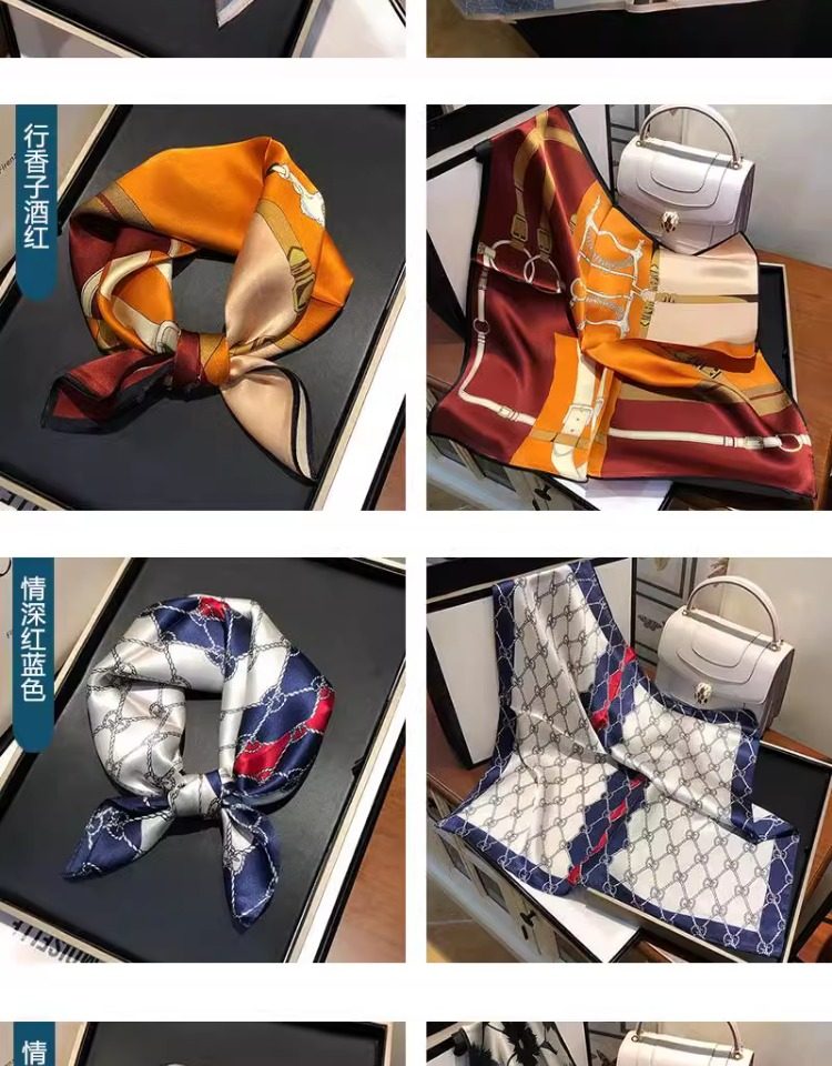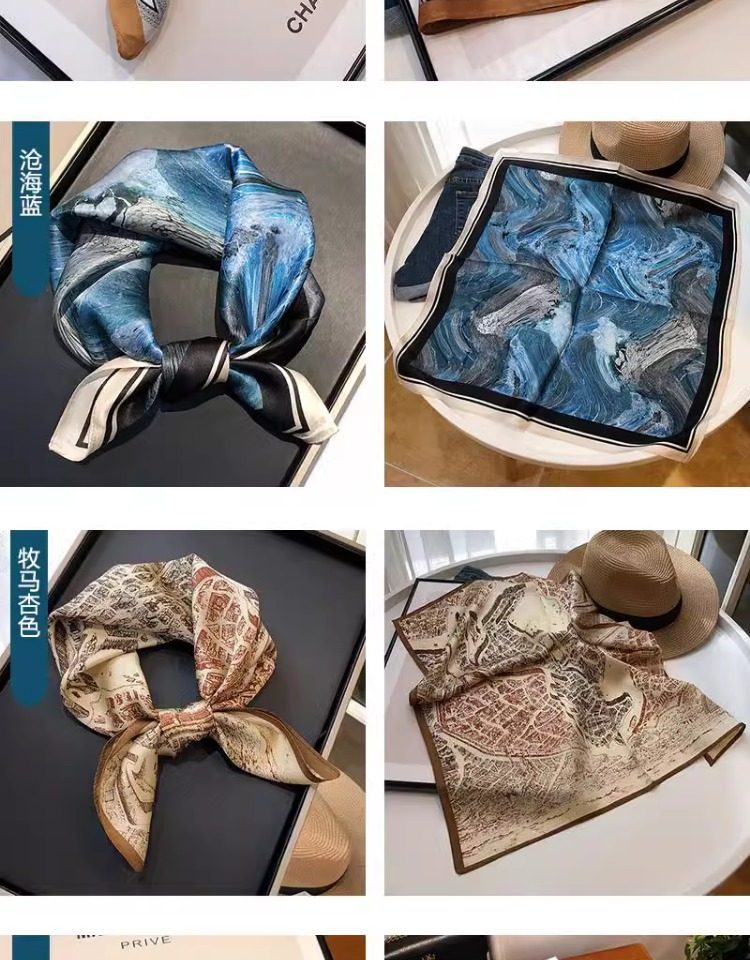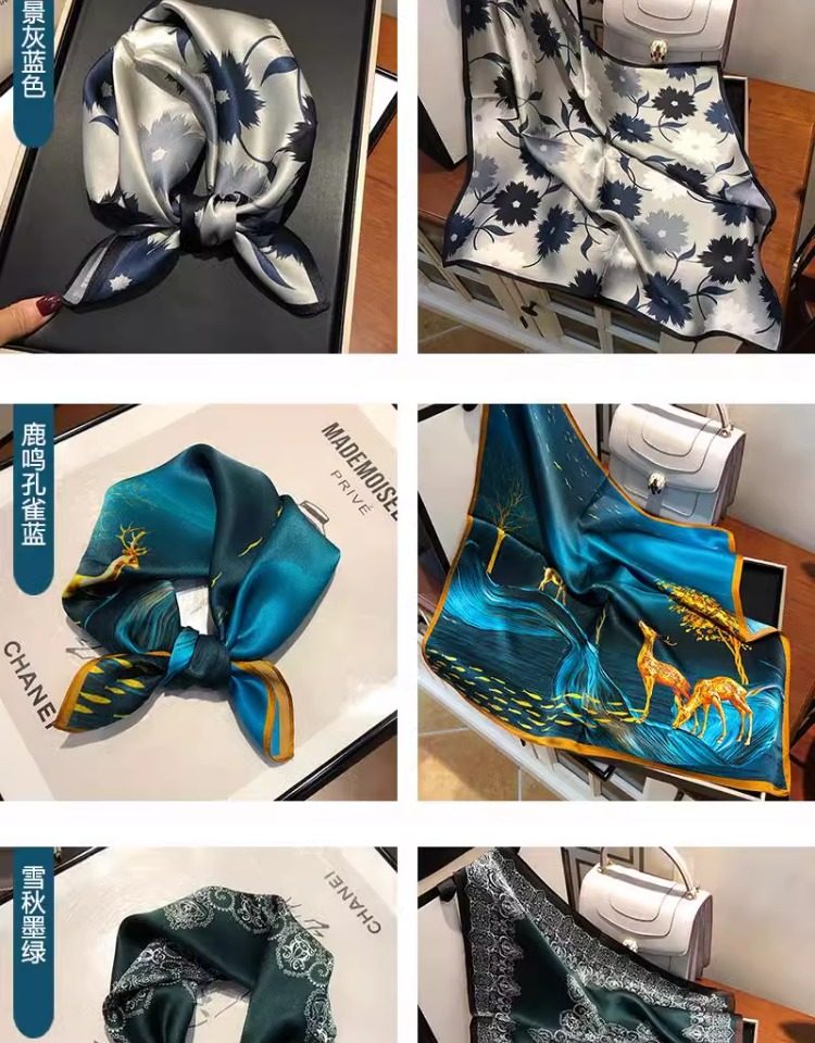 Versatile blue silk scarf 100% mulberry silk small square scarf spring and autumn Korean high-end gift small scarf to protect the cervical spine