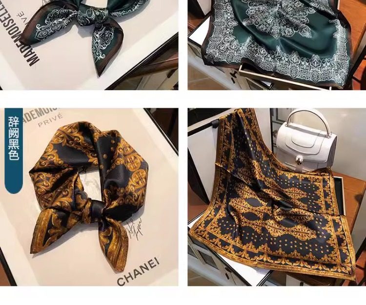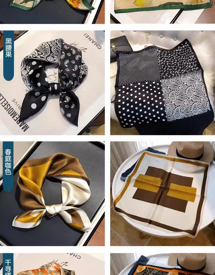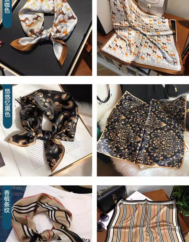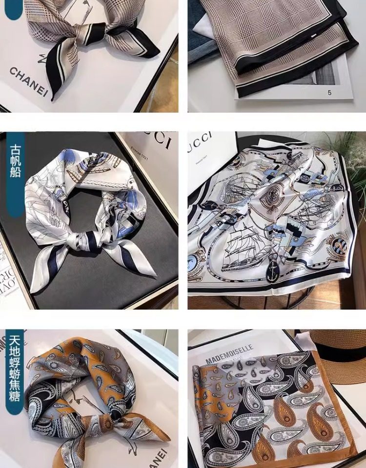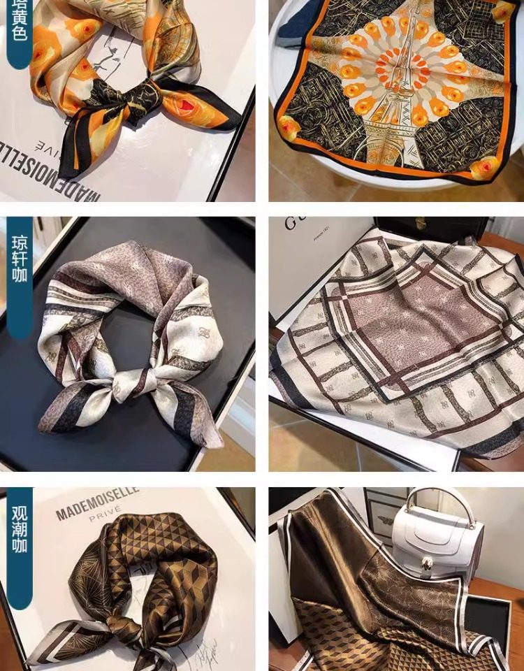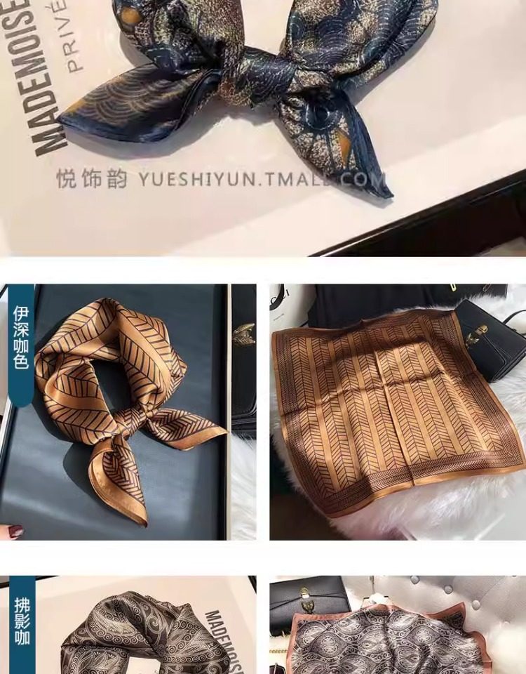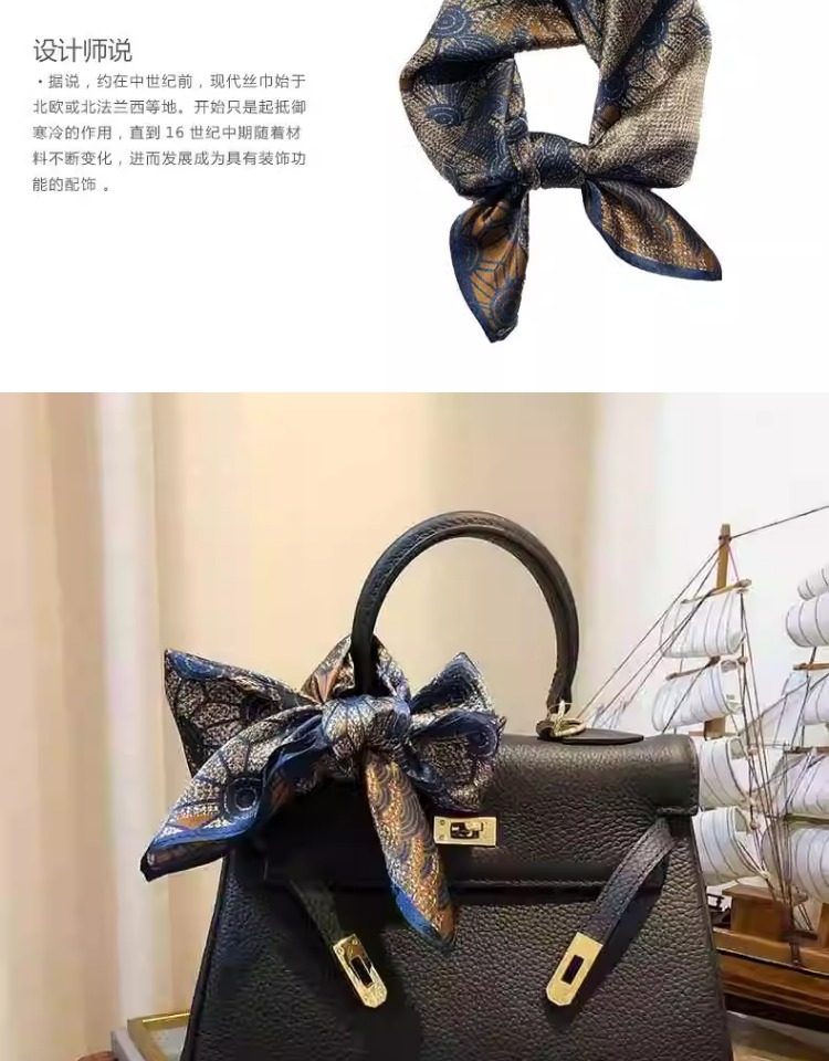 Versatile blue silk scarf 100% mulberry silk small square scarf spring and autumn Korean high-end gift small scarf to protect the cervical spine