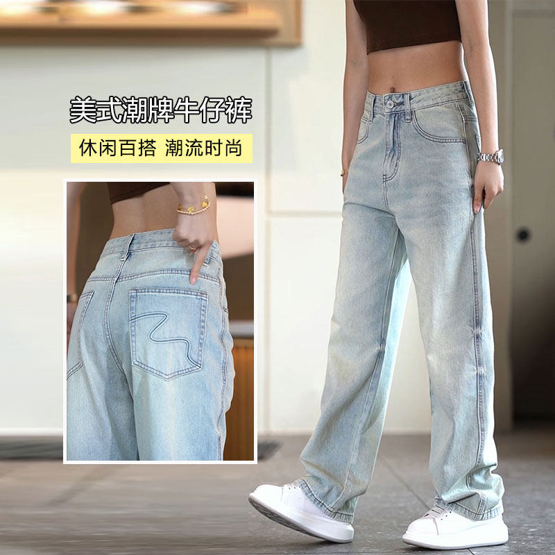 Jeans for men 2025 new American style loose and versatile casual straight pants handsome retro nostalgic light color wide leg pants
