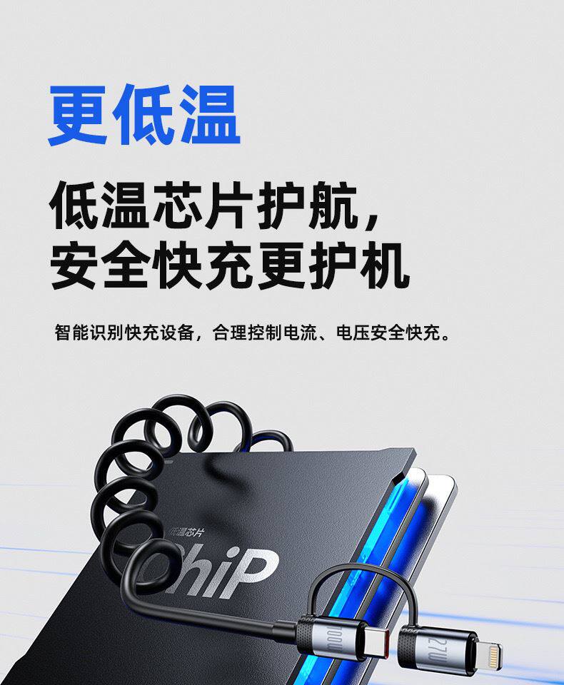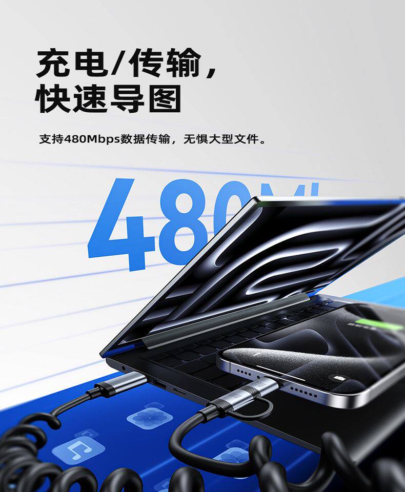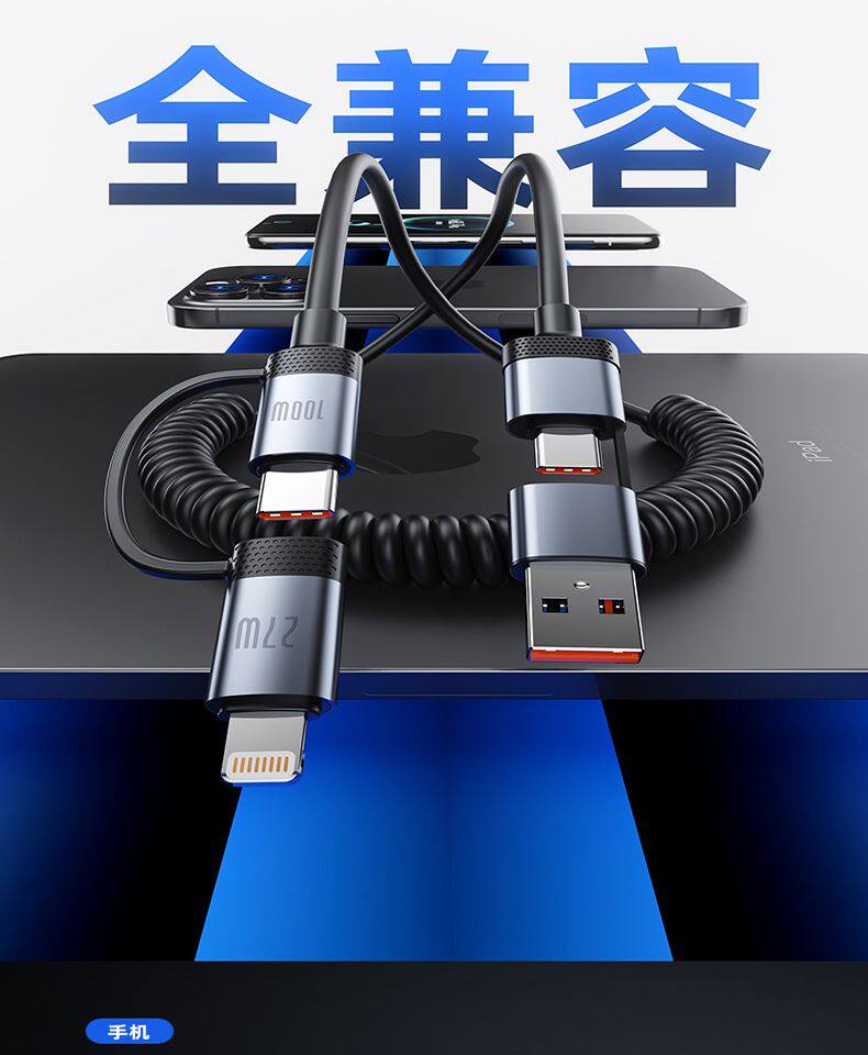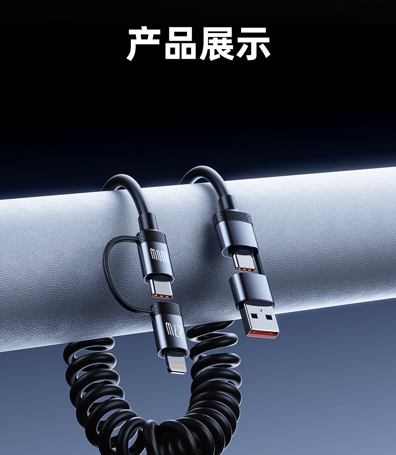 Two-To-Two Super Fast Charging Universal Mobile Phone Charging Cable Spring Telescopic 65W Four-In-One Data Cable Suitable for Apple 15/16Promax Huawei Android Dual Typec Multi-Function Car Screen Projection