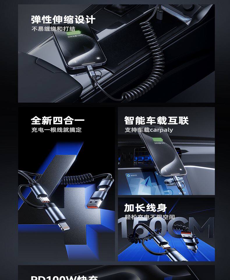 Color Classification Black ● One Pack[100W Spring Telescopic Four-In-One Car Data Cable],Black●Two Pack[100W Spring Telescopic Four-In-One Car Data Cable],Purple●One Pack[100W Spring Telescopic Four-In-One Car Data Cable],Purple●Two Pack[100W Spring Telescopic Four-In-One Car Data Cable],Blue●One Pack[100W Spring Telescopic Four-In-One Car Data Cable],Blue●Two Pack[100W Spring Telescopic Four-In-One Car Data Cable]