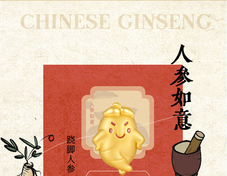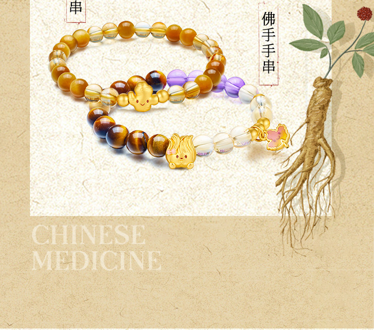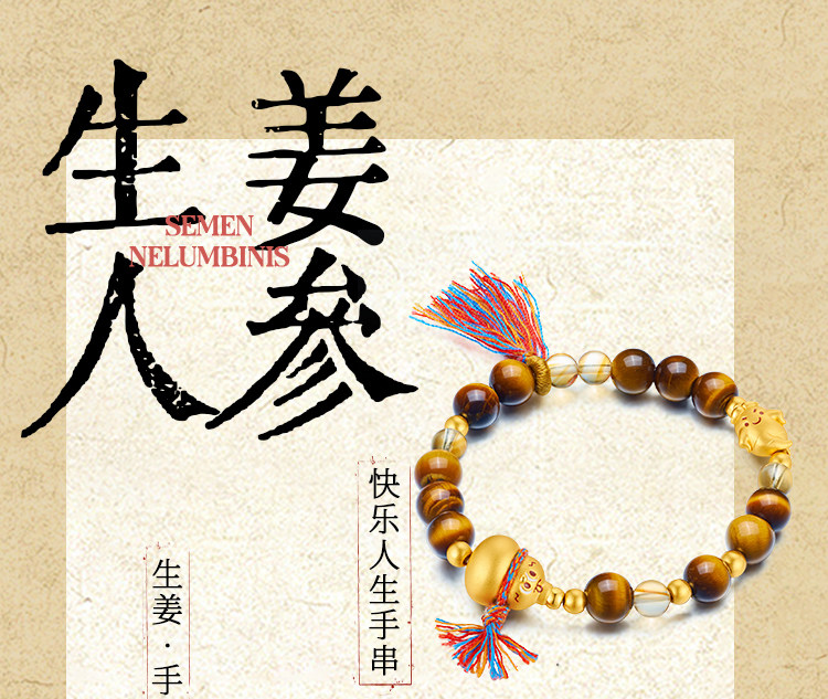 Mankalong Gold Pure Gold Herbal Series Beaded Ginger Fortune Bead Bracelet Pendant Birthday Gift DIY