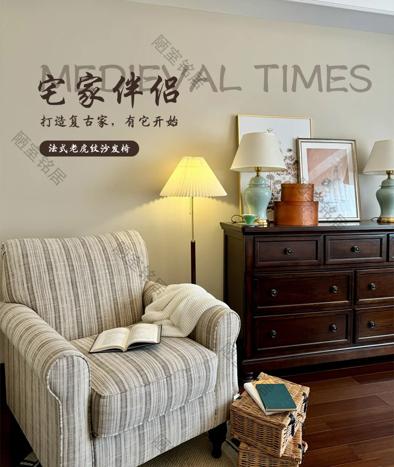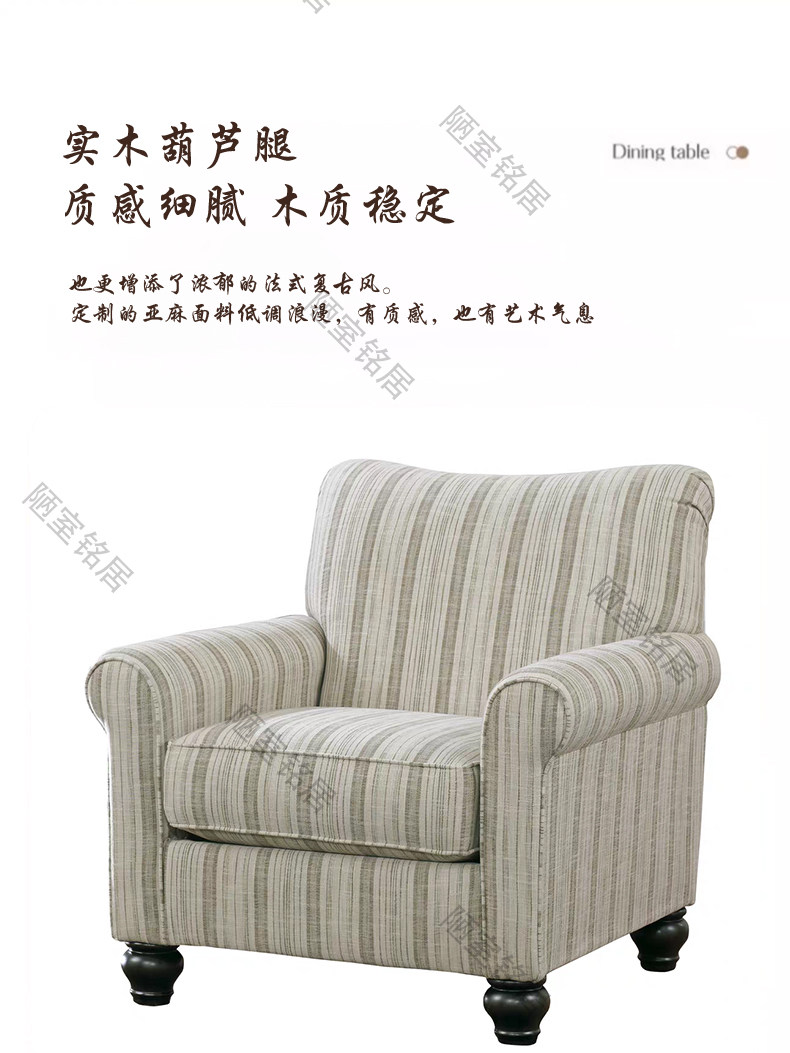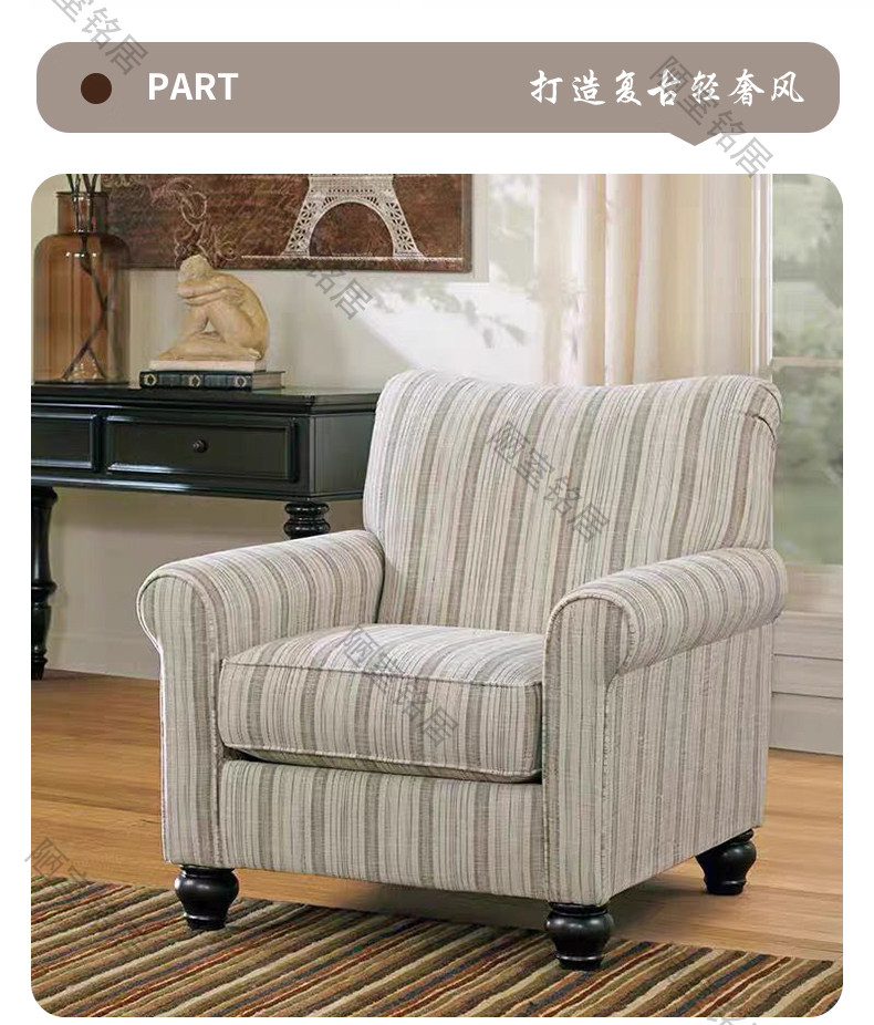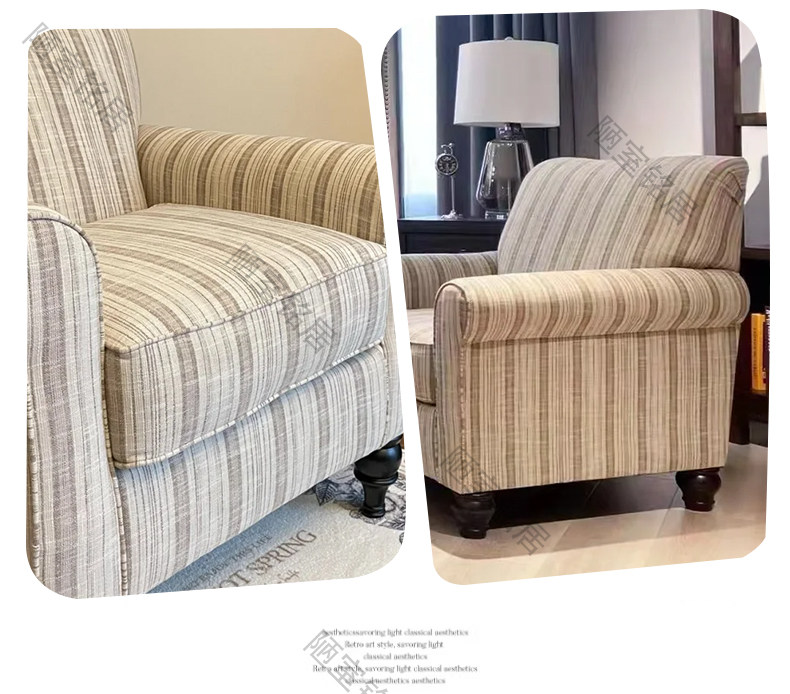 American retro simple striped cotton and linen single leisure chair French light luxury living room balcony single chair sofa chair
